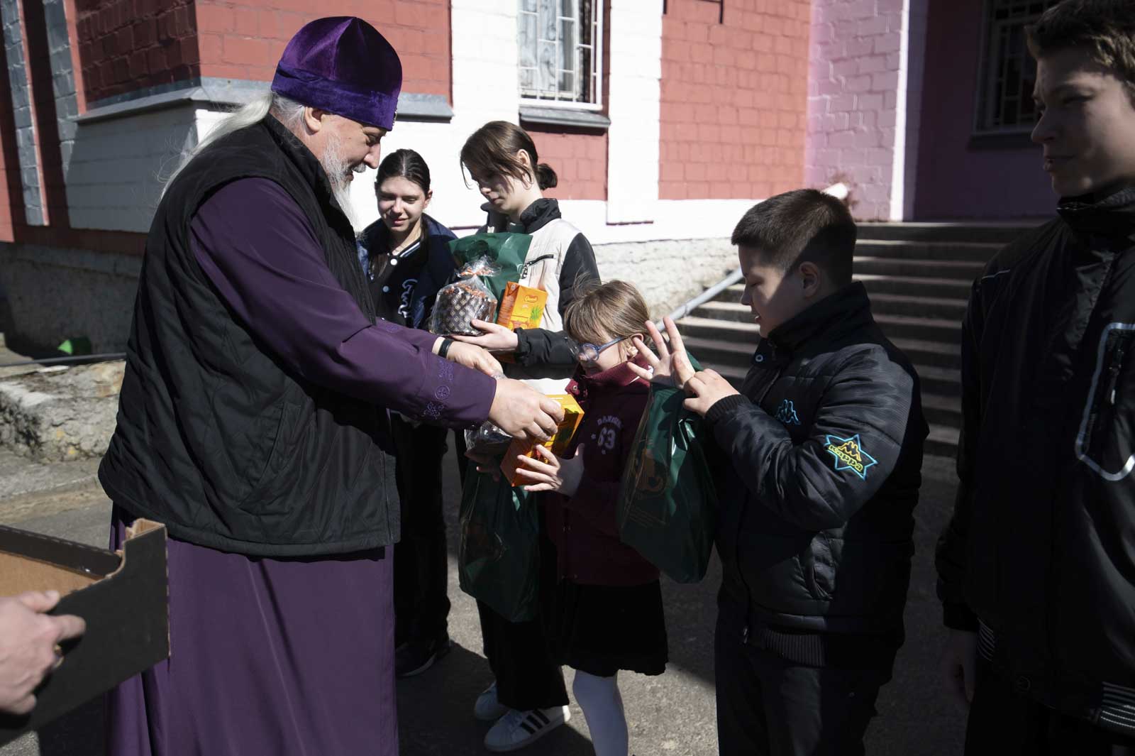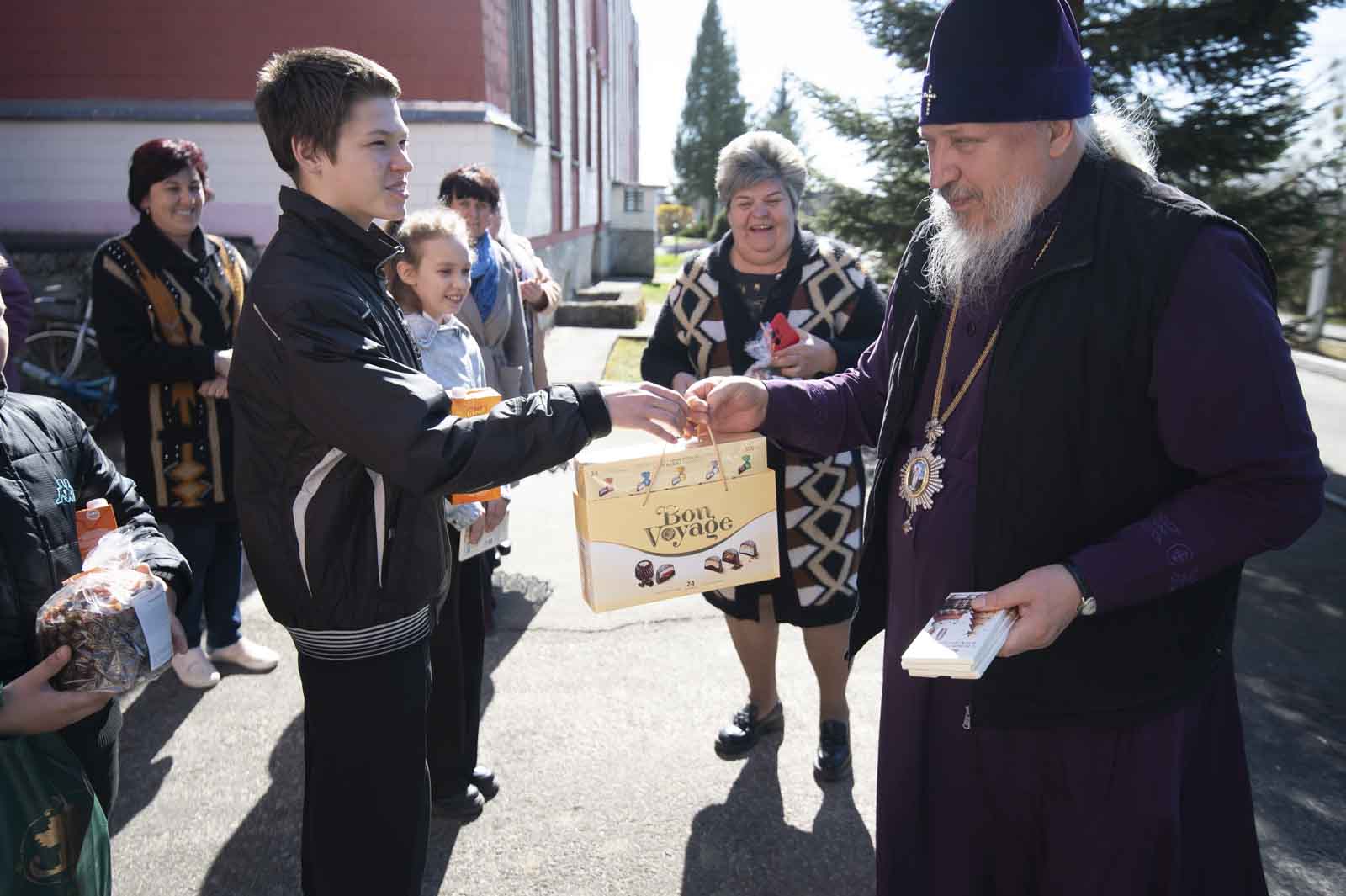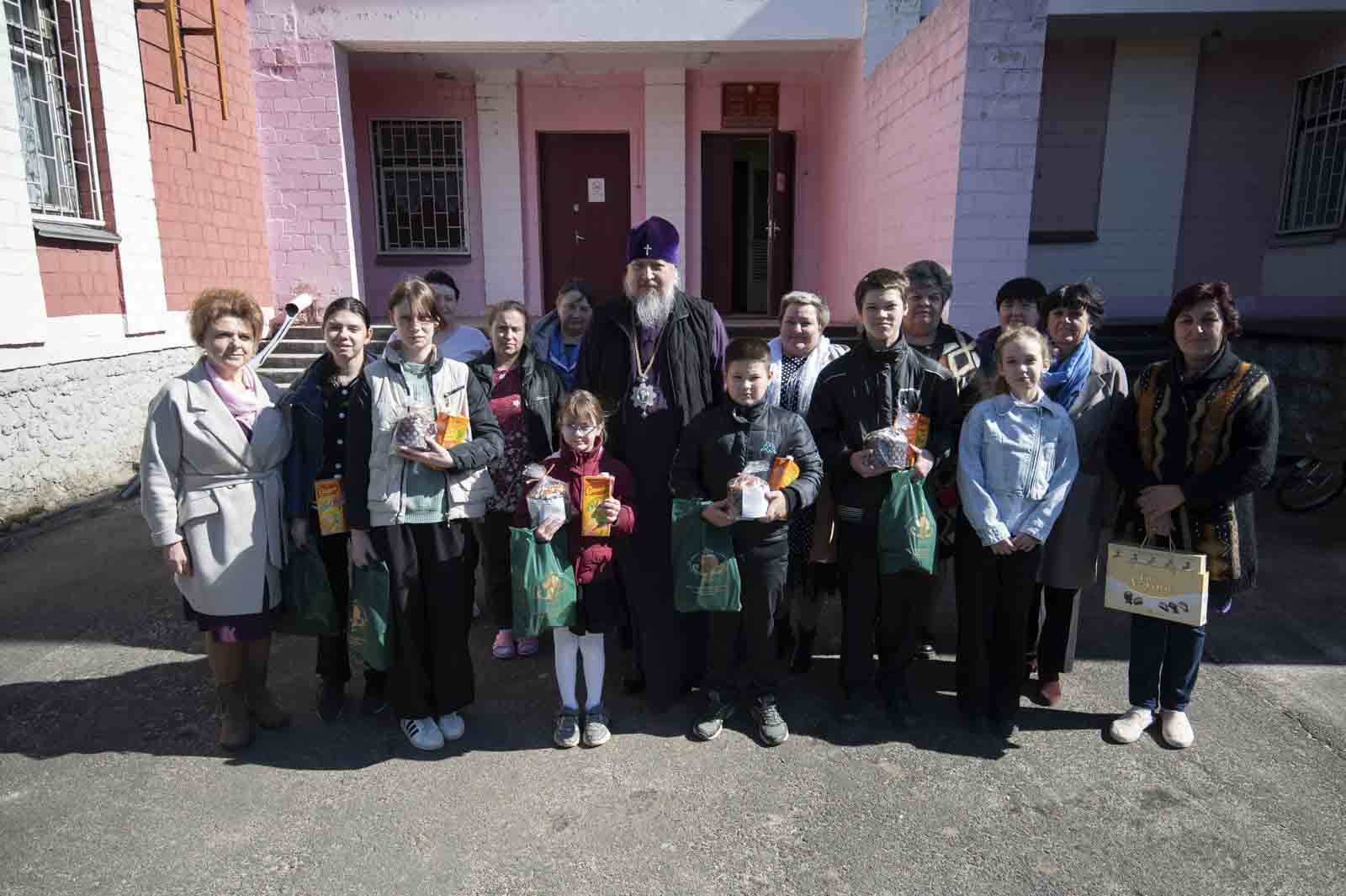 В Носовичах архипастырь встретился с детьми, находящимися в социальном приюте. В настоящее время здесь проживают пятеро детей, оставшиеся без попечения родителей. Владыка поздравил их с праздником Светлого Христова Воскресения, напомнил о значении Пасхи и о той надежде, которую Воскресение Христово открывает человеку. Для нужд приюта были переданы средства гигиены и бытовая химия, а каждому ребенку архипастырь привез пасхальные куличи, зефир и конфеты.
