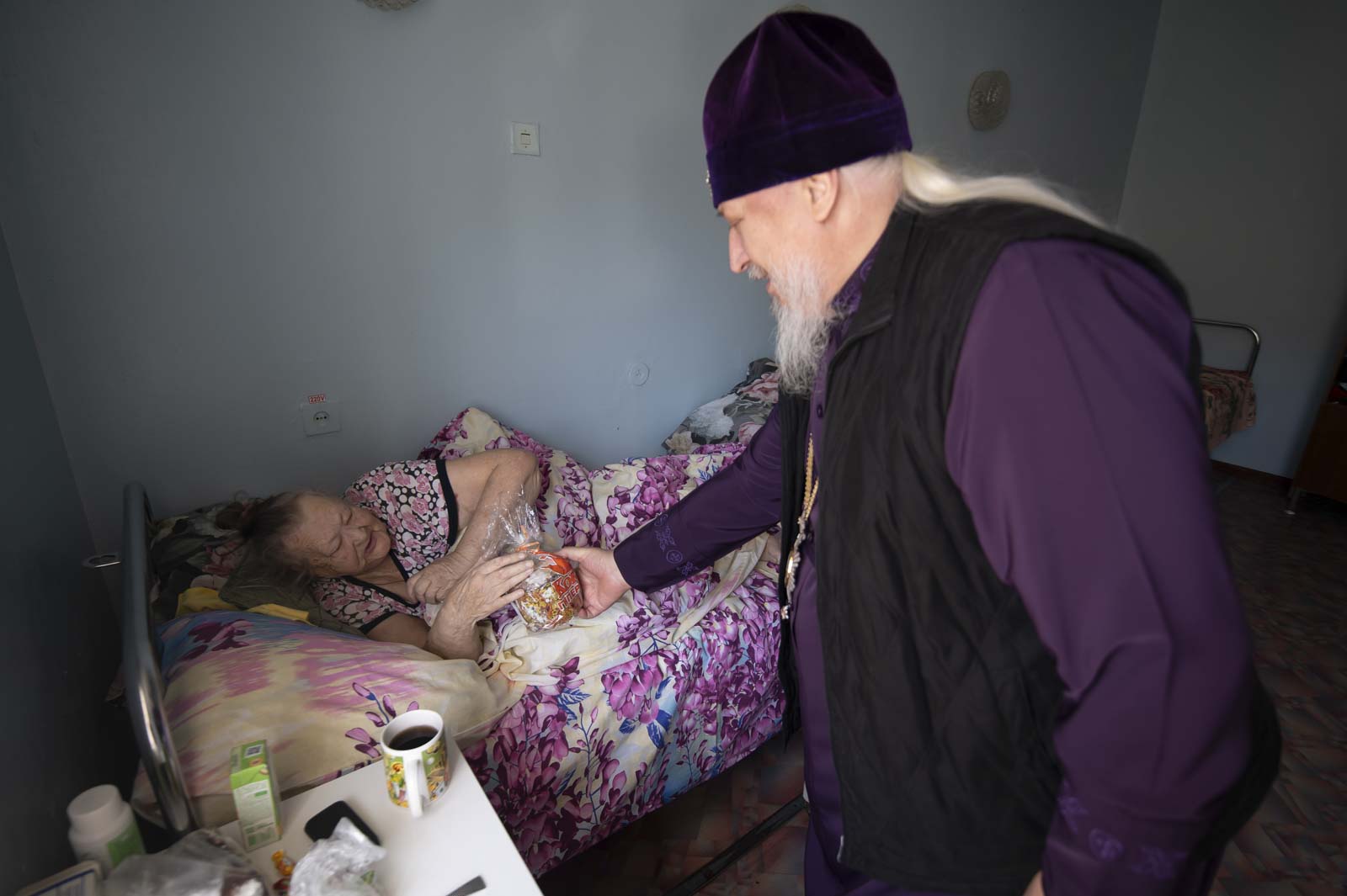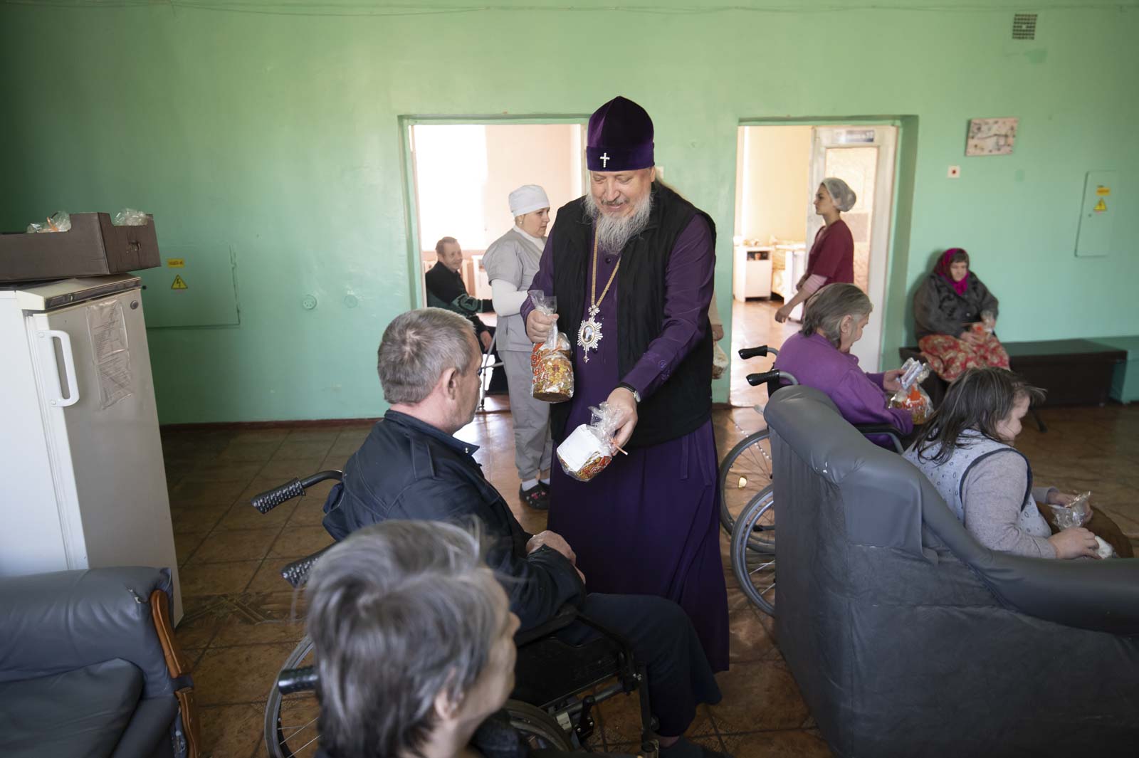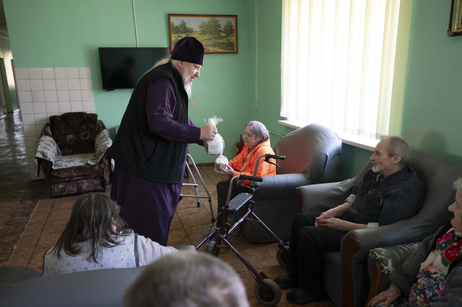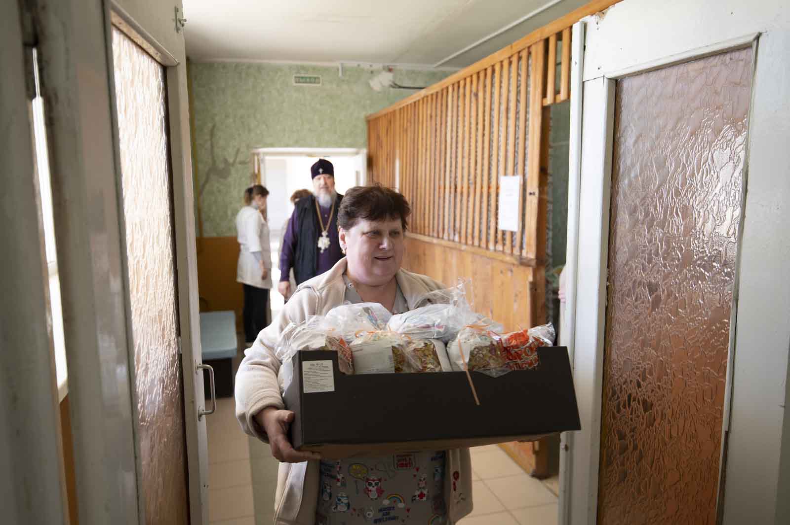 Затем архиепископ Стефан посетил больницу в Тереховке, где в палатах сестринского ухода находятся 34 пациента. Это пожилые и немощные люди, которым требуется постоянная помощь и уход. В дни Пасхи особенно важно, чтобы и они не были лишены внимания и заботы. Архипастырь зашел в палаты, побеседовал с пациентами, поздравил их с праздником Светлого Христова Воскресения и вручил каждому пасхальные угощения — куличи, фрукты и соки. А для больницы были переданы средства гигиены и бытовая химия.