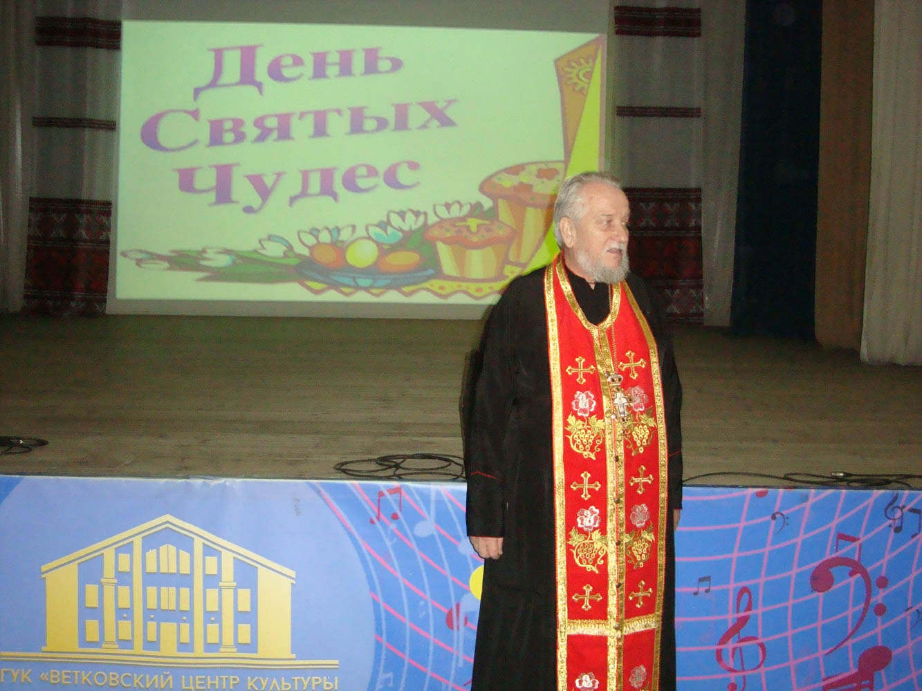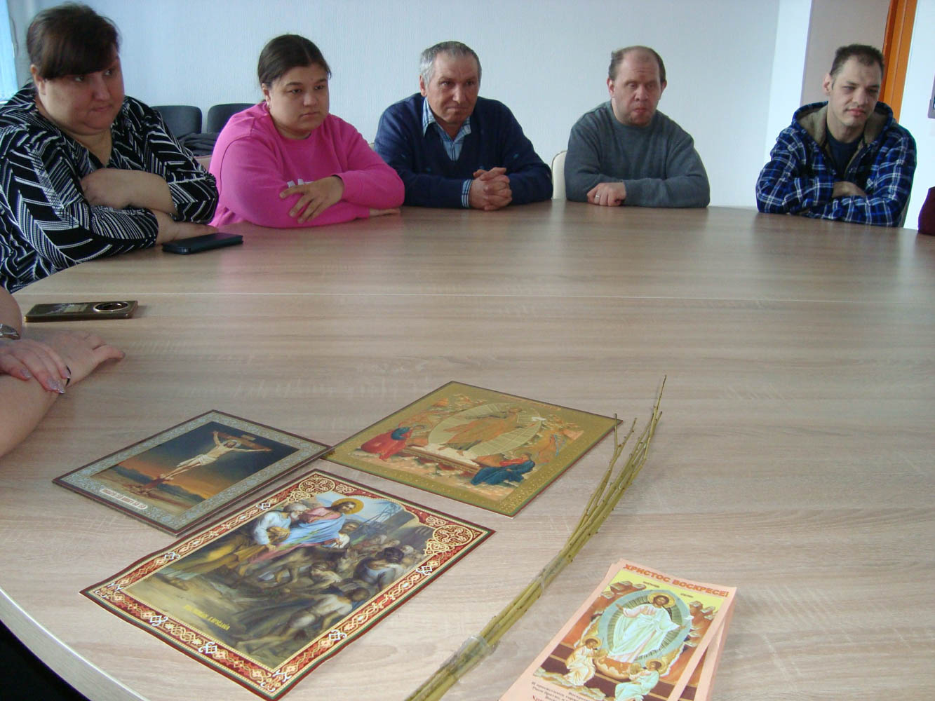 В дни Светлой седмицы приход храма Преображения Господня в Ветке провёл несколько пасхальных встреч, в центре которых были дети и люди, нуждающиеся в особом внимании. Разговор о Пасхе Христовой звучал в эти дни и в зале центра культуры, и в детском саду, и в центре социального обслуживания.
