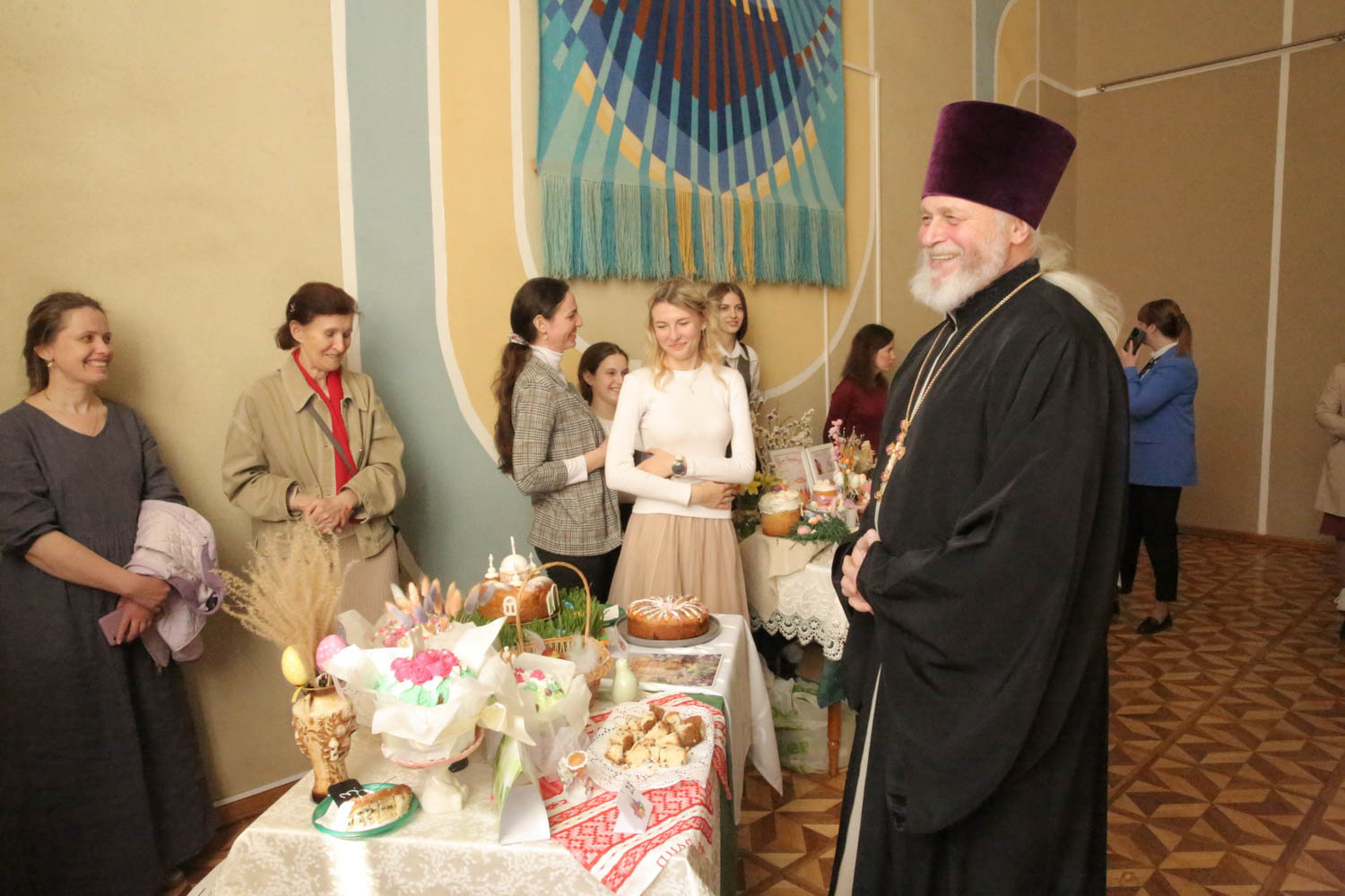 Праздничная атмосфера чувствовалась даже на улице: прежде, чем зайти в зал, гости с удовольствием делали снимки у тематических фотозон, представленных на конкурс «Пасхальный калейдоскоп». А из фойе уже манил ароматами традиционной выпечки кулинарный конкурс «Пасхальный кулич».