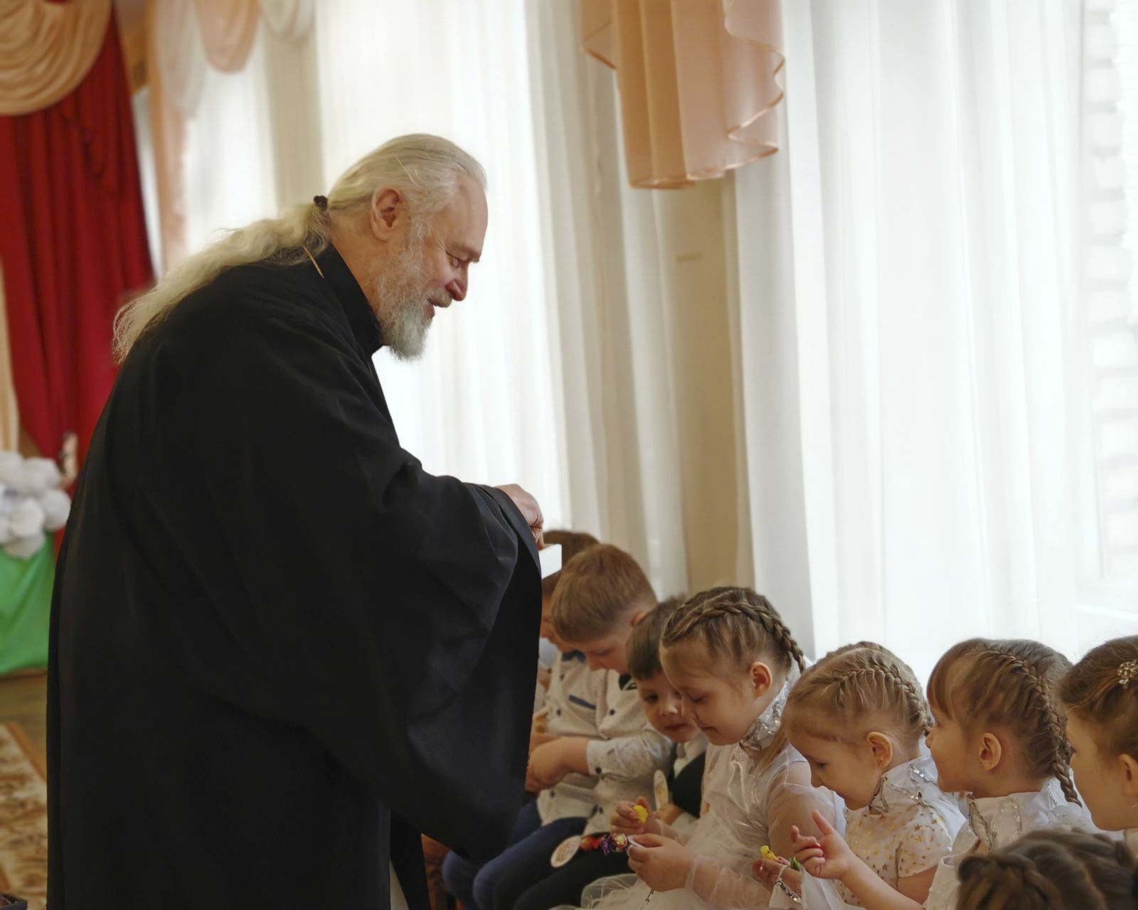 Пастырское окормление коснулось и сельских приходов. Настоятель храма святого великомученика Георгия Победоносца аг. Красный Берег протоиерей Петр Петрушенко посетил Радушский детский сад. Праздничная встреча, наполненная традиционными народными играми, стала поводом для наставления о важности сыновнего послушания и любви к ближним.