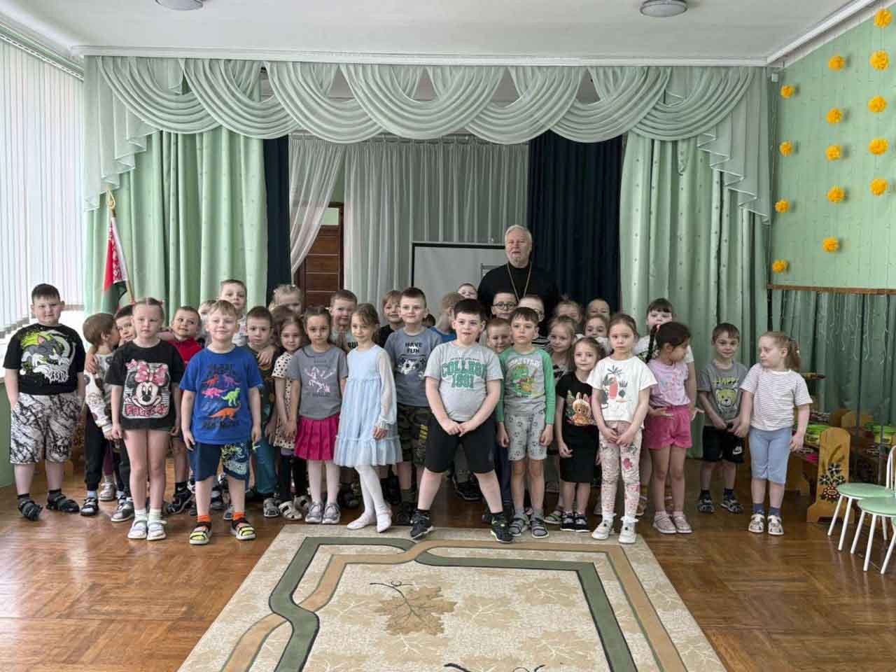 В тот же день воспитанников детского сада №5 г. Жлобина навестил клирик Свято-Троицкого собора протоиерей Павел Бондарчук. Священник благовествовал детям о величайшем чуде — Воскресении Господа нашего Иисуса Христа, являющемся залогом вечной жизни для каждого верующего. Дети поделились своим опытом подготовки к торжеству: участием в храмовых богослужениях и семейных пасхальных традициях.