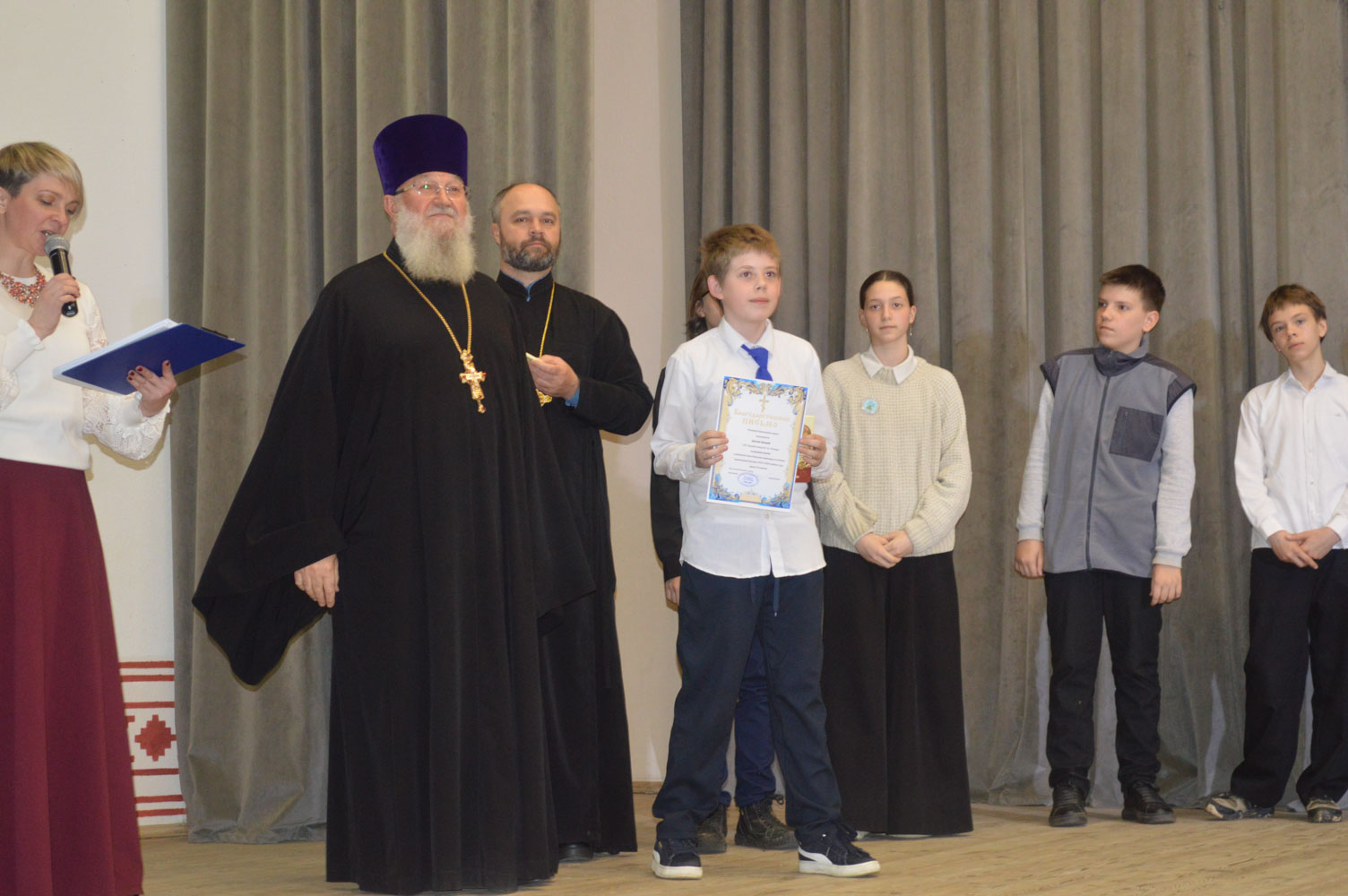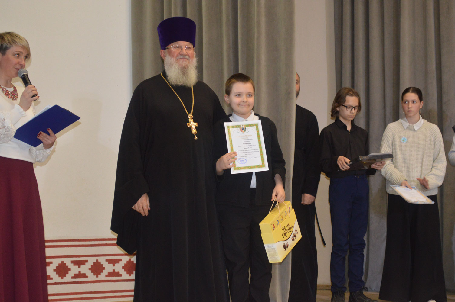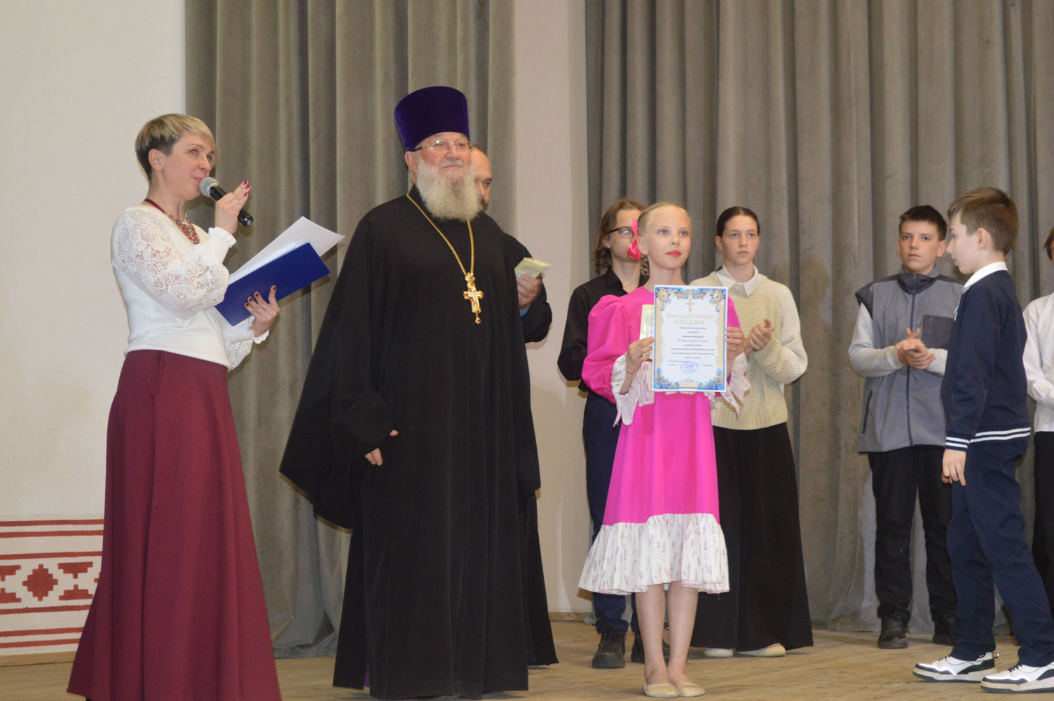 Отдельное место в программе заняла церемония награждения. Дипломы получили победители и участники районного этапа областной олимпиады по основам православной культуры среди учащихся 4–8 классов. Для ребят это стало важной частью вечера — их труд и интерес к предмету были замечены и отмечены публично.