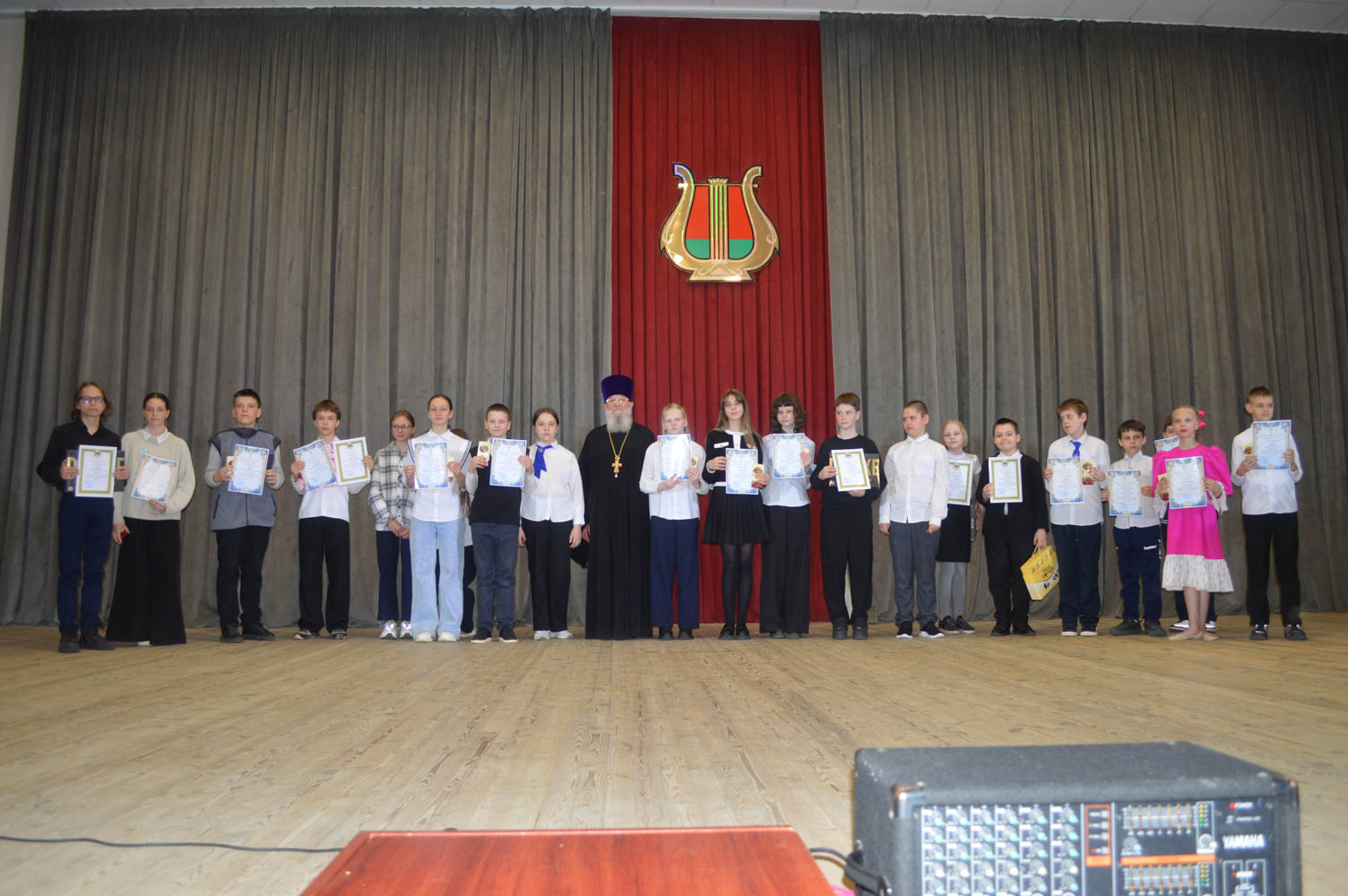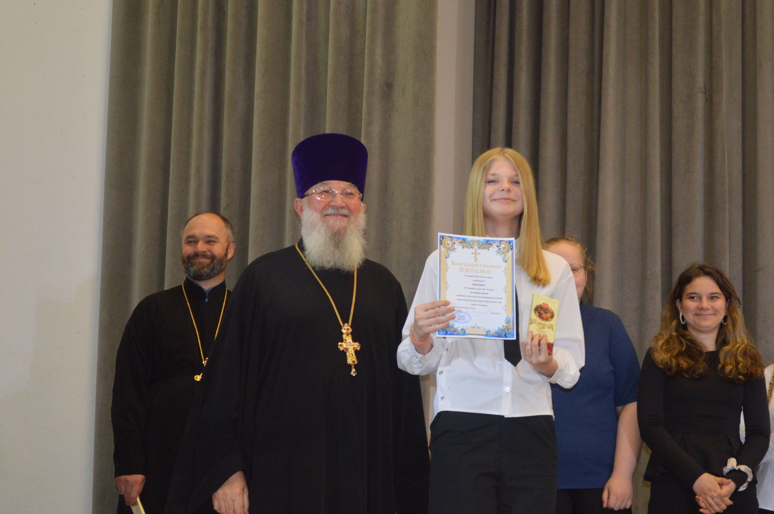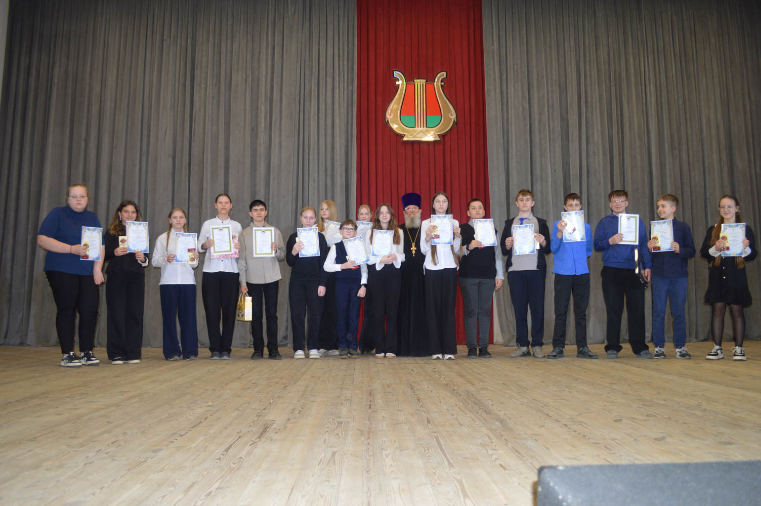 Отдельное место в программе заняла церемония награждения. Дипломы получили победители и участники районного этапа областной олимпиады по основам православной культуры среди учащихся 4–8 классов. Для ребят это стало важной частью вечера — их труд и интерес к предмету были замечены и отмечены публично.