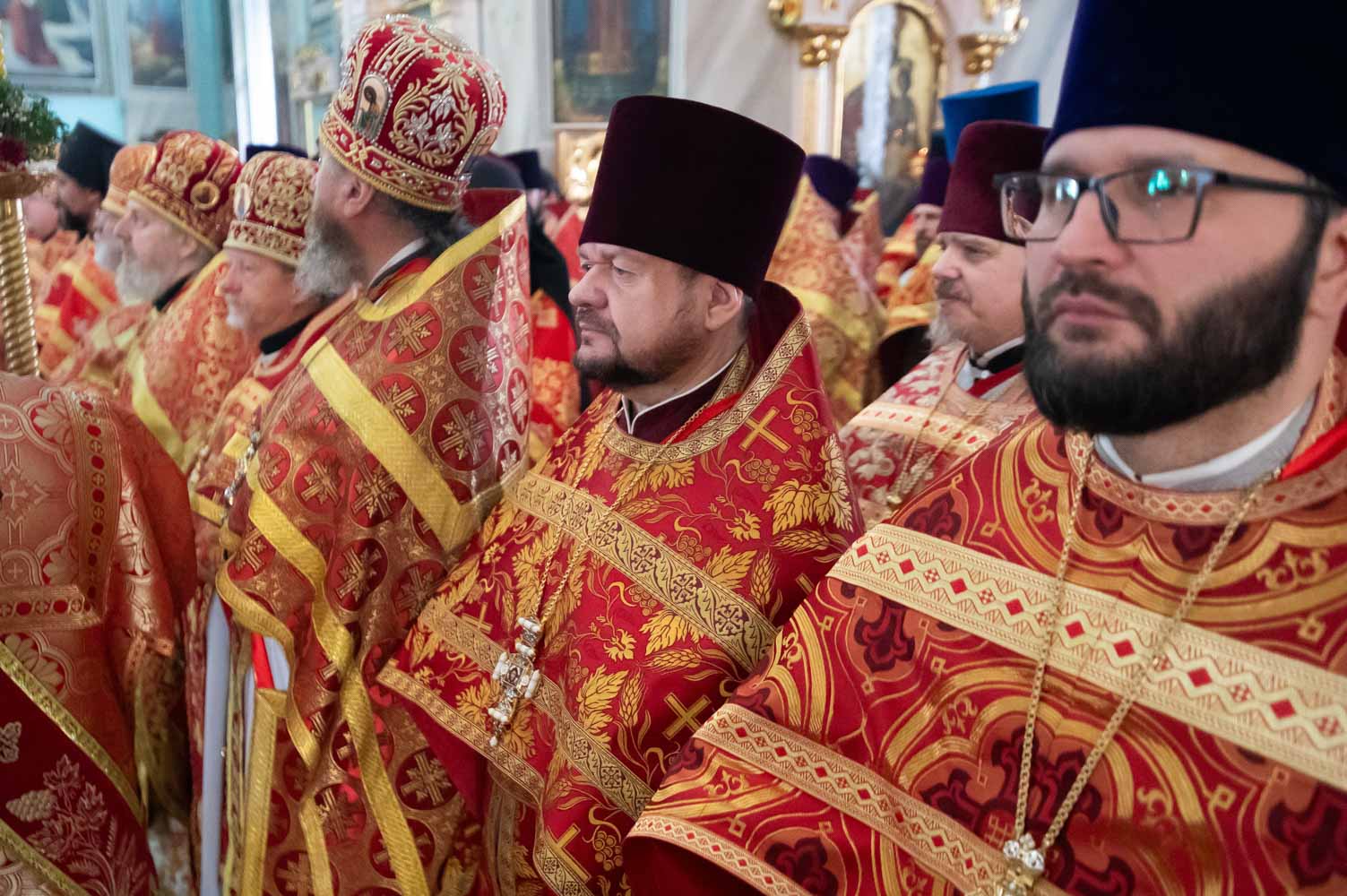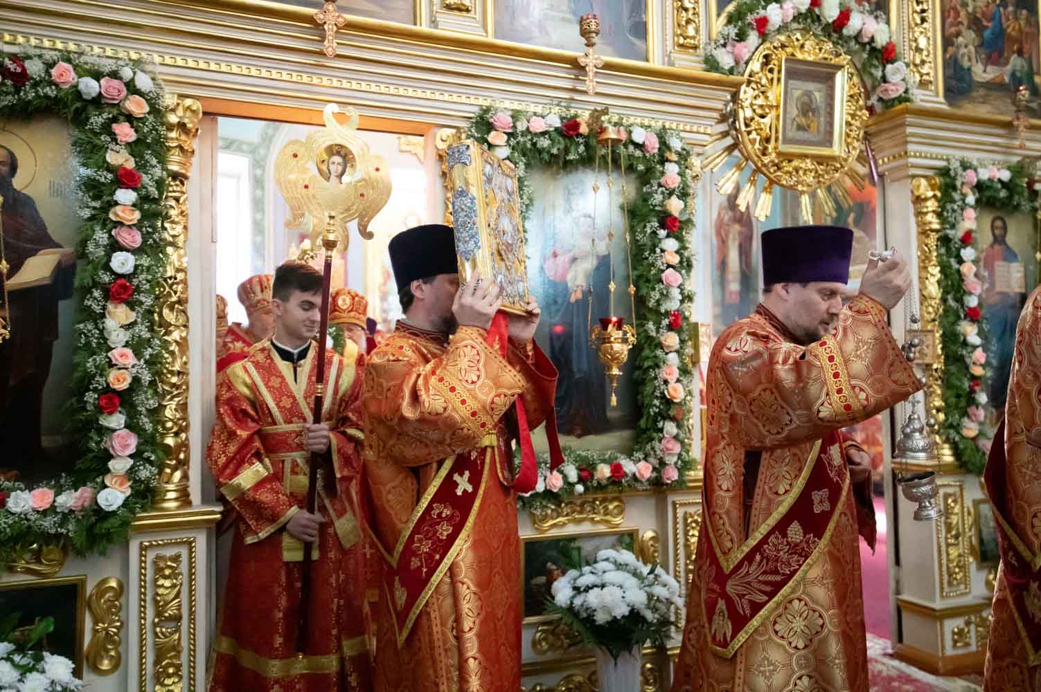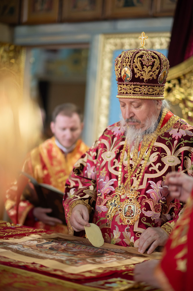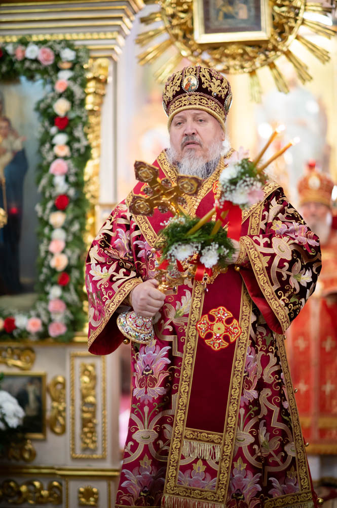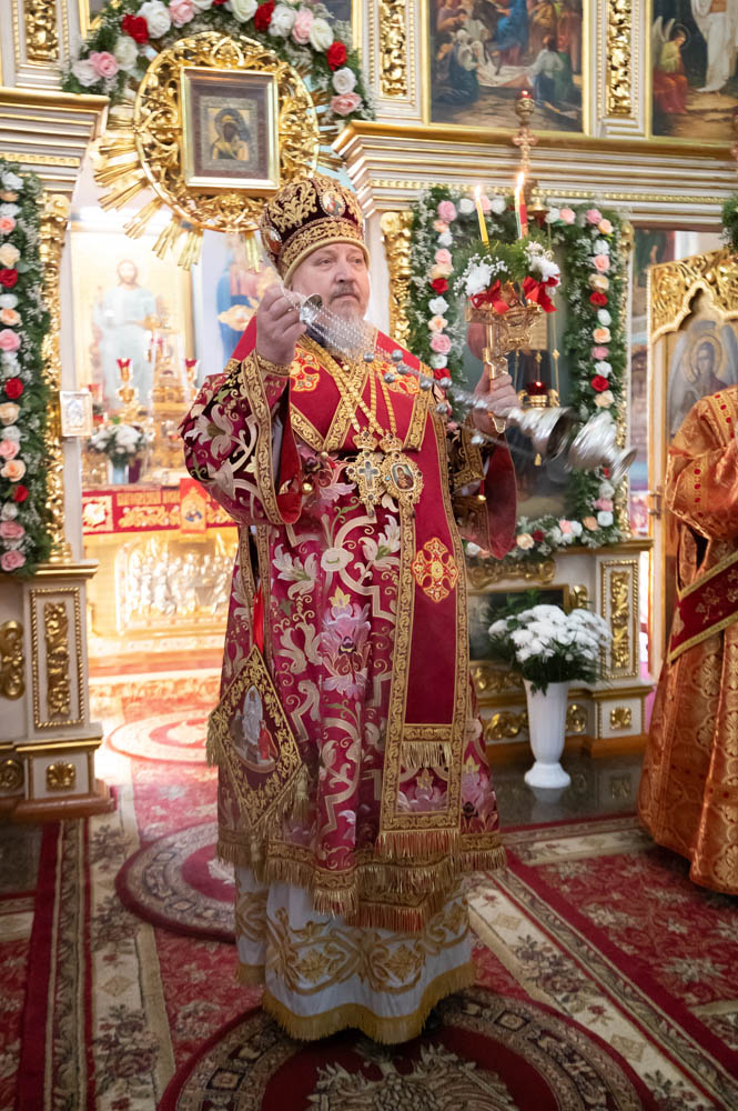 Его Высокопреосвященству сослужили благочинные округов, председатели епархиальных отделов, настоятели приходов и духовенство епархии.