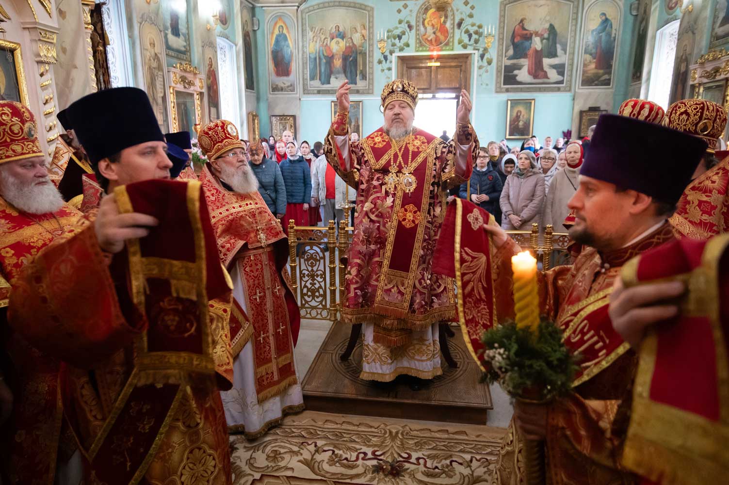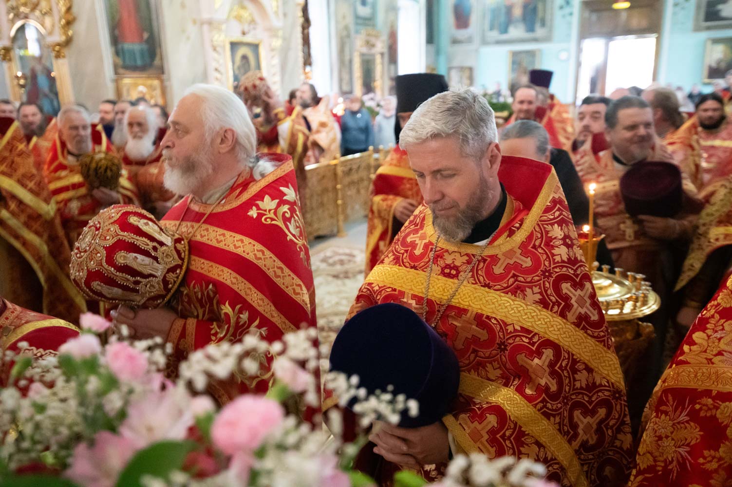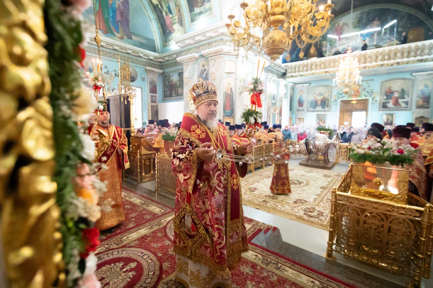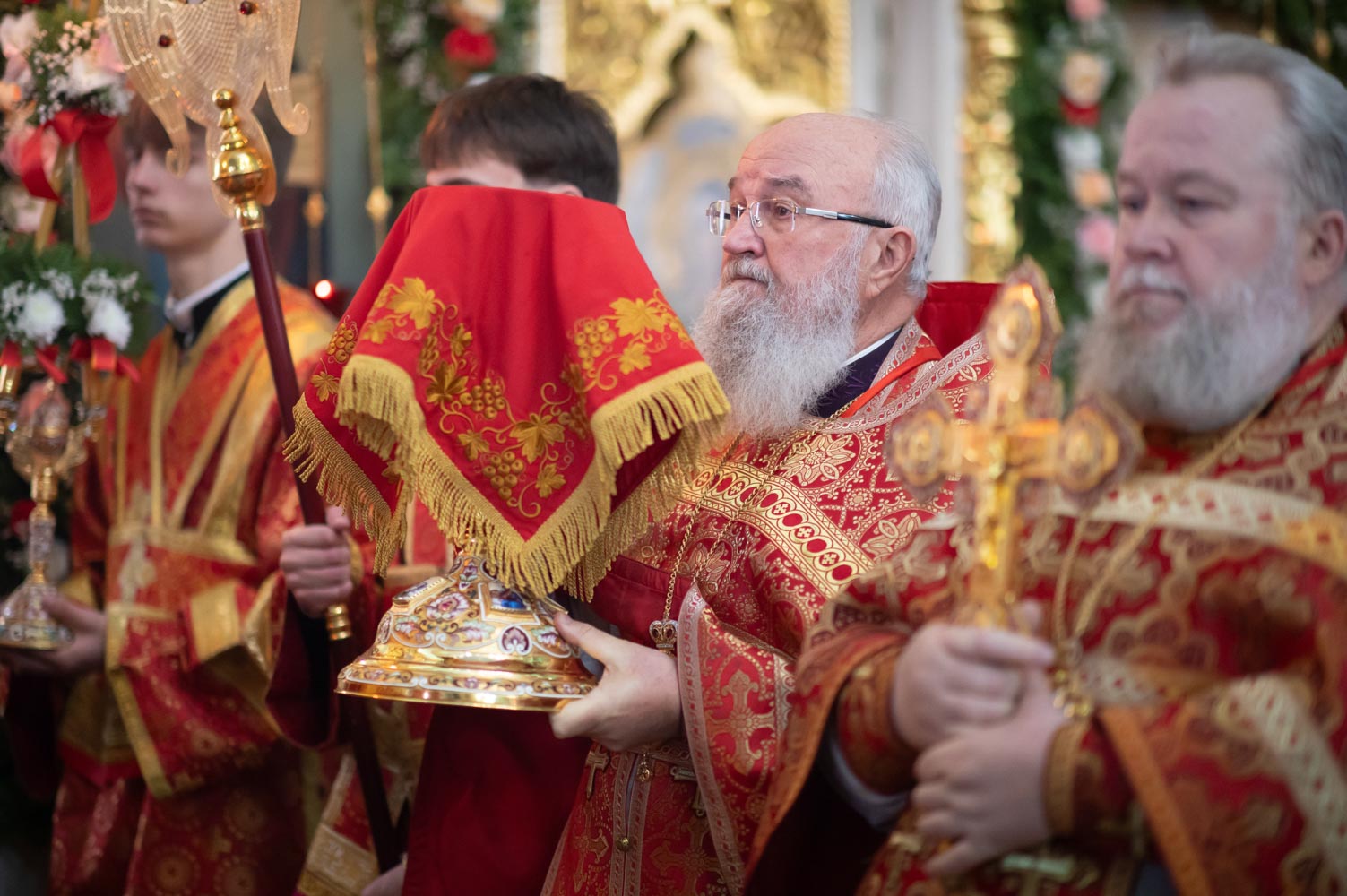 Его Высокопреосвященству сослужили благочинные округов, председатели епархиальных отделов, настоятели приходов и духовенство епархии.