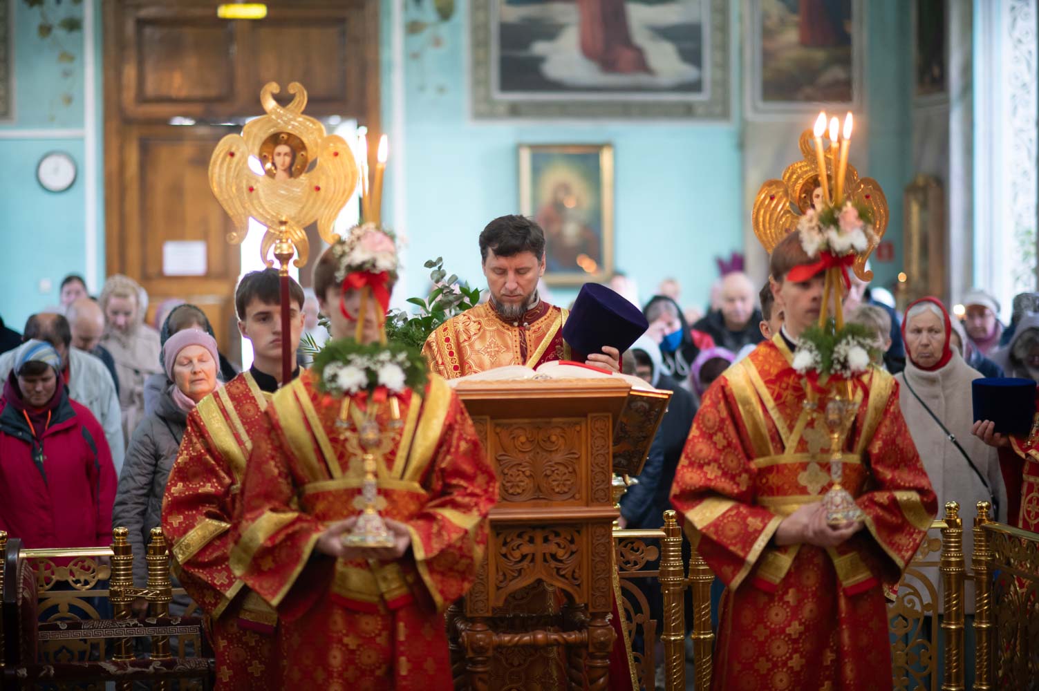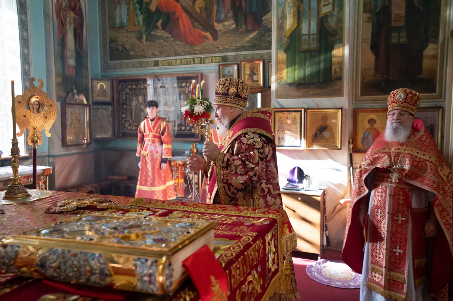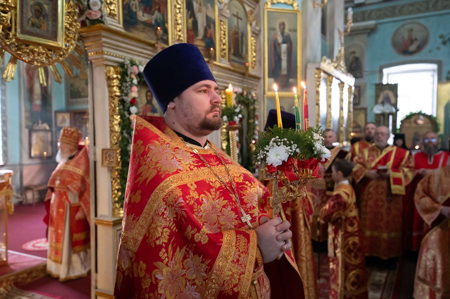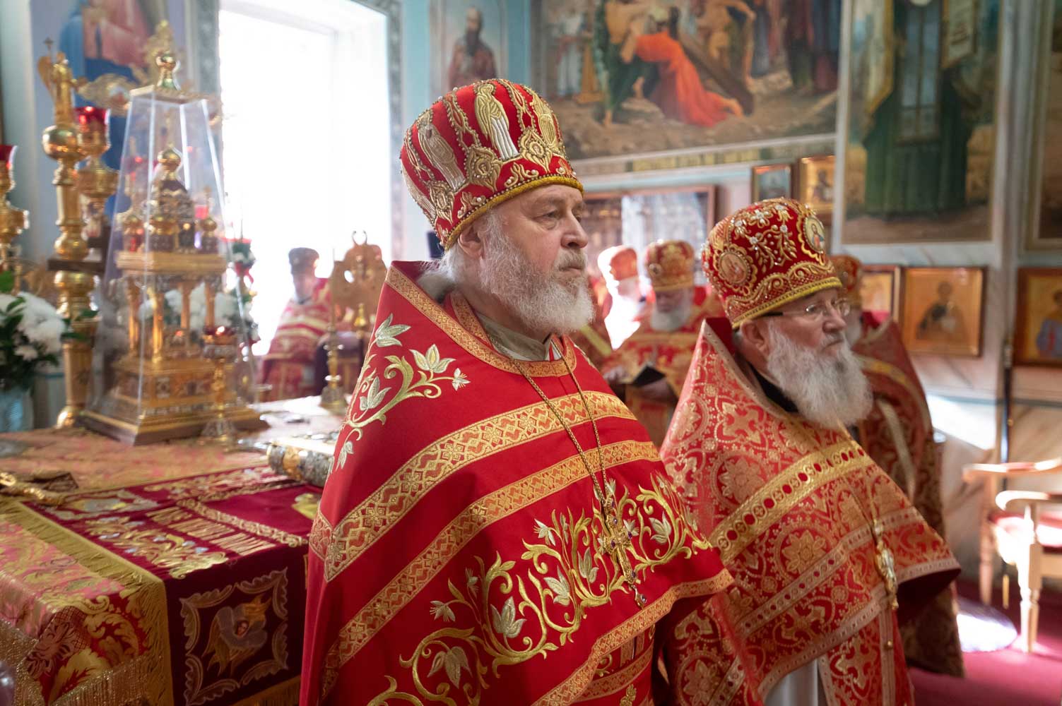 Его Высокопреосвященству сослужили благочинные округов, председатели епархиальных отделов, настоятели приходов и духовенство епархии.