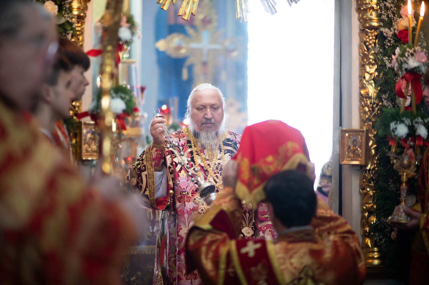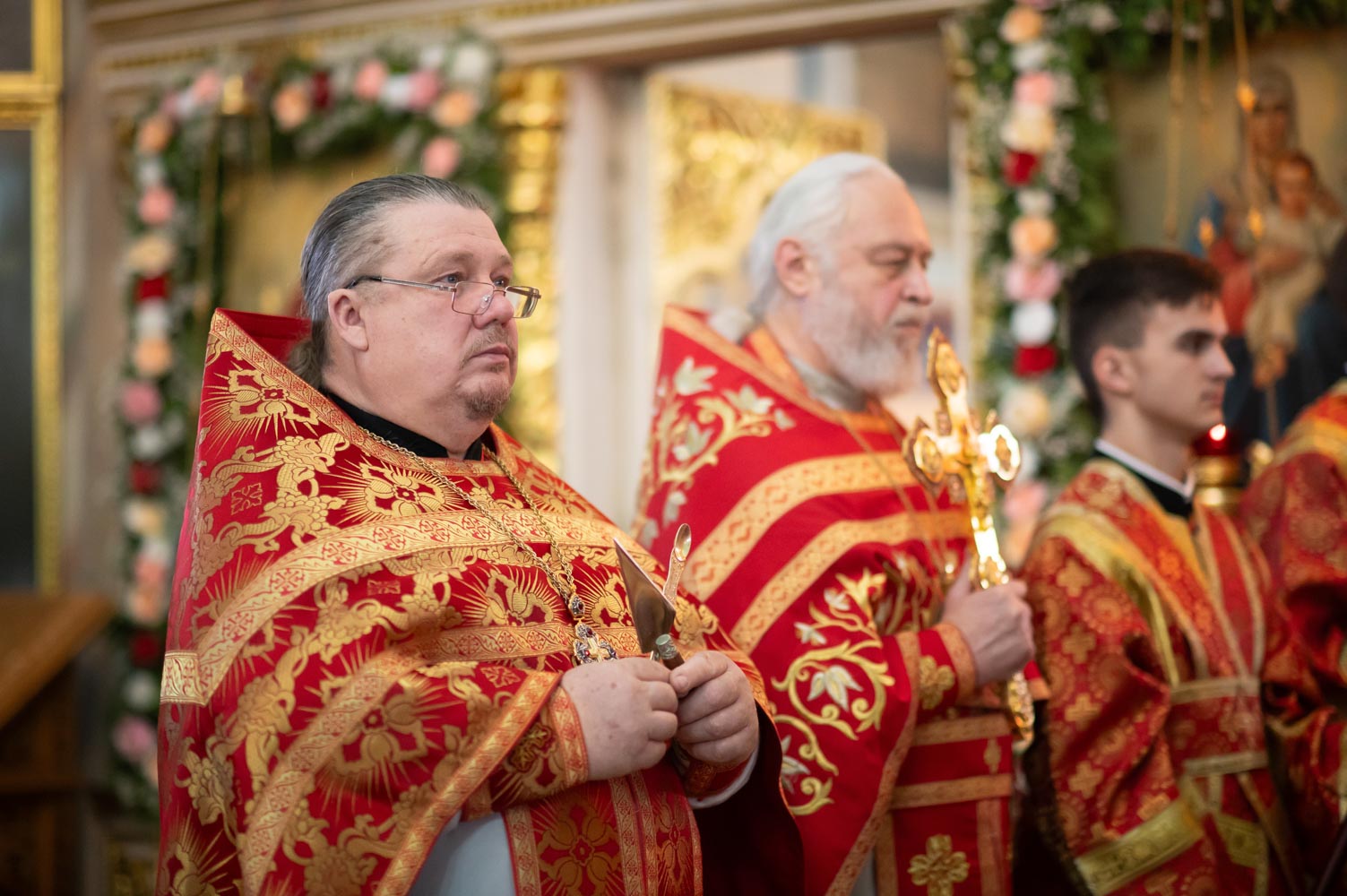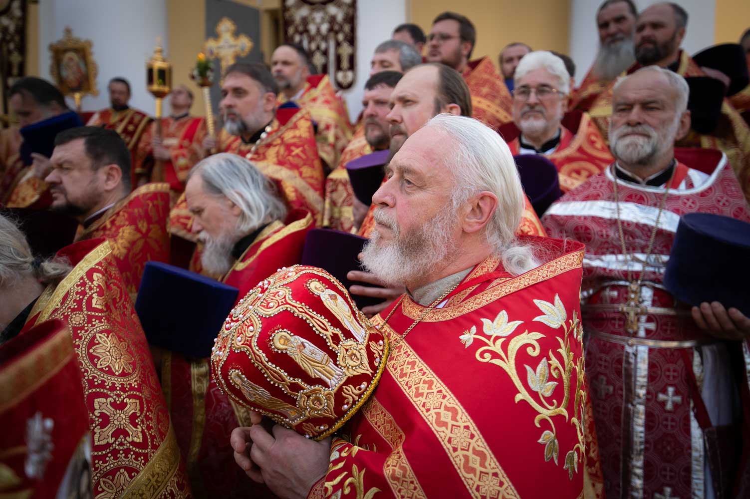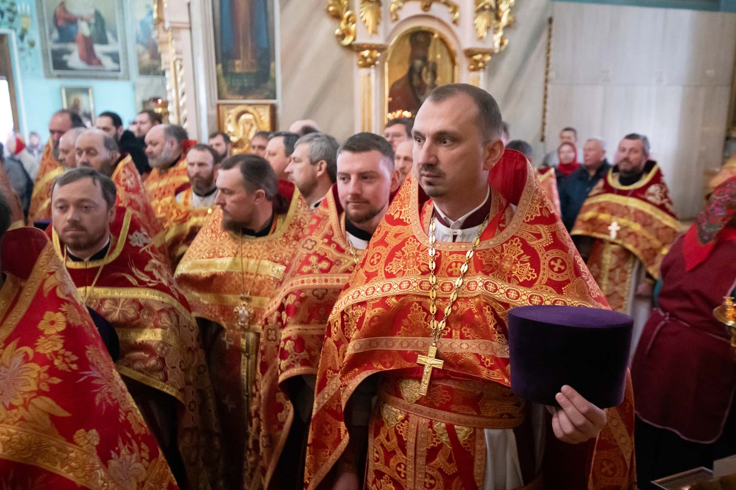 Его Высокопреосвященству сослужили благочинные округов, председатели епархиальных отделов, настоятели приходов и духовенство епархии.