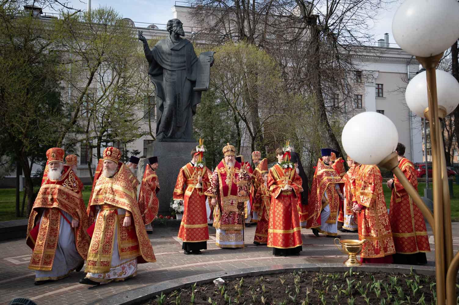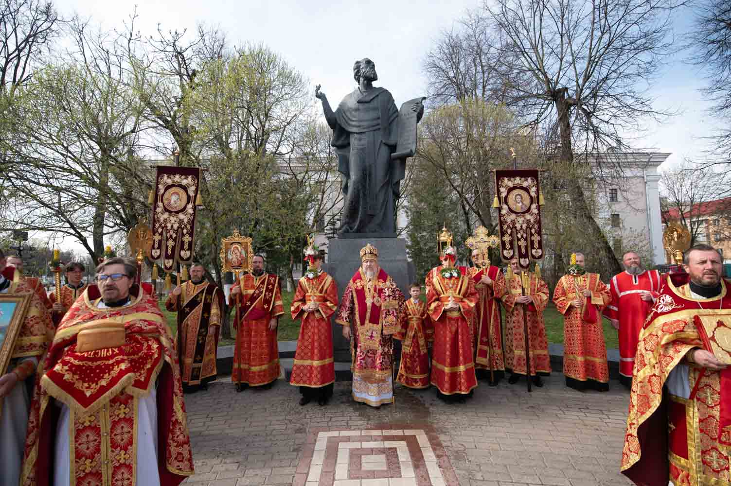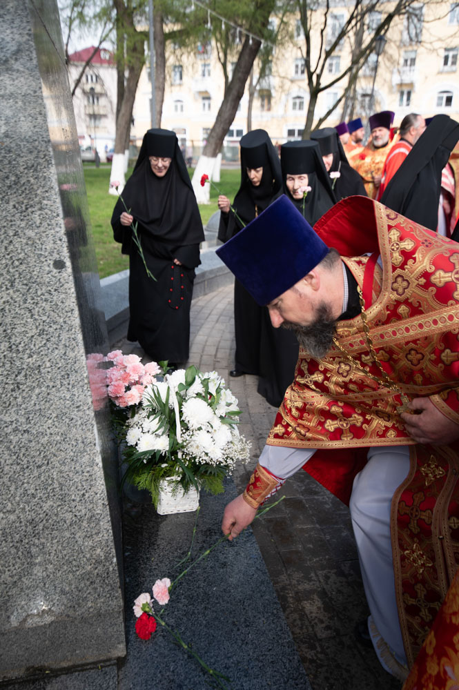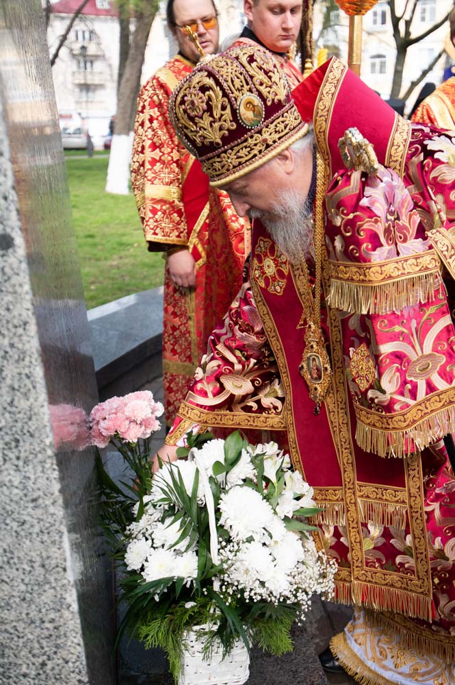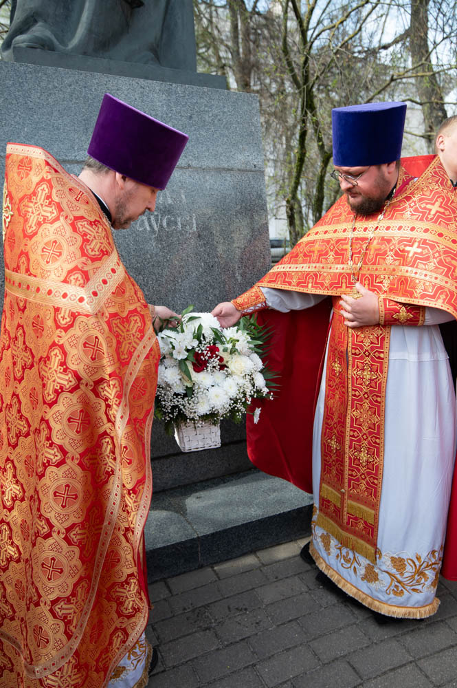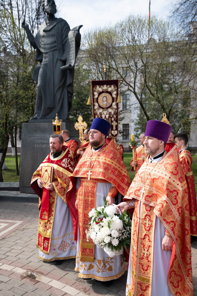 После богослужения духовенство и верующие по традиции совершили Крестный ход к памятнику святителю Кириллу Туровскому, установленному в одноимённом сквере у Гомельского областного драматического театра. У памятника было пропето величание святому и возложены цветы.