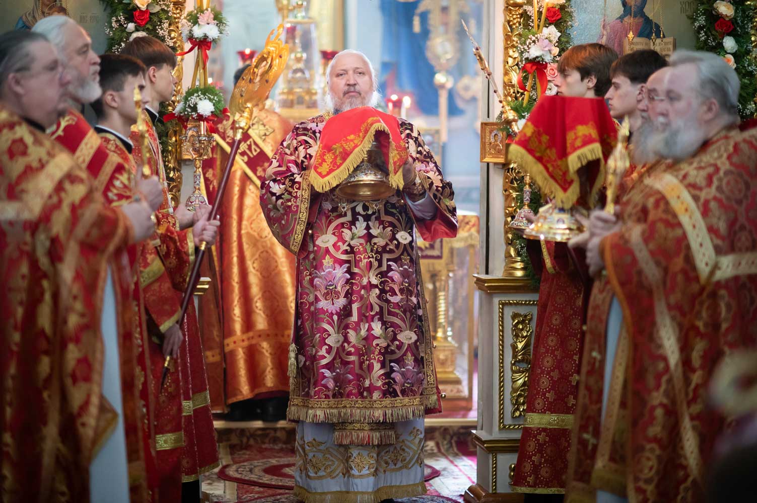 Божественную литургию 16 апреля 2026 года, в четверг Светлой седмицы, в Петро-Павловском кафедральном соборе совершил Высокопреосвященнейший Стефан, архиепископ Гомельский и Жлобинский.