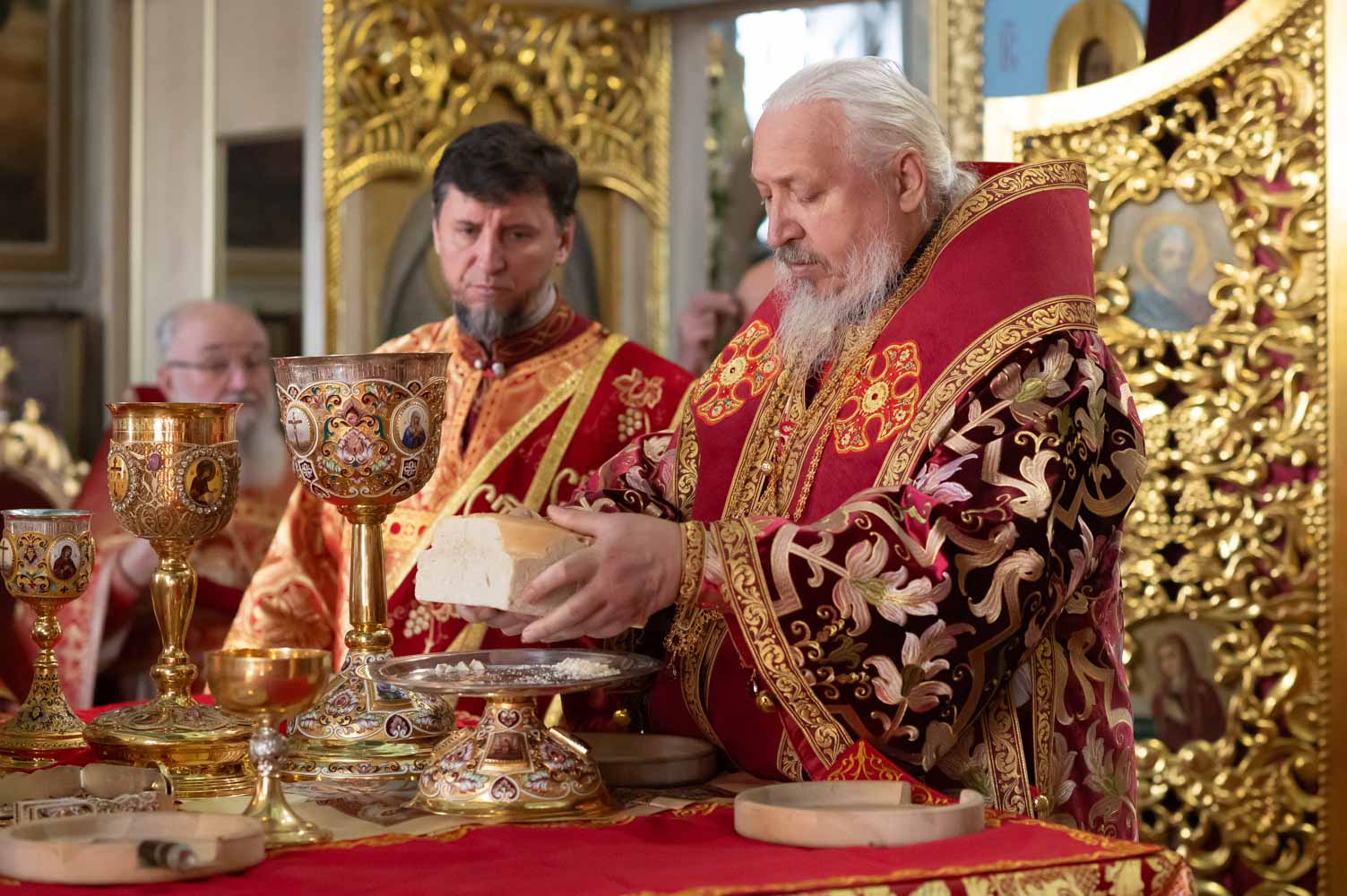 Во время богослужения были вознесены сугубые молитвенные прошения о восстановлении мира.