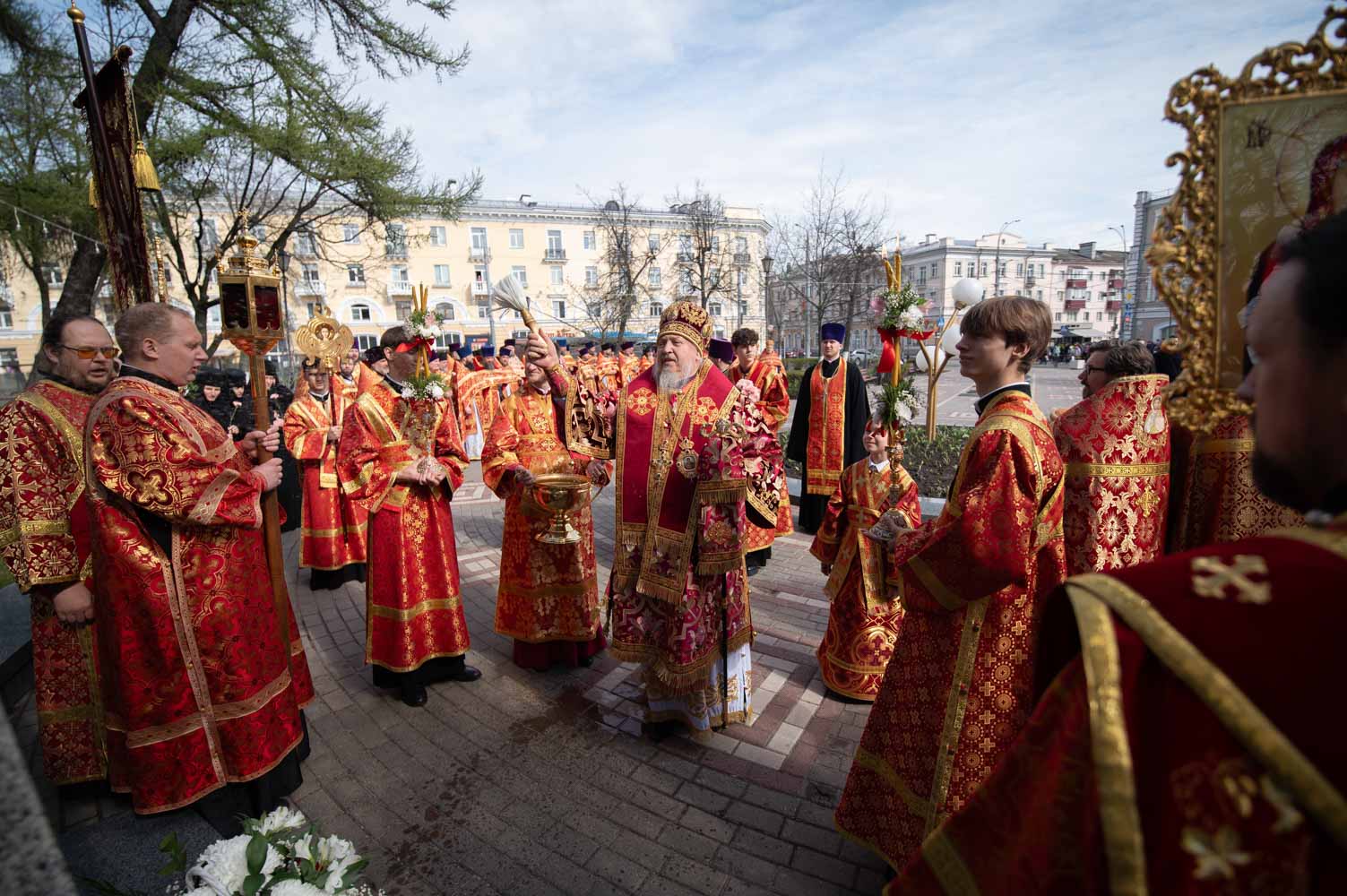 В дни Светлой седмицы в Петро-Павловском кафедральном соборе по многолетней традиции собирается духовенство Гомельской епархии на общую молитву. Пасхальные дни продолжаются, и Церковь вновь и вновь обращается к главной вести христианства — Христос воскрес.