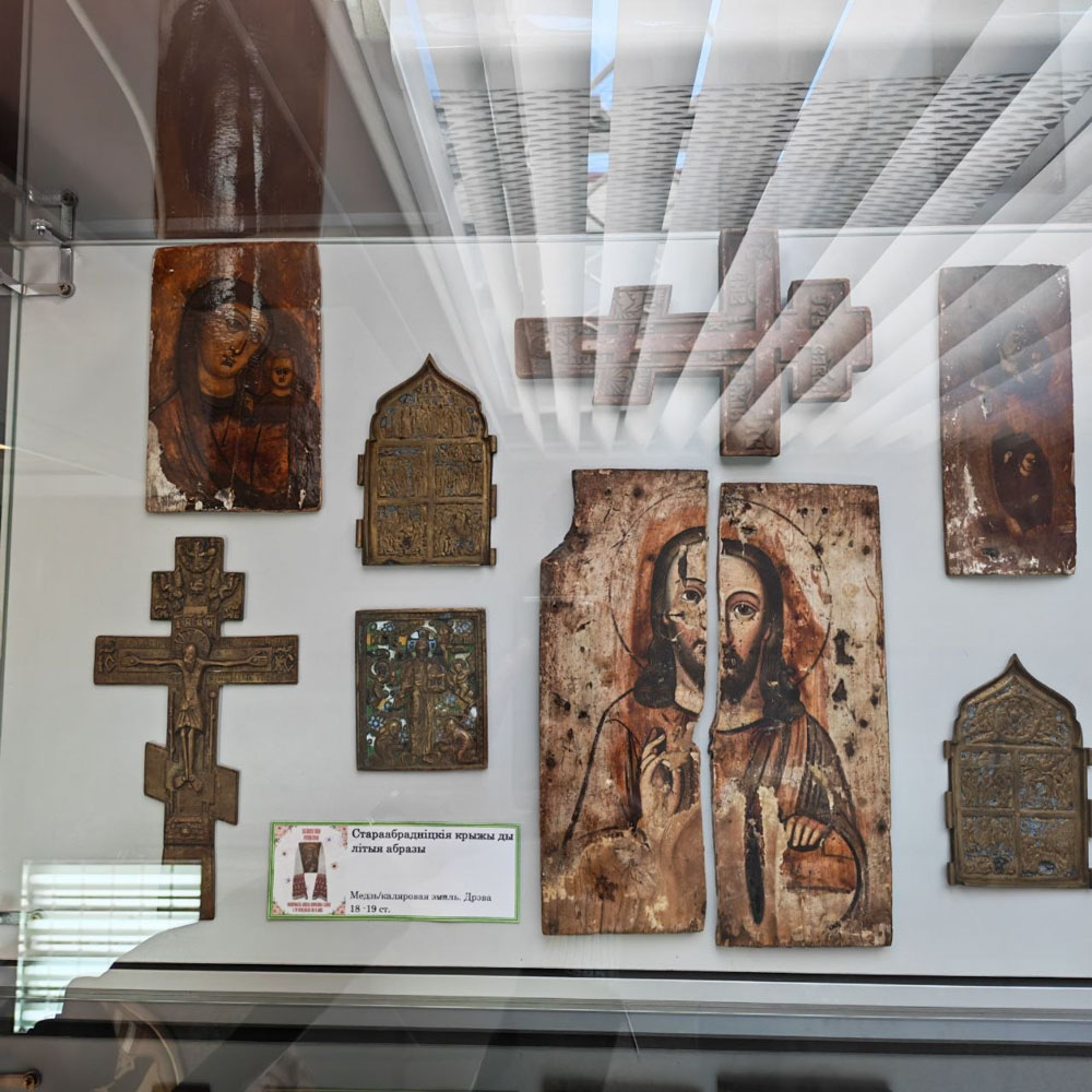 В экспозиции представлено более 50 икон из фондов музея. Это белорусские народные образы Поднепровского региона, отличающиеся тёплой цветовой гаммой, живыми, близкими человеку ликами святых и декоративными цветочными мотивами. Дополняют экспозицию церковная утварь, старообрядческие литые иконы и кресты, уникальные книги XVII–XVIII веков и самотканые рушники, в том числе неглюбские, внесённые в список ЮНЕСКО.