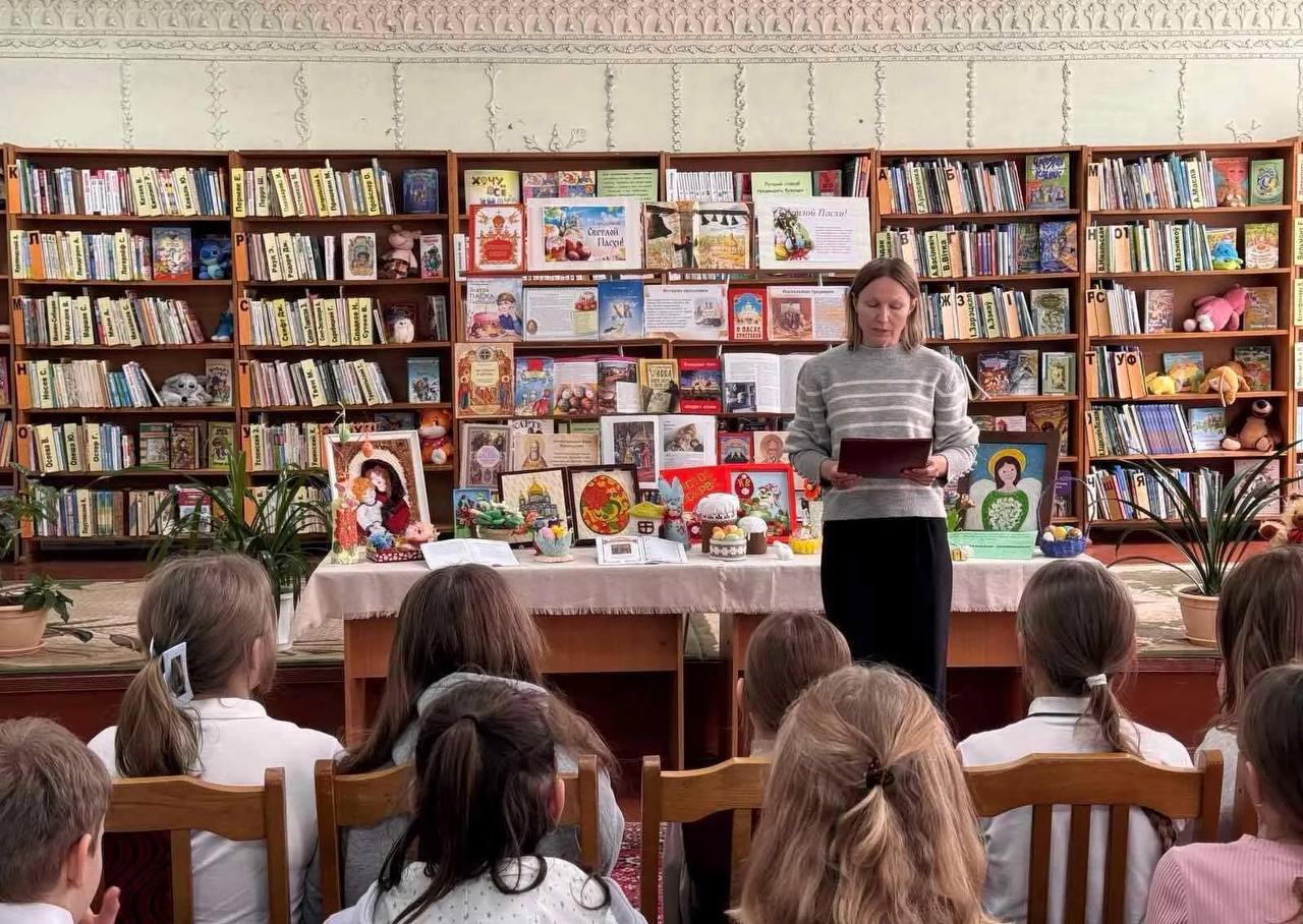 15 апреля в городской библиотеке № 2 для учащихся пятых классов ГУО «Гимназия № 8 имени В. И. Козлова» прошёл православный час «Светлый праздник Пасхи». Гостем встречи стал клирик прихода храма преподобного Серафима Саровского в г. Жлобине иерей Михаил Маркосян.