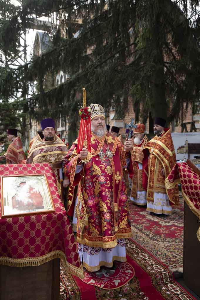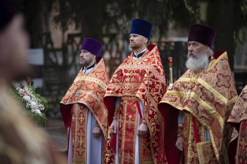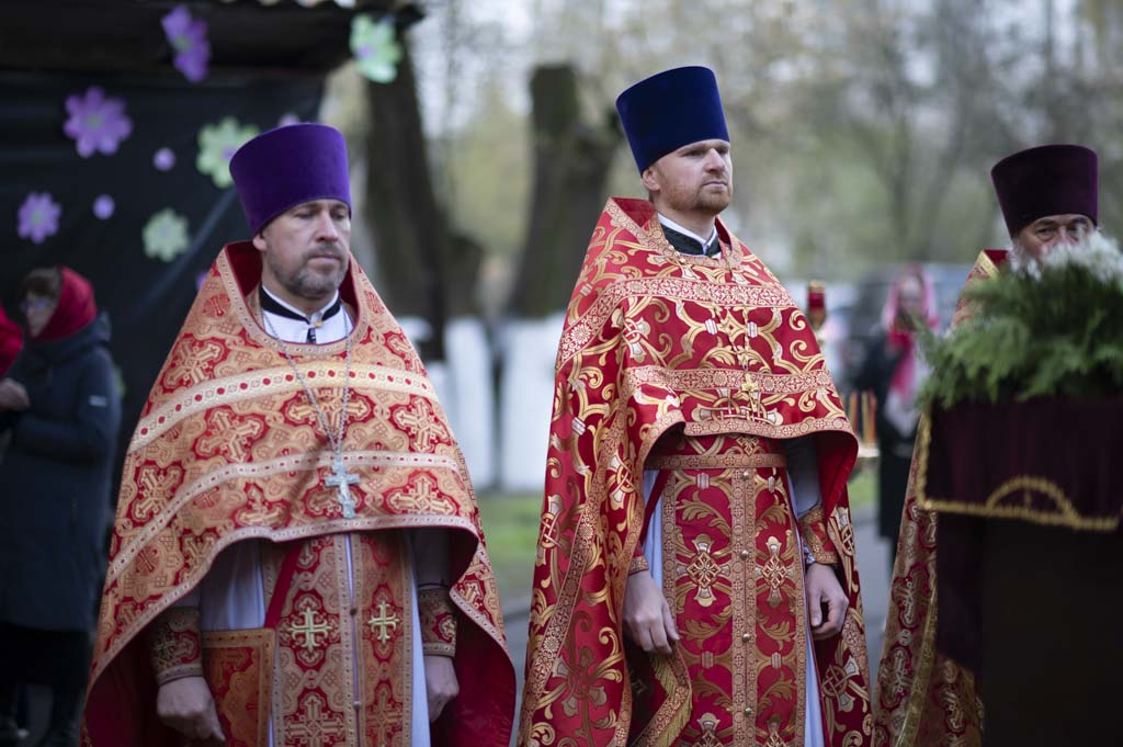 Его Высокопреосвященству сослужили: секретарь Гомельской епархии протоиерей Георгий Алампиев, благочинный Светлогорского округа протоиерей Александр Кисель, благочинный Гомельского районного округа протоиерей Артемий Кривицкий, благочинный монастырей Гомельской епархии игумен Феодорит (Золотарев), настоятель храма великомученика Георгия Победоносца в г. Гомеле протоиерей Дмитрий Гончаров, настоятель прихода храма иконы Божией Матери «Скоропослушница» в г.Гомеле протоиерей Александр Шиленок, настоятель храма и ректор Библейско-богословских курсов протоиерей Вадим Качан, эконом Гомельской епархии протоиерей Владимир Масалитин и клирики епархии.