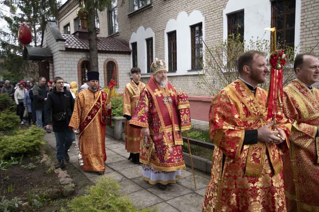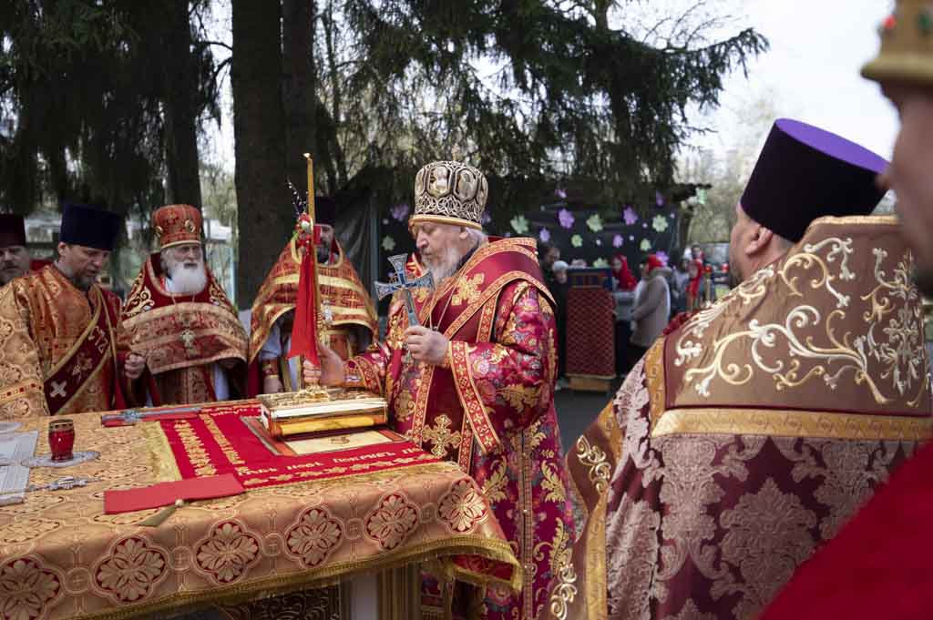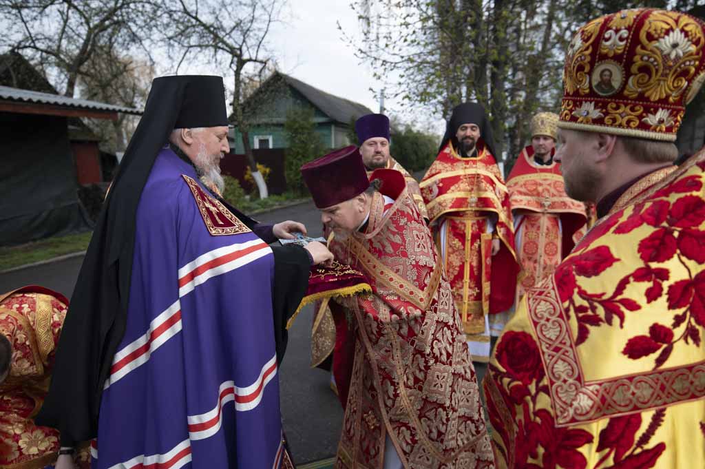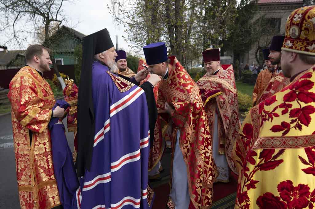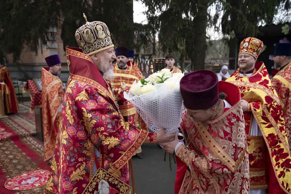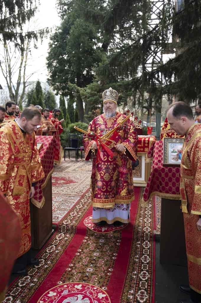 За богослужением, наполненным радостью о Воскресшем Спасителе, были вознесены сугубые прошения о даровании мира. По заамвонной молитве правящий архиерей и сослужащие ему пастыри совершили крестный ход. Затем владыка Стефан поздравил причастников с принятием Святых Христовых Таин и обратился к пастве со словом духовного назидания.