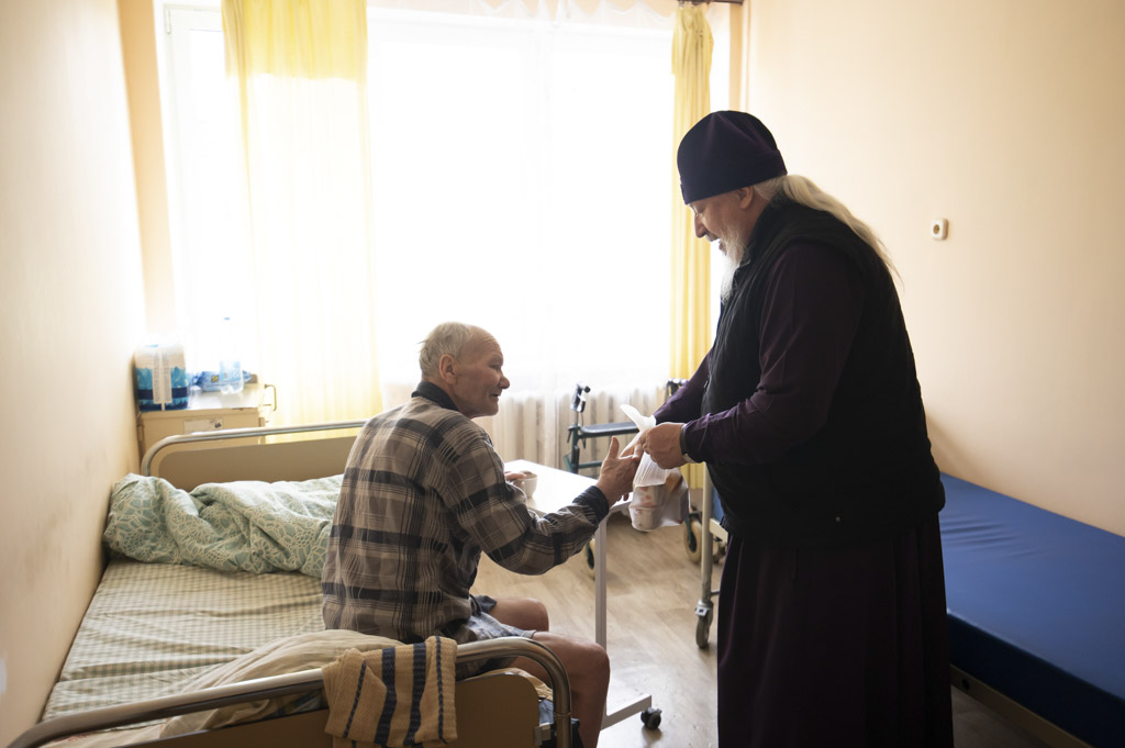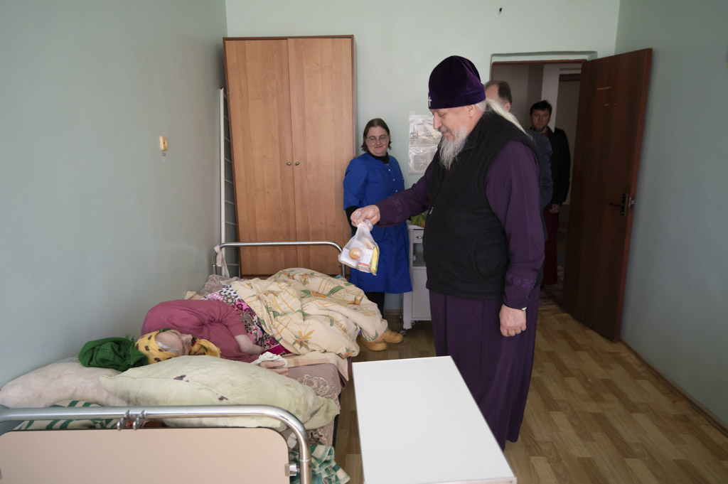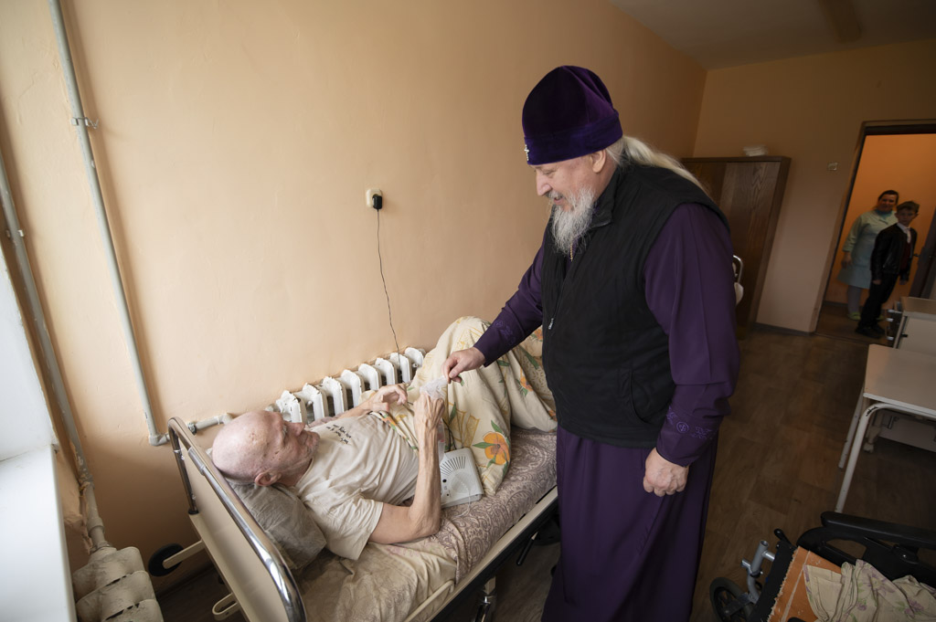 В настоящее время в учреждении проживает девятнадцать одиноких пожилых людей. Для них пребывание на социальных койках — не только медицинская необходимость, но и период сугубых испытаний, требующий духовного укрепления. В рамках визита правящий архиерей передал в дар больнице необходимые средства гигиены и бытовой химии.