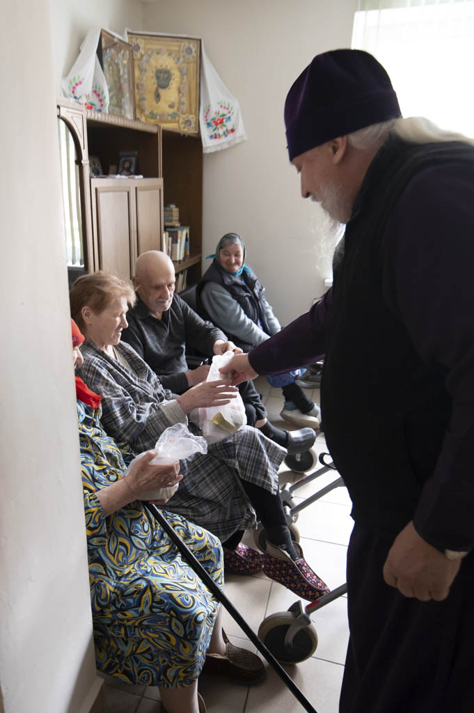 Посещая палаты, архипастырь обратился к пациентам со словами утешения, напоминая о Воскресшем Спасителе, Который сострадает каждому страждущему человеку. Каждому подопечному были вручены пасхальные наборы. В завершение визита Владыка Стефан выразил сердечную благодарность медицинскому персоналу. Высоко оценив их повседневный труд и жертвенное служение, Его Высокопреосвященство пожелал сотрудникам неокудевающей крепости сил и помощи Божией в их благородном призвании.