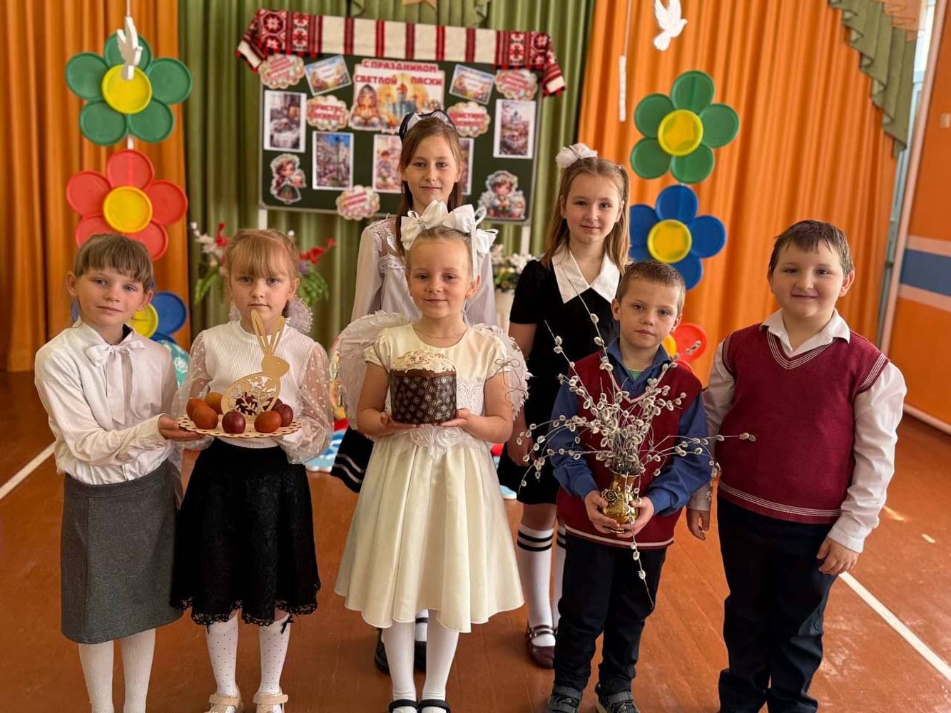Пасхальные мероприятия в приходе храма Святителя Николая Чудотворца в агрогородке Даниловичи Ветковского района начались 13 апреля с освящения Даниловичской начальной школы, которое совершил настоятель прихода протоиерей Андрей Булацкий. После этого священник побеседовал с детьми о Пасхе, о её истории, символике и народных традициях. Ребята вместе с педагогами участвовали в мастер-классе по созданию праздничных сувениров и отвечали на вопросы викторины о пасхальных обычаях.