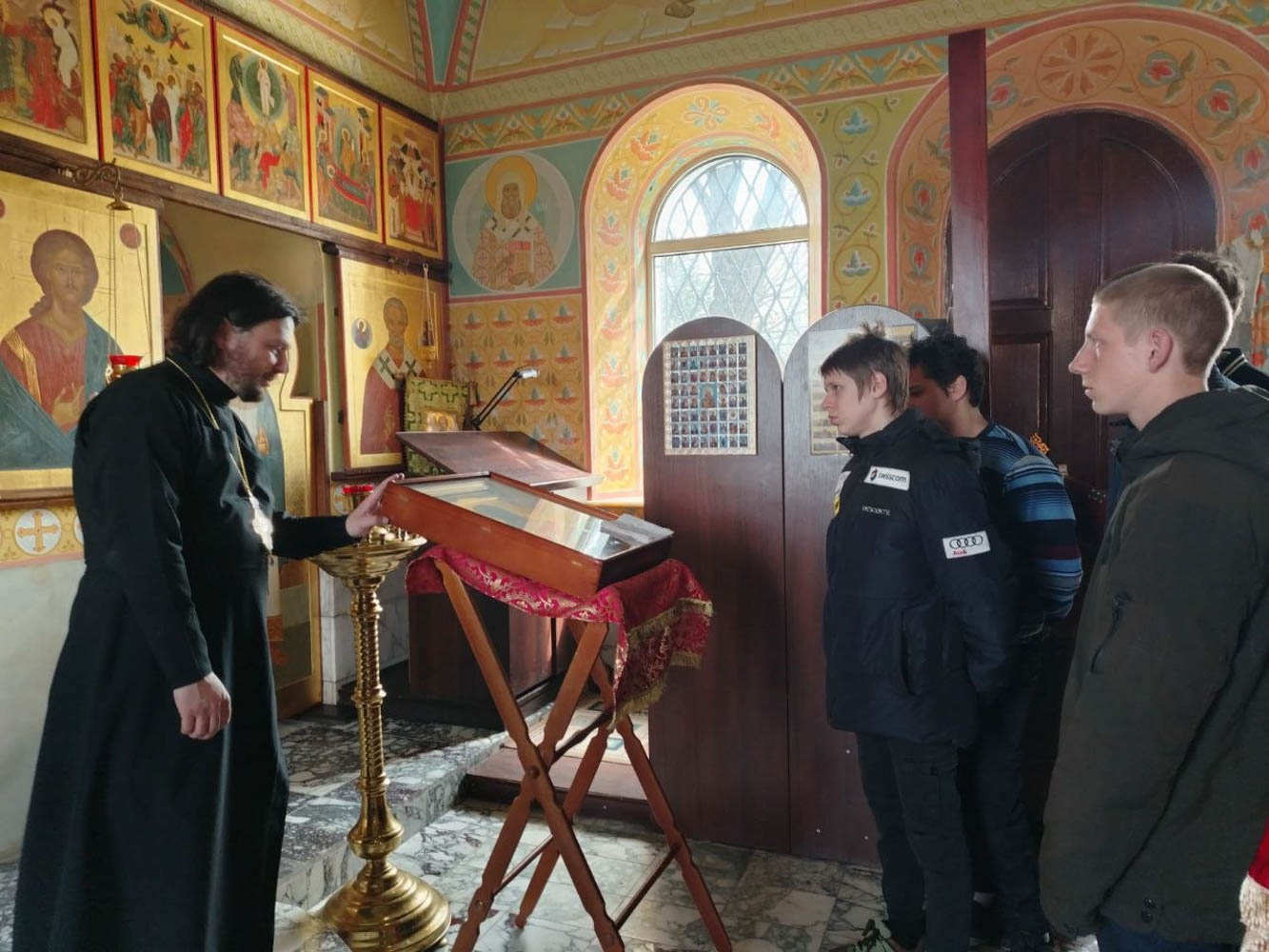 В тот же день десятиклассники Светиловичской средней школы побывали в храме Святителя Николая Чудотворца в деревне Железники Ветковского района. Настоятель храма иерей Роман Кицун провёл для ребят экскурсию, рассказал о святынях храма, о чудотворных иконах и святых мощах. Разговор коснулся и Пасхи Христовой, и семейных ценностей — любви, верности, связи поколений. Для школьников это был разговор не только о церковной традиции, но и о жизненных основах, без которых трудно строить семью и сохранять уважение друг к другу.