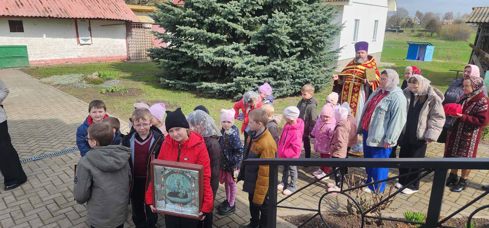 Продолжением этих встреч стало посещение храма 17 апреля, в день празднования иконы Божией Матери «Живоносный источник». Учащиеся Даниловичской начальной школы приняли участие в богослужении, а после Литургии протоиерей Андрей Булацкий обратился к детям с наставлением, помазал их святым маслом, окропил святой водой и благословил на учёбу и послушание. Затем ребята поднялись на колокольню и звоном возвестили о празднике.