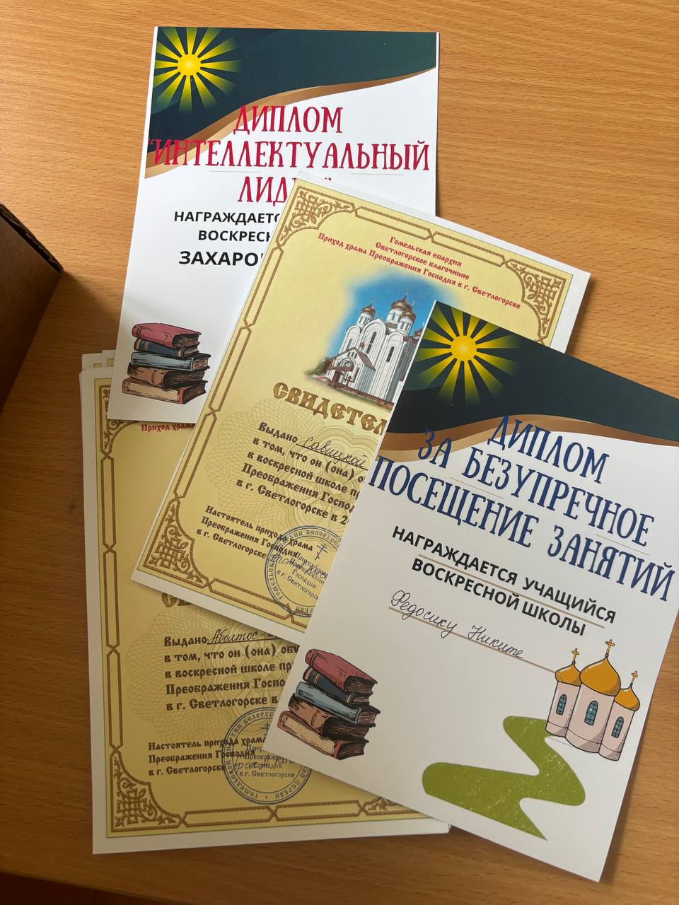 19 апреля 2026 гола в приходе храма Преображения Господня в г. Светлогорске состоялось торжественное вручение свидетельств об окончании учебного года воспитанникам воскресной школы.