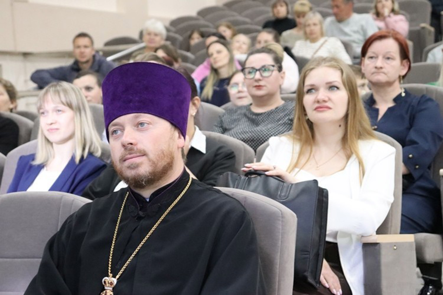 Затем на сцену для открытия праздника пригласили настоятеля прихода храма святителя Николая Чудотворца иерея Георгия Орловского.