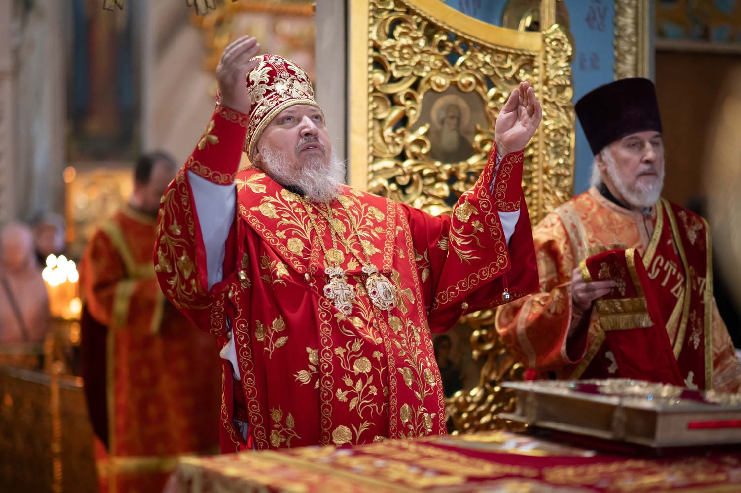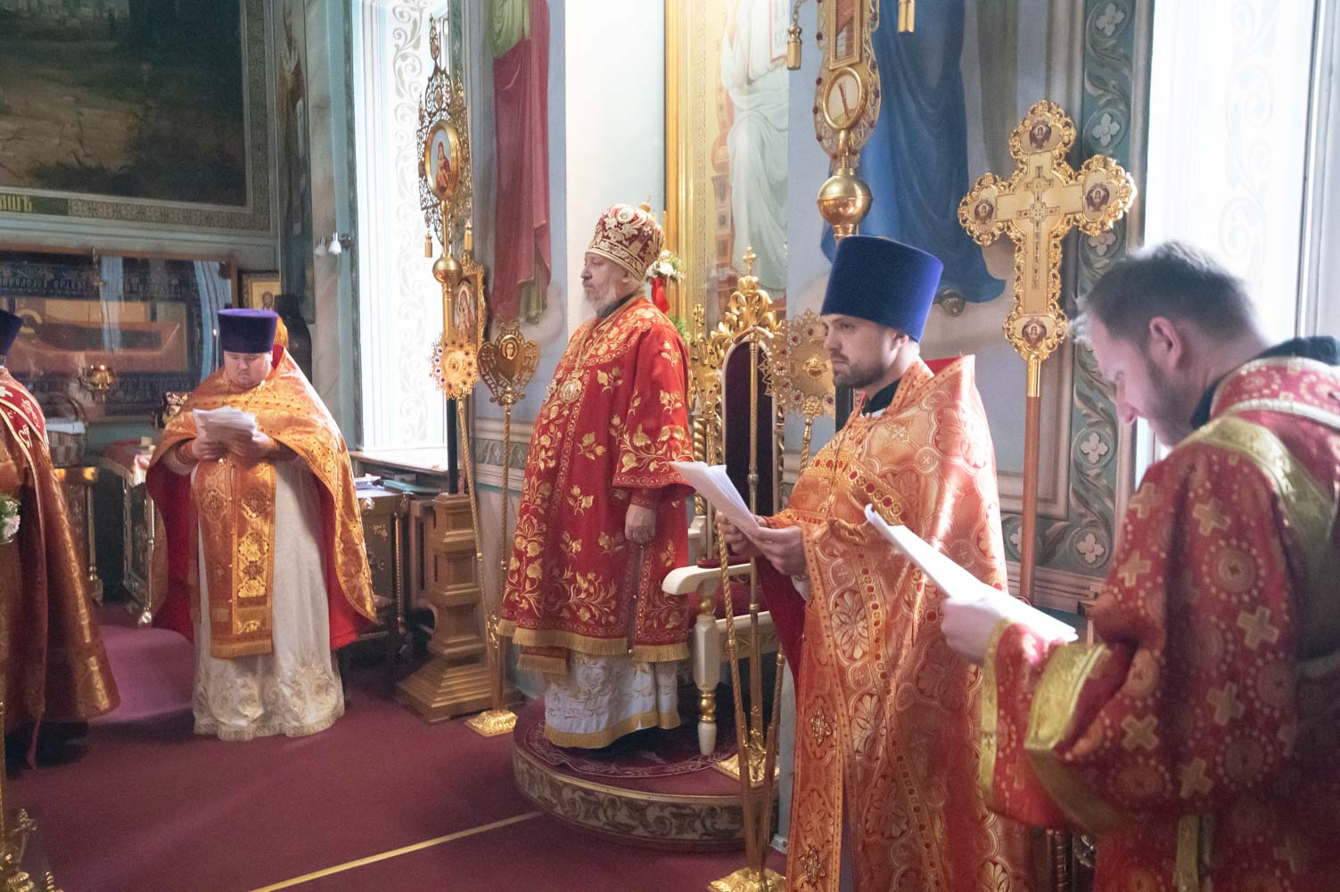 Высокопреосвященнейшему сослужили секретарь Гомельской епархии протоиерей Георгий Алампиев и духовенство собора.