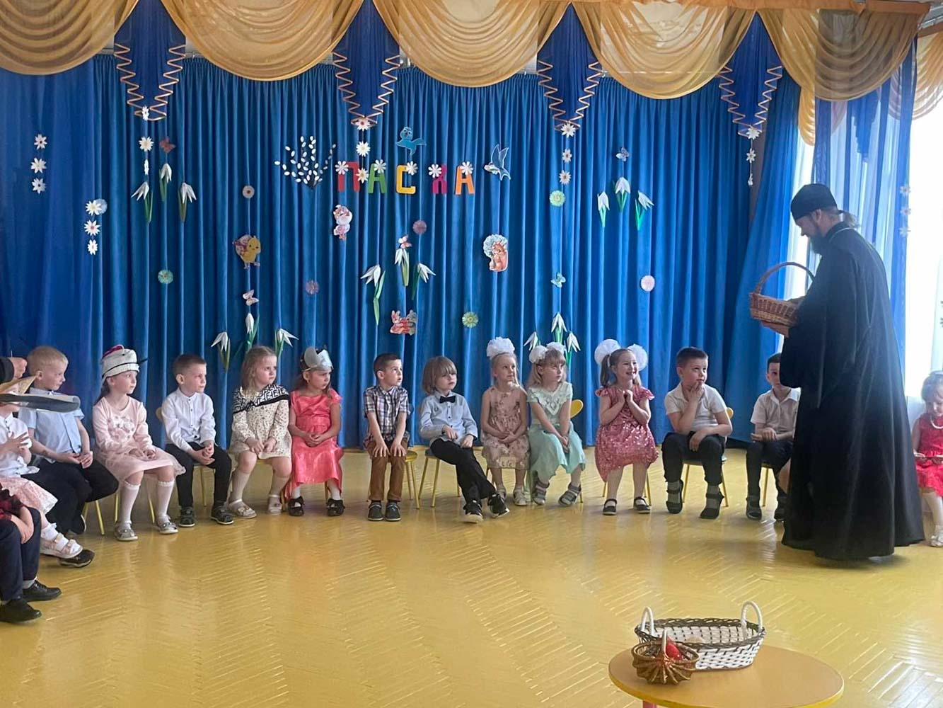 Воспитанники старшей группы ГУО «Детский сад №1 г.п.Лоев», занимающиеся по программе «Основы православной культуры», под руководством музыкального руководителя Пикус Ларисы Николаевны подготовили праздничный концерт «Светлая Пасха» для своих родителей. Почетным гостем праздника стал духовный окормитель учреждения образования, благочинный церквей Лоевского округа иерей Димитрий Чварков.