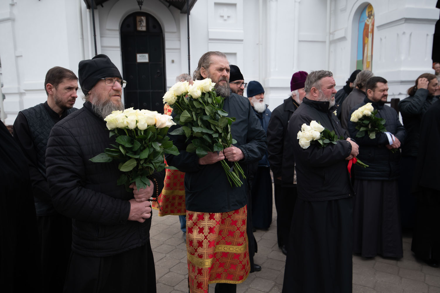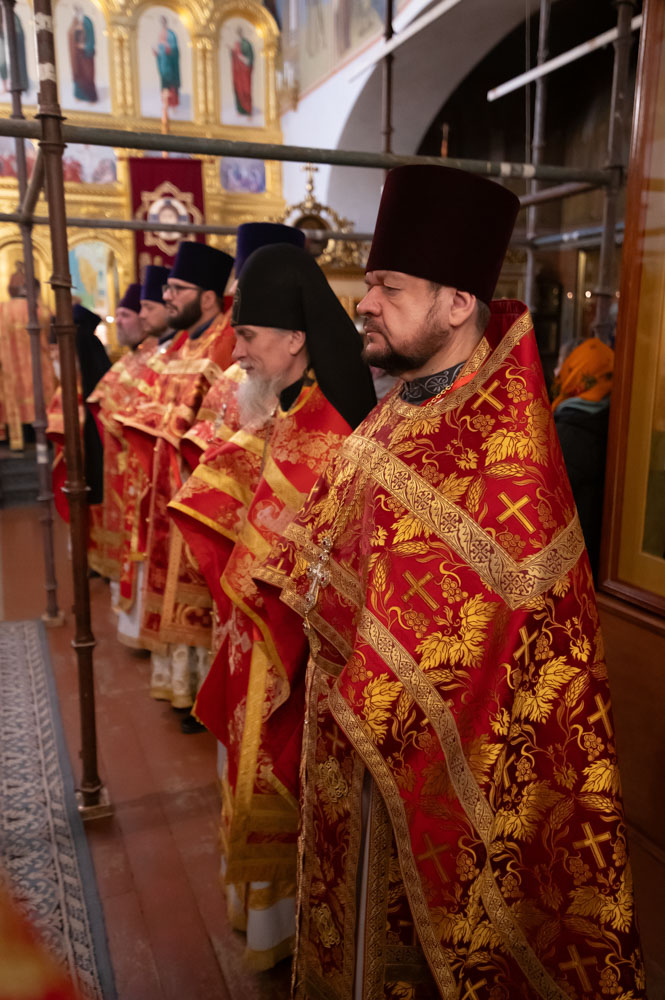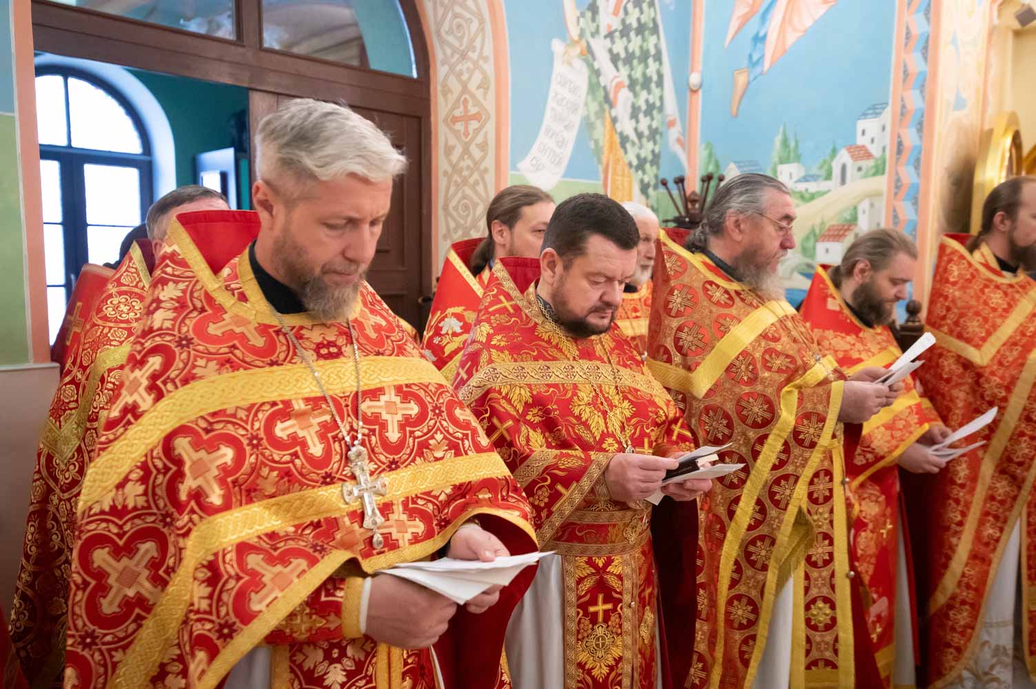 Архипастырям сослужили: секретарь Гомельской епархии протоиерей Георгий Алампиев, благочинный монастырей Гомельской епархии игумен Феодорит (Золотарев), благочинный Лоевского округа иерей Димитрий Чварков, настоятель храма великомученика Георгия Победоносца в г. Гомеле протоиерей Дмитрий Гончаров, председатель отдела по социальному служению и церковной благотворительности протоиерей Владимир Силенко, настоятель прихода храма иконы Божией Матери «Скоропослушница» в г.Гомеле протоиерей Александр Шиленок, председатель Информационного отдела протоиерей Олег Кострома, ректор библейско-богословских курсов протоиерей Вадим Кочан, эконом Гомельской епархии протоиерей Владимир Масалитин, председатель церковно-исторической комиссии протоиерей Александр Лопушанский, братия монастыря в священном сане и духовенство епархии.
