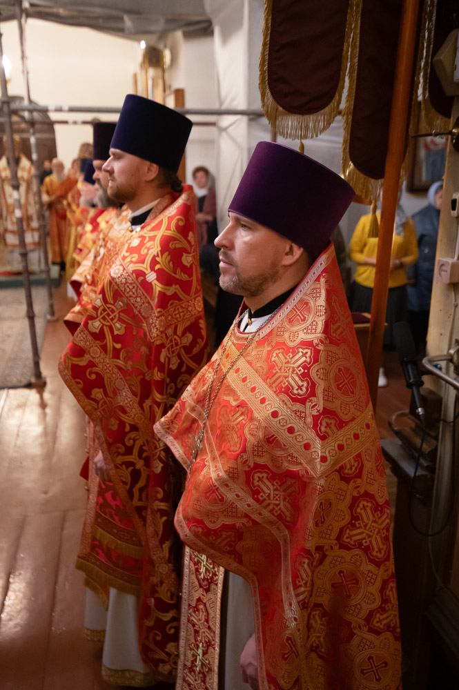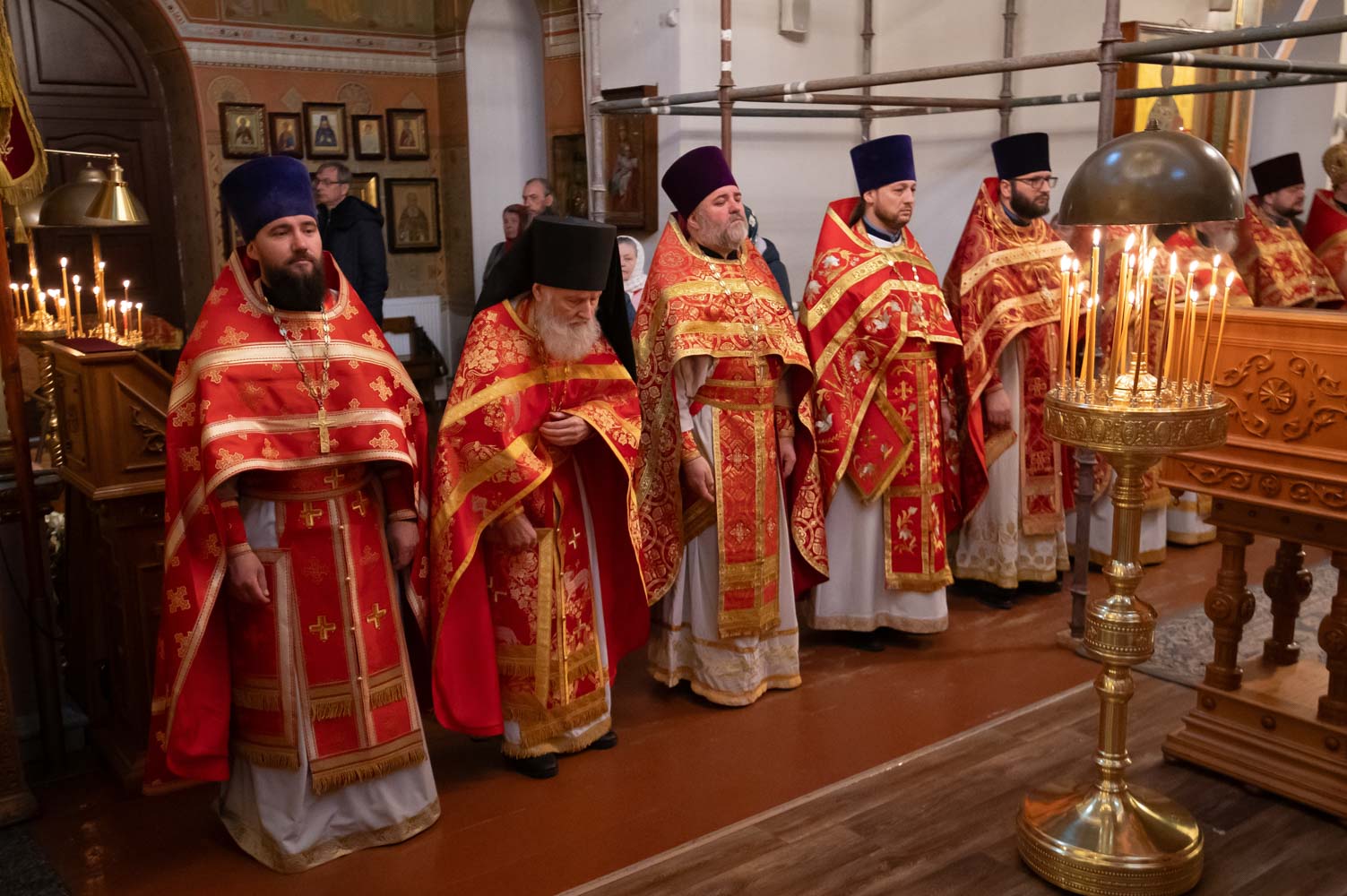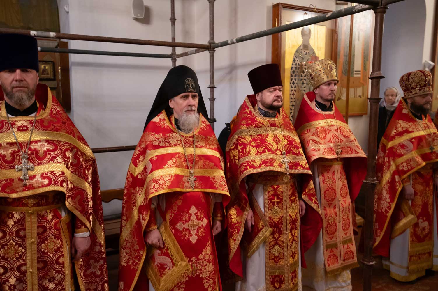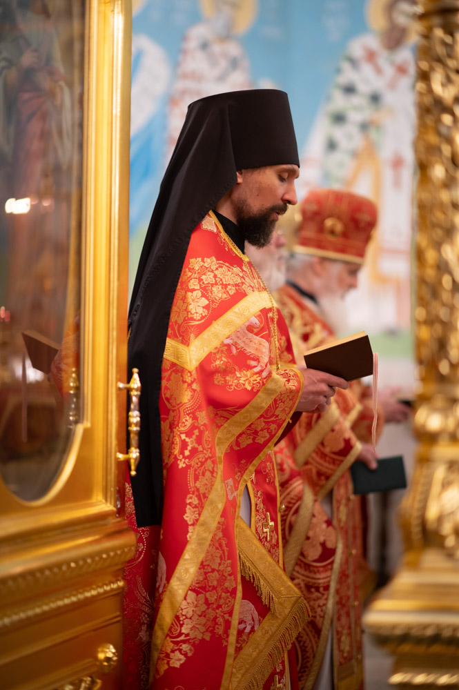 Архипастырям сослужили: секретарь Гомельской епархии протоиерей Георгий Алампиев, благочинный монастырей Гомельской епархии игумен Феодорит (Золотарев), благочинный Лоевского округа иерей Димитрий Чварков, настоятель храма великомученика Георгия Победоносца в г. Гомеле протоиерей Дмитрий Гончаров, председатель отдела по социальному служению и церковной благотворительности протоиерей Владимир Силенко, настоятель прихода храма иконы Божией Матери «Скоропослушница» в г.Гомеле протоиерей Александр Шиленок, председатель Информационного отдела протоиерей Олег Кострома, ректор библейско-богословских курсов протоиерей Вадим Кочан, эконом Гомельской епархии протоиерей Владимир Масалитин, председатель церковно-исторической комиссии протоиерей Александр Лопушанский, братия монастыря в священном сане и духовенство епархии.