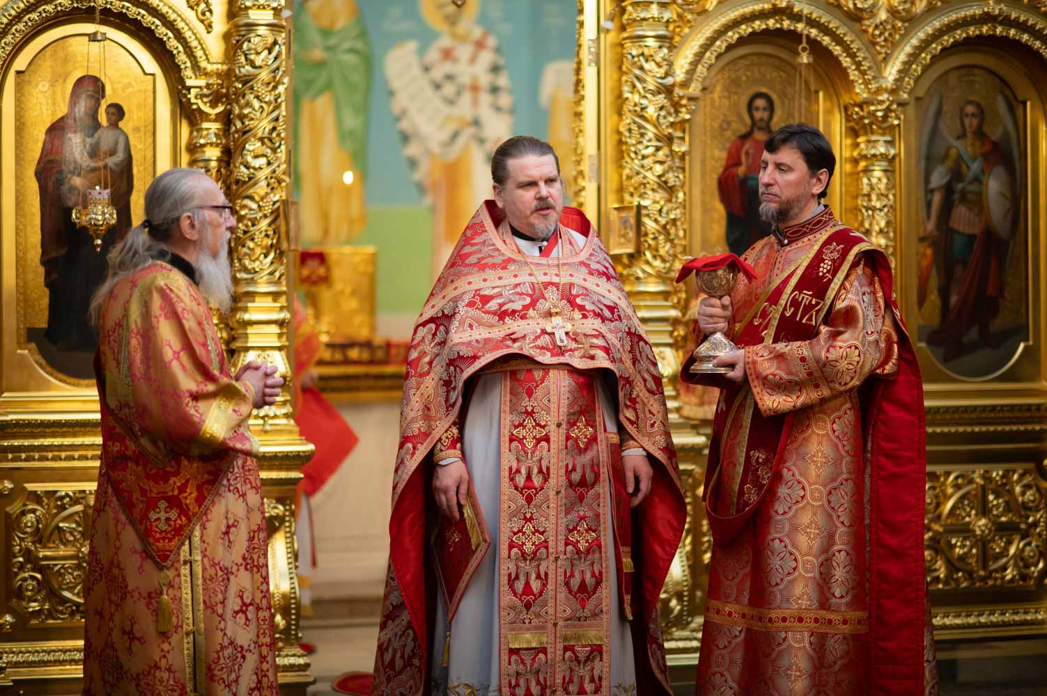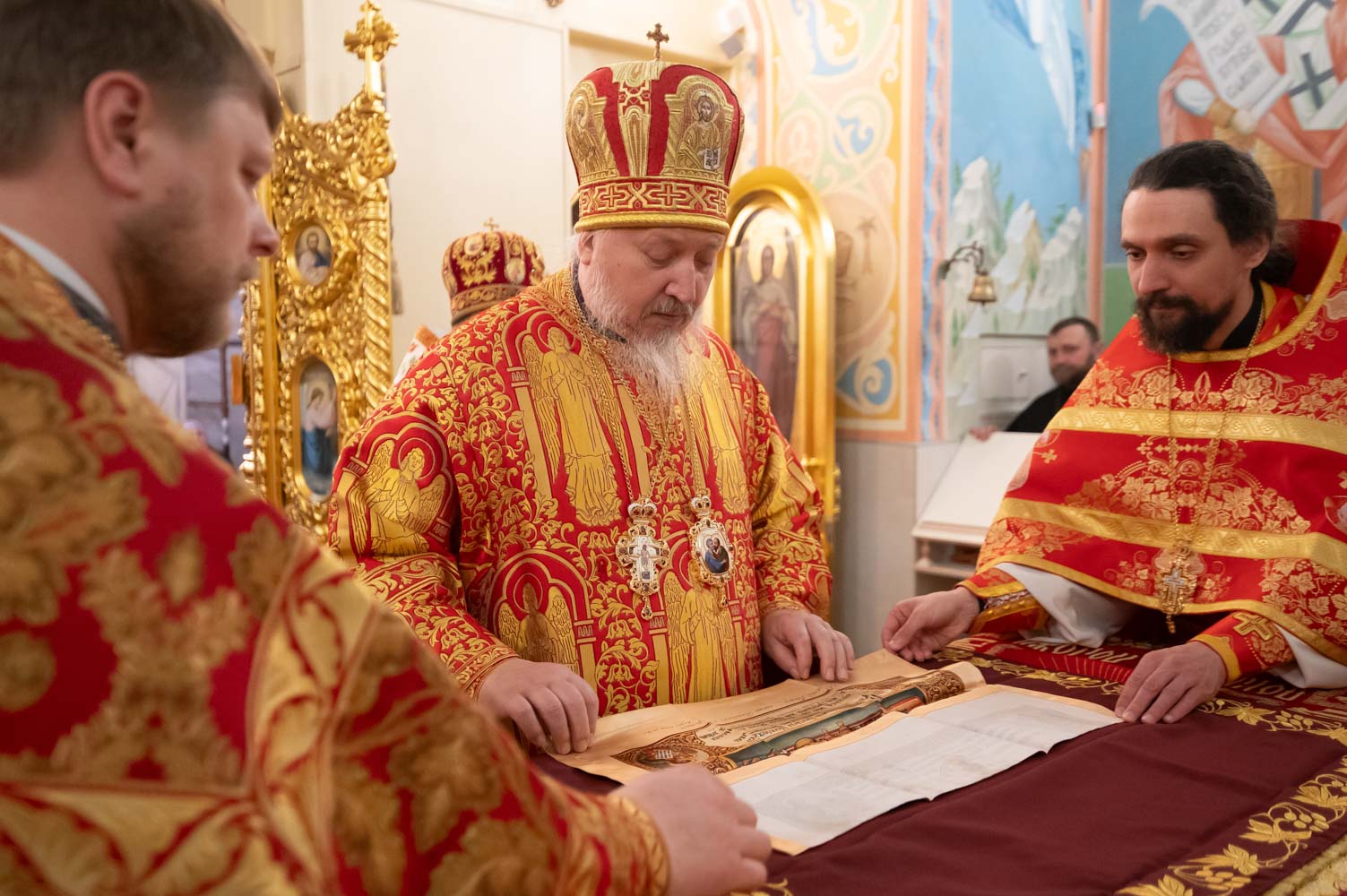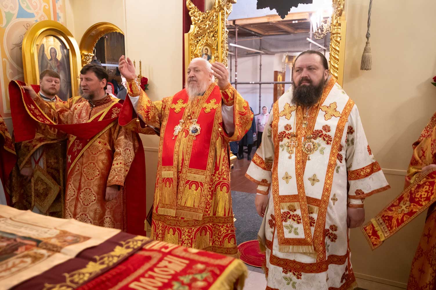 Божественную литургию совершили Высокопреосвященнейший Стефан, архиепископ Гомельский и Жлобинский, и Преосвященнейший Амвросий, епископ Борисовский и Марьиногорский.