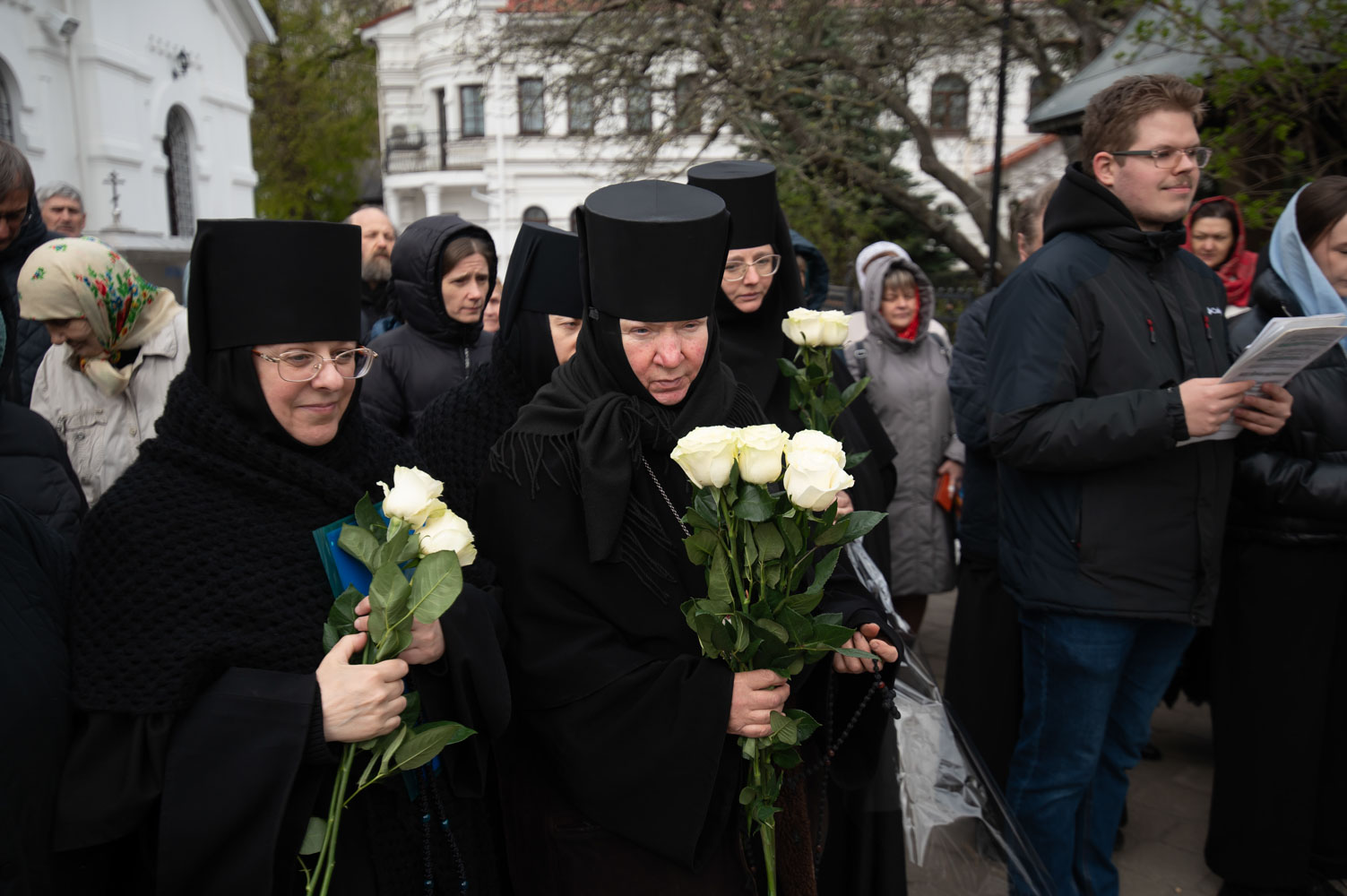 За богослужением молились игуменьи монастырей Гомельской епархии: Вера (Афонькина) с сестрами Тихвинского женского монастыря г.Гомеля и Архелая (Новикова) с сестрами Иоанно-Кормянского женского монастыря