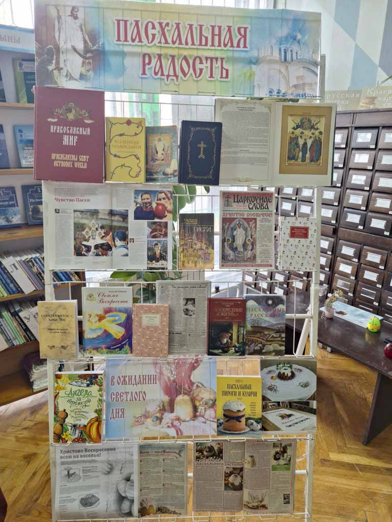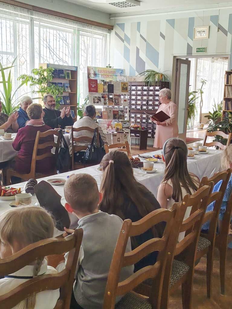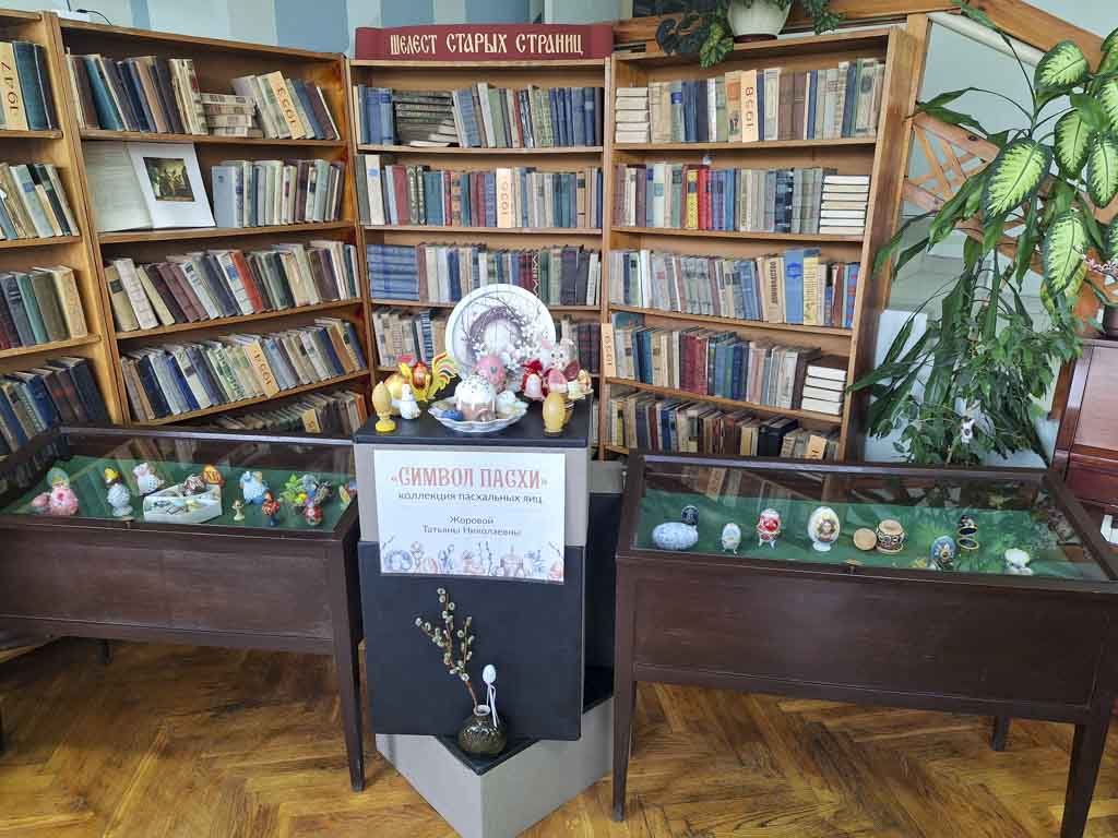 В завершение была представлена тематическая экспозиция пасхальных яиц. Коллекцию гостям показала Татьяна Николаевна Жорова, давний друг библиотеки. Экспозиция стала частью разговора о пасхальной традиции, в которой церковный символ, народная память и семейная культура сохраняют связь с праздником Воскресения Христова.