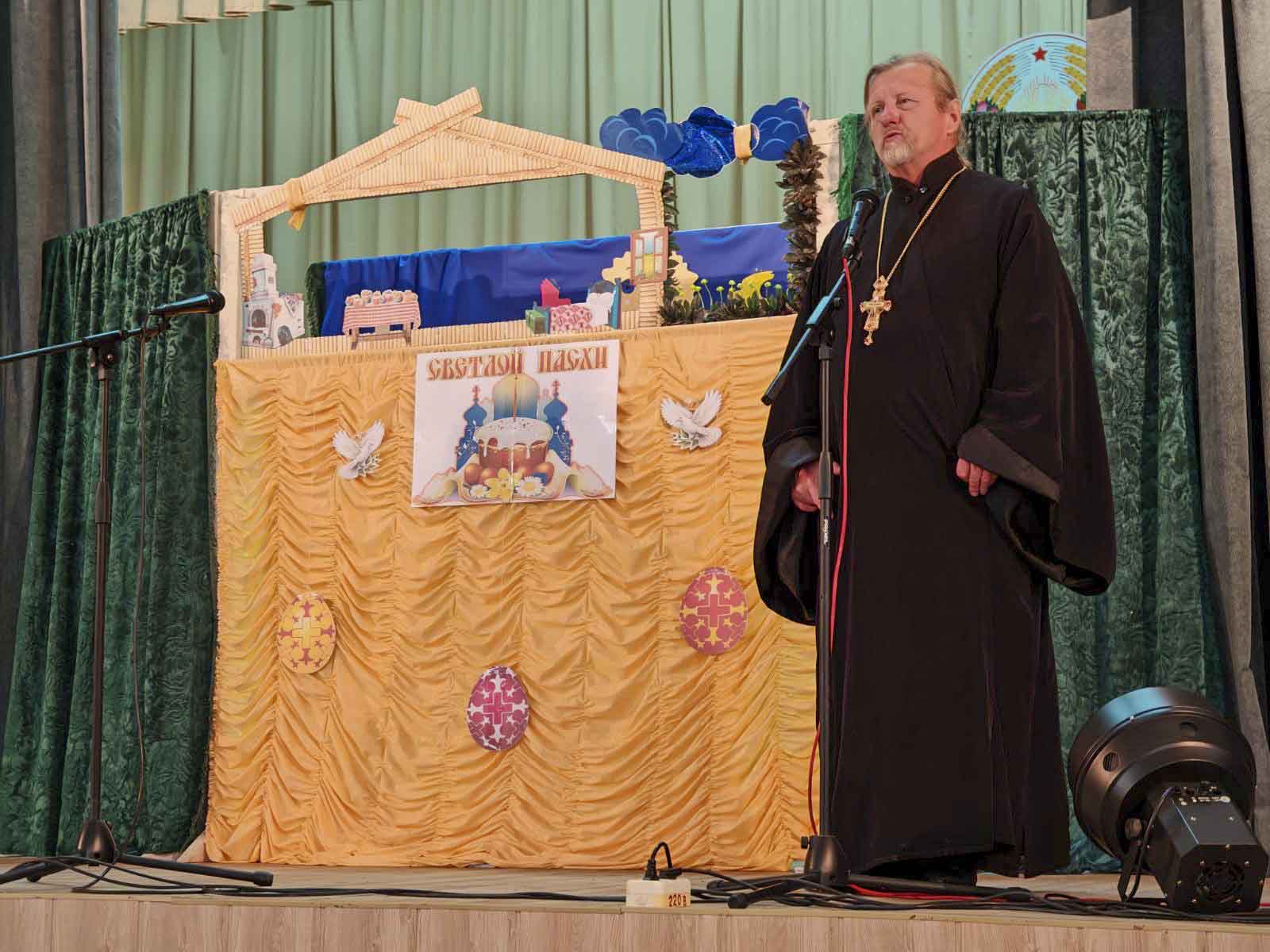 Почетным гостем праздника стал настоятель прихода храма святых апостолов Петра и Павла в г. Светлогорске протоиерей Владимир Семёнов. Перед началом представления священник поздравил всех с Пасхой Господней, напомнив ребятам, что главный смысл этого праздника – торжество жизни и добра.