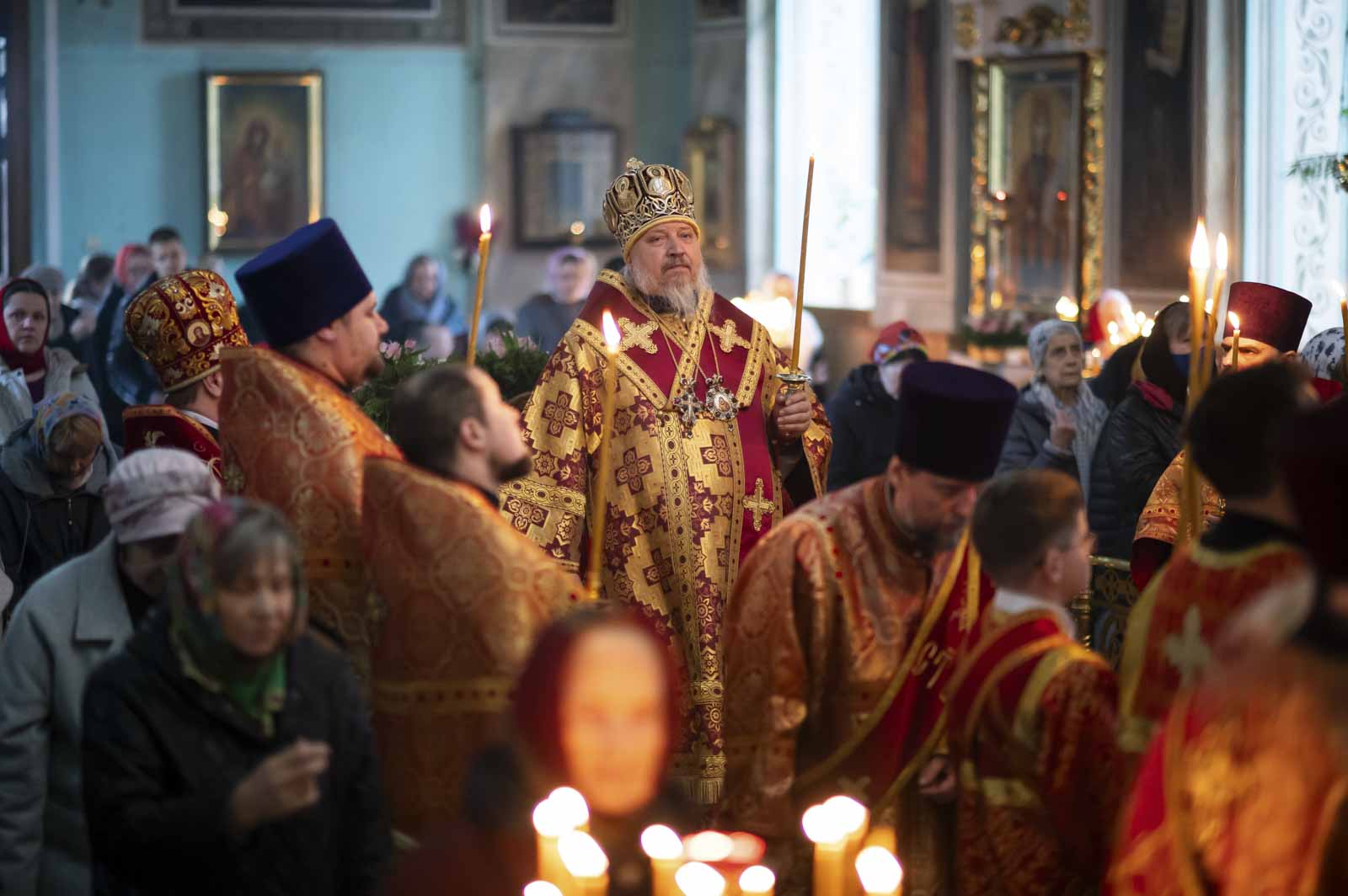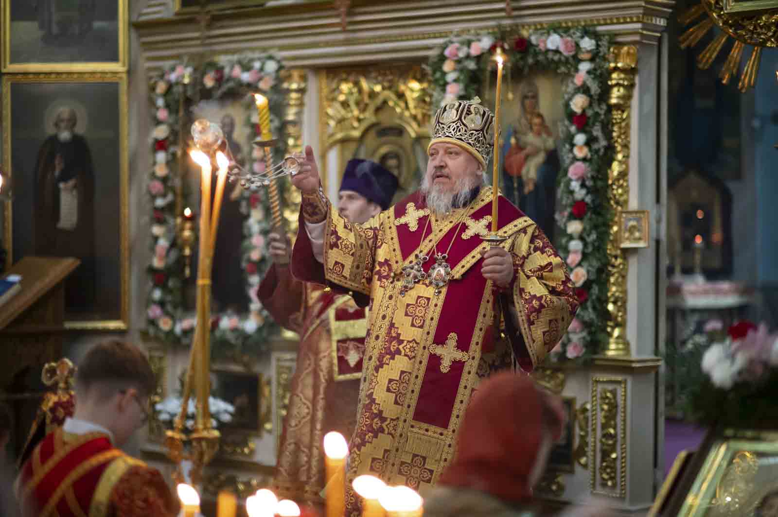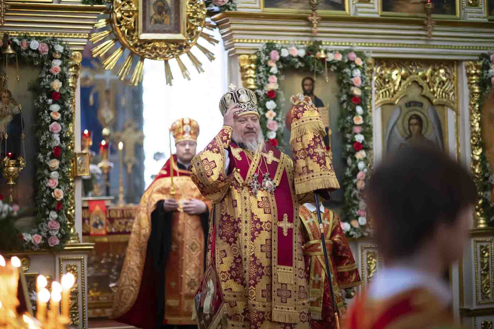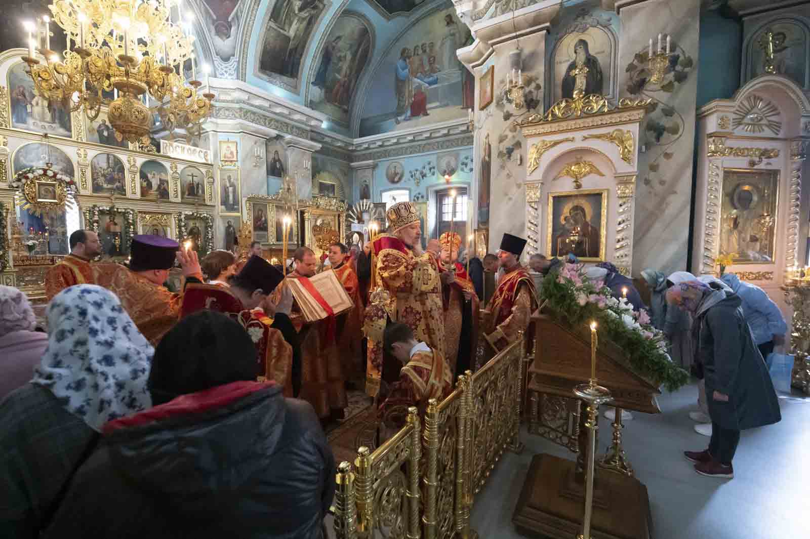 Всенощное бдение в канун Недели 3-й по Пасхе, святых Жен-Мироносиц, 25 апреля 2026г., Высокопреосвященнейший Стефан, архиепископ Гомельский и Жлобинский, совершил в Петро-Павловском кафедральном соборе г.Гомеля.