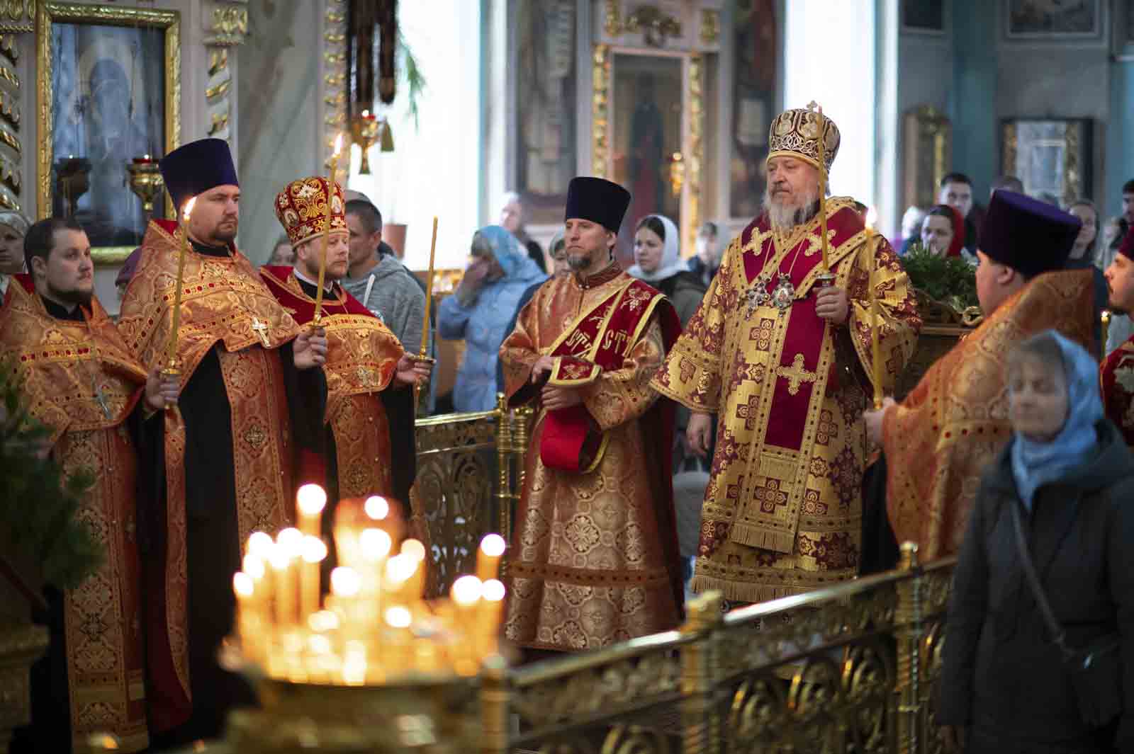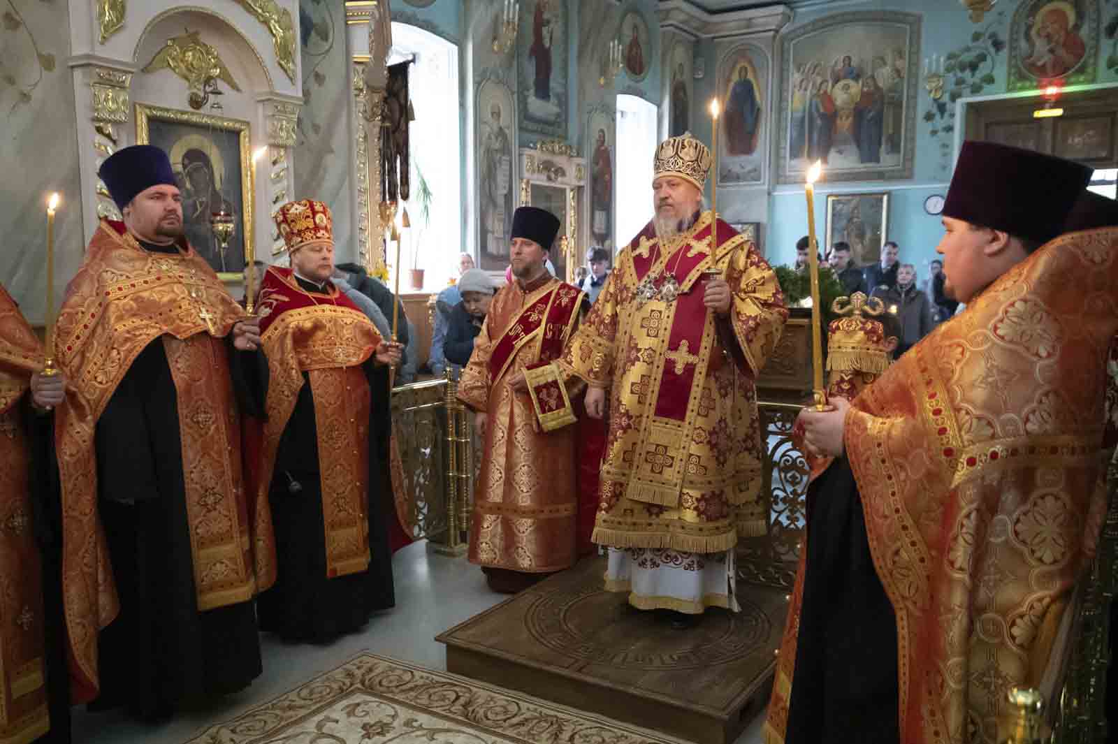 Высокопреосвященнейшему сослужили: секретарь Гомельской епархии протоиерей Георгий Алампиев и духовенство собора.