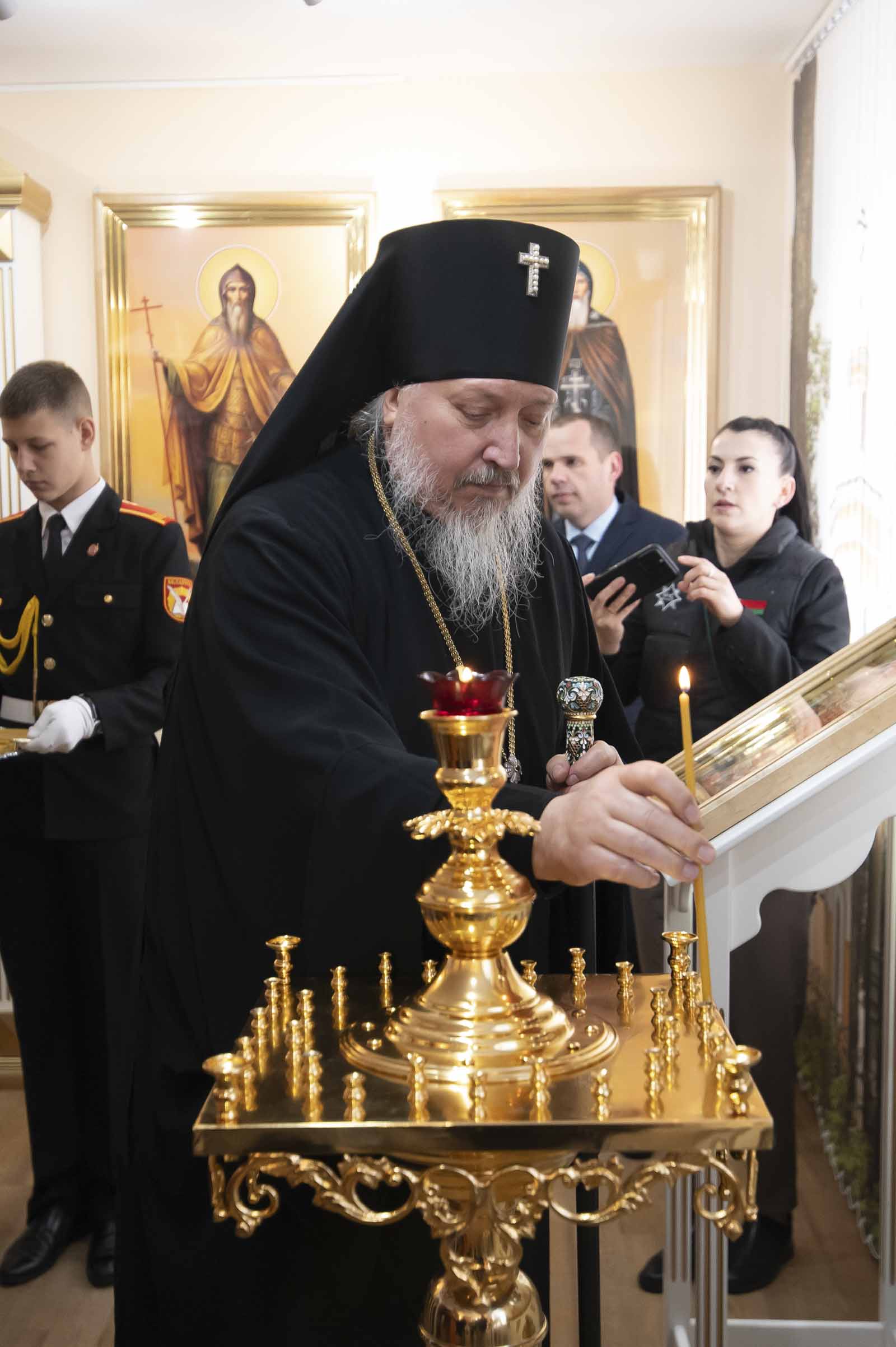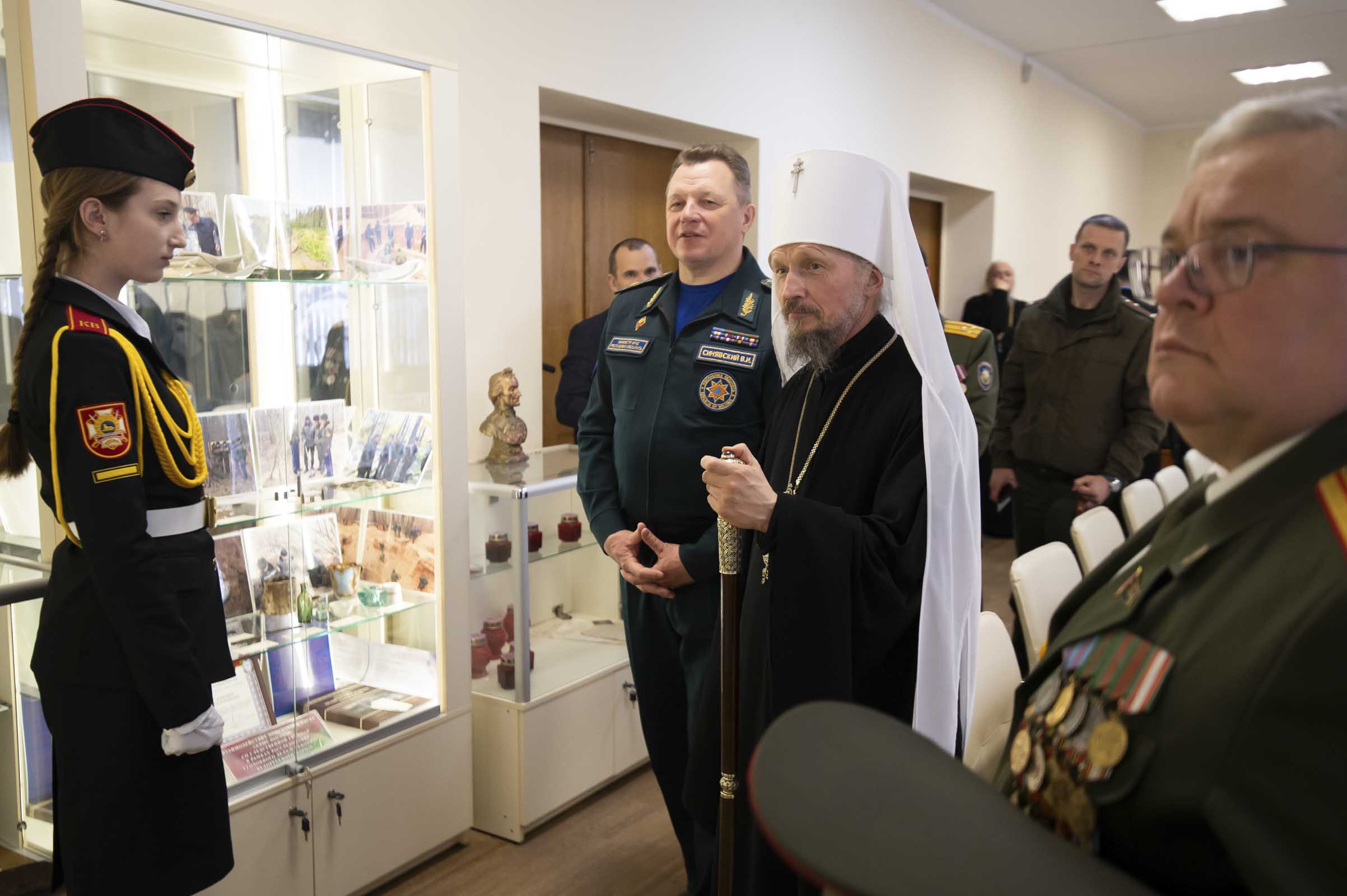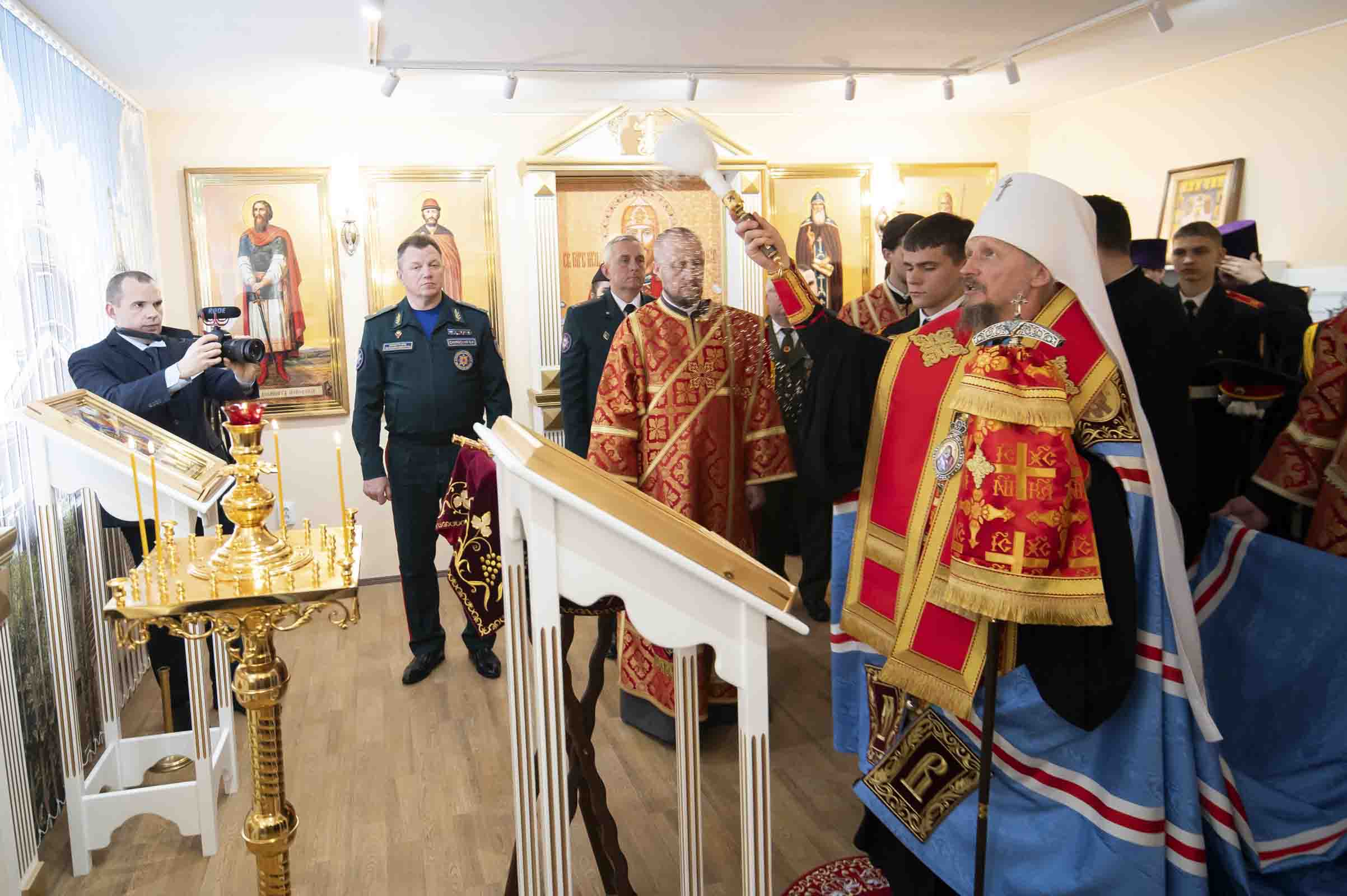 Митрополит Вениамин совершил чин освящения молитвенной комнаты в честь Георгия Победоносца. Создание места для молитвы в стенах учебного заведения, глубоко символично в дни памяти о Чернобыльской трагедии. Обращаясь к присутствующим, Высокопреосвященнейший владыка отметил, что профессиональное мастерство воина и спасателя должно опираться на твердый нравственный фундамент и осознание жертвенности избранного пути.