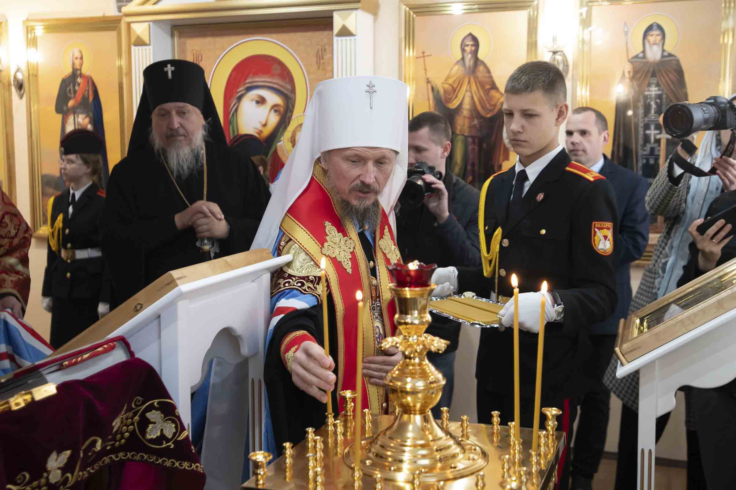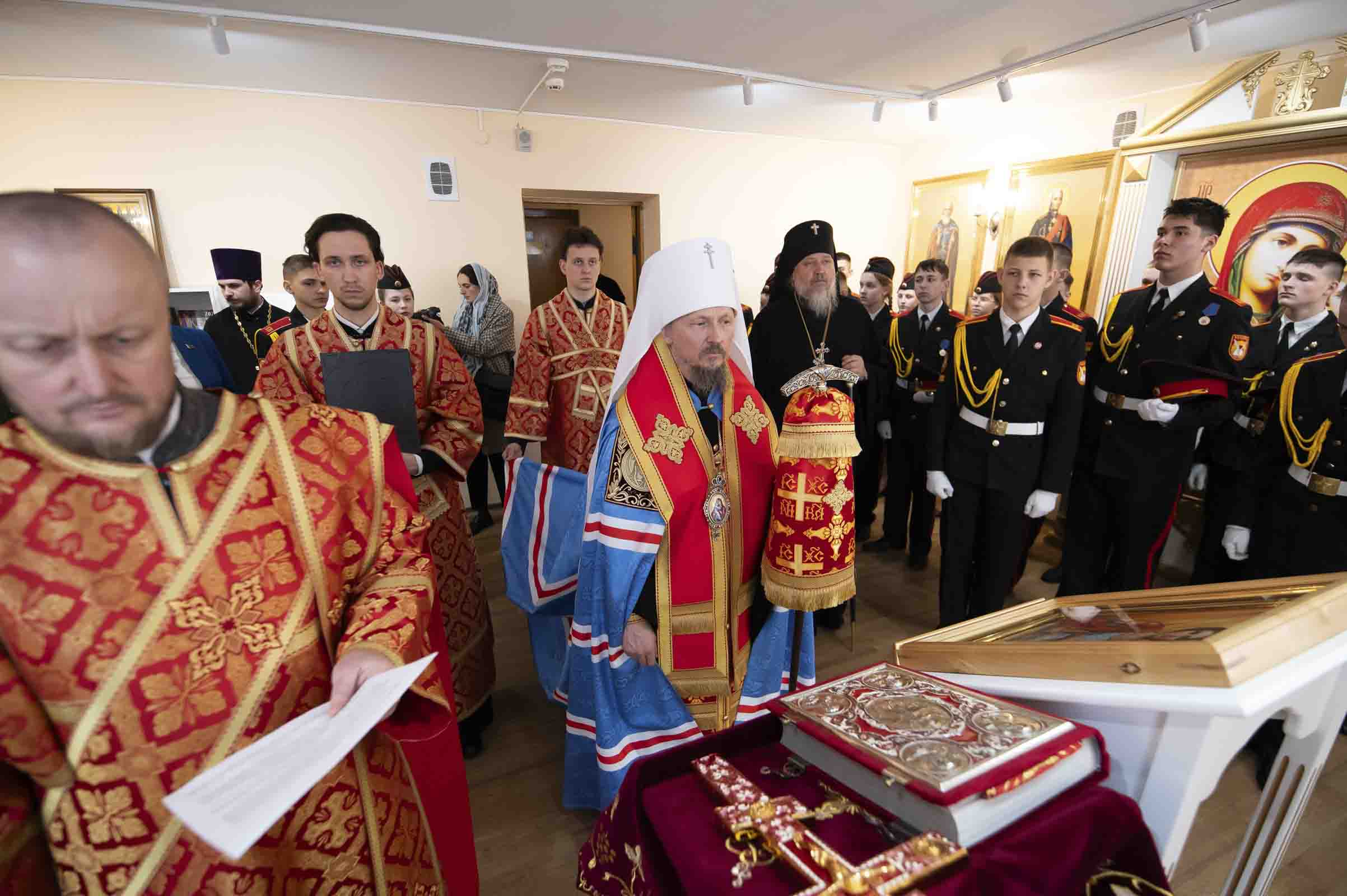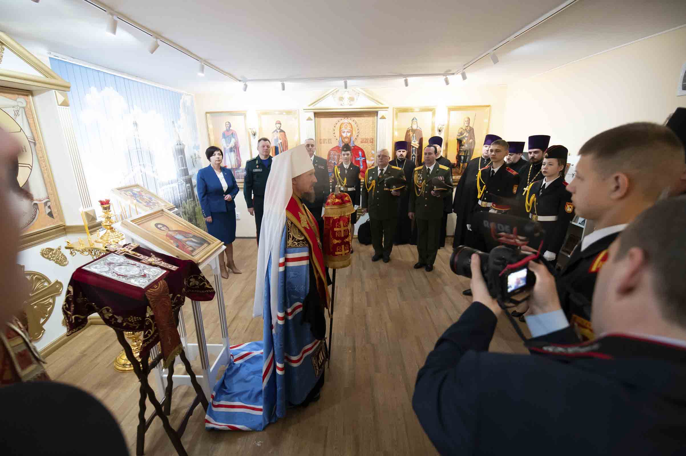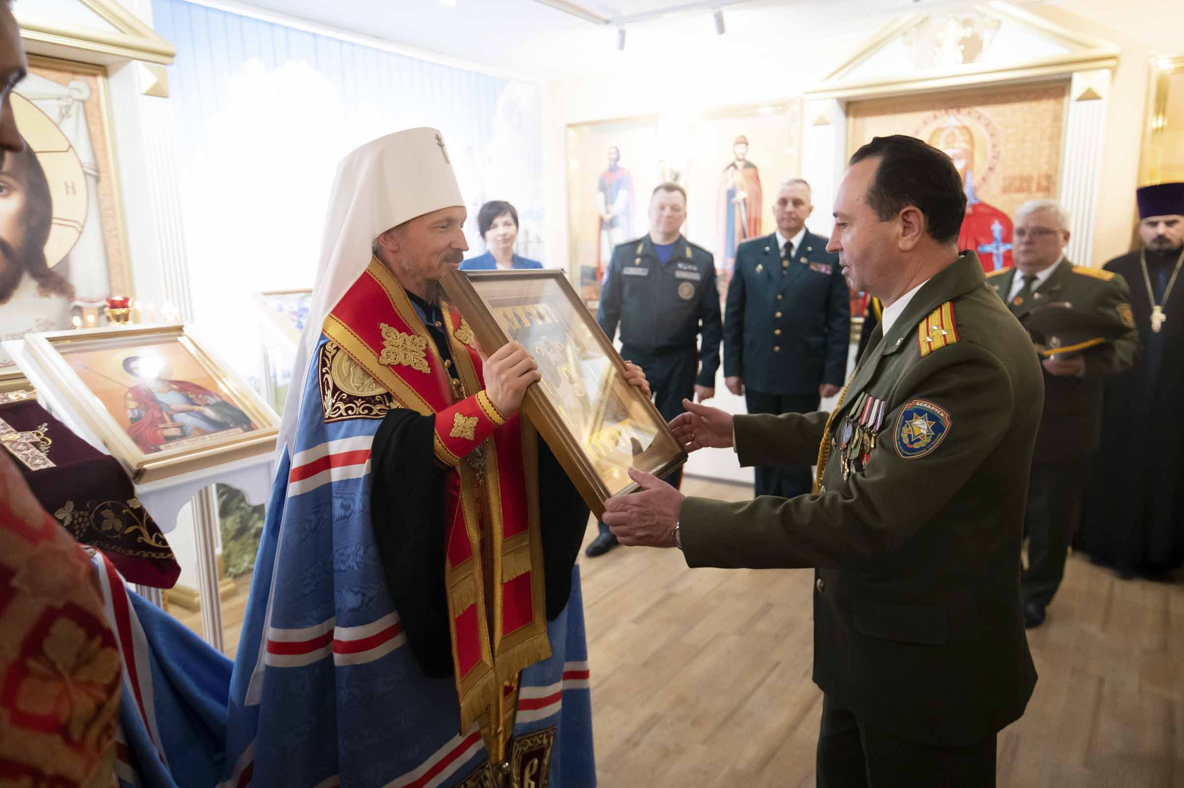 Митрополит Вениамин совершил чин освящения молитвенной комнаты в честь Георгия Победоносца. Создание места для молитвы в стенах учебного заведения, глубоко символично в дни памяти о Чернобыльской трагедии. Обращаясь к присутствующим, Высокопреосвященнейший владыка отметил, что профессиональное мастерство воина и спасателя должно опираться на твердый нравственный фундамент и осознание жертвенности избранного пути.
