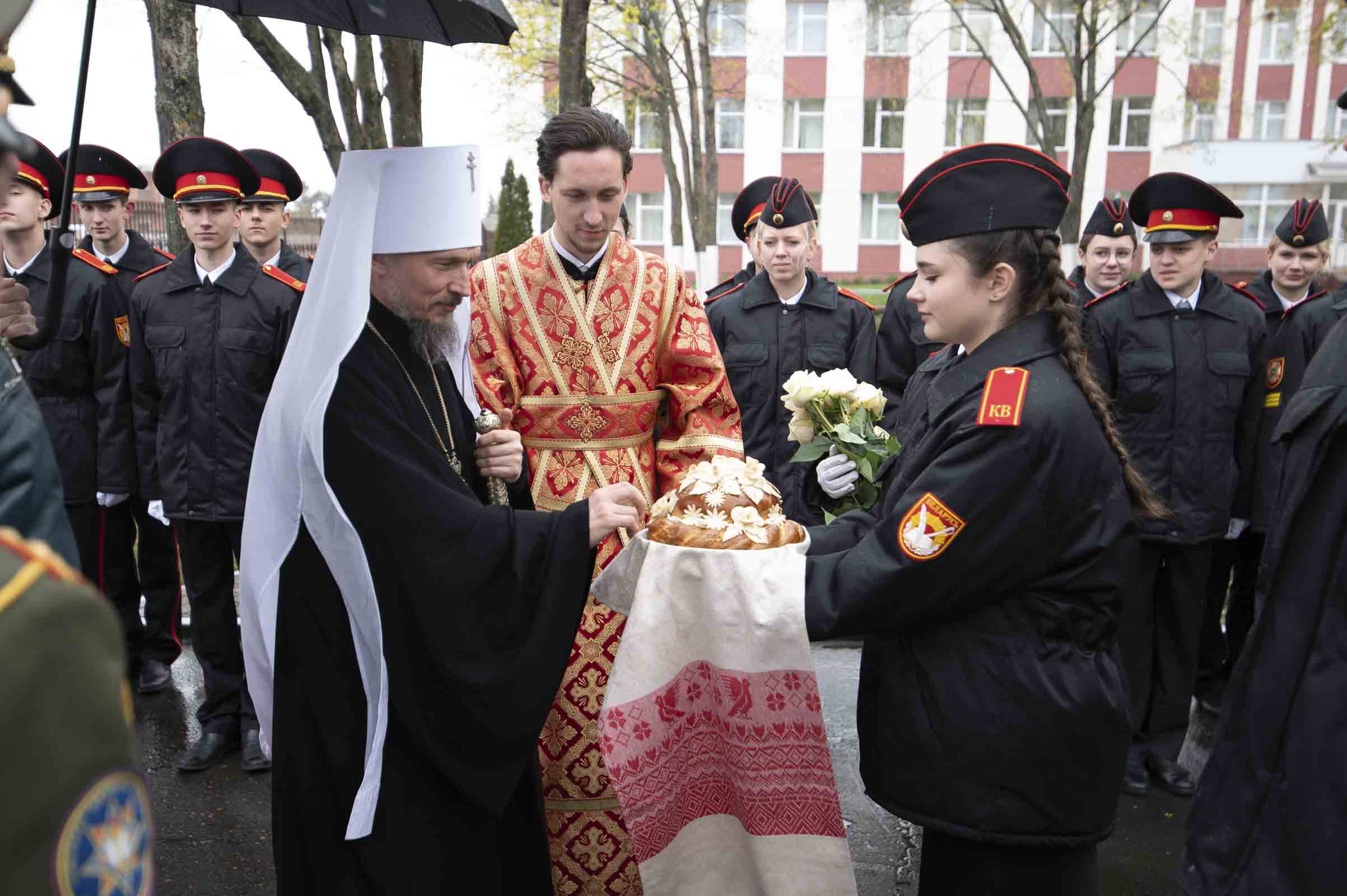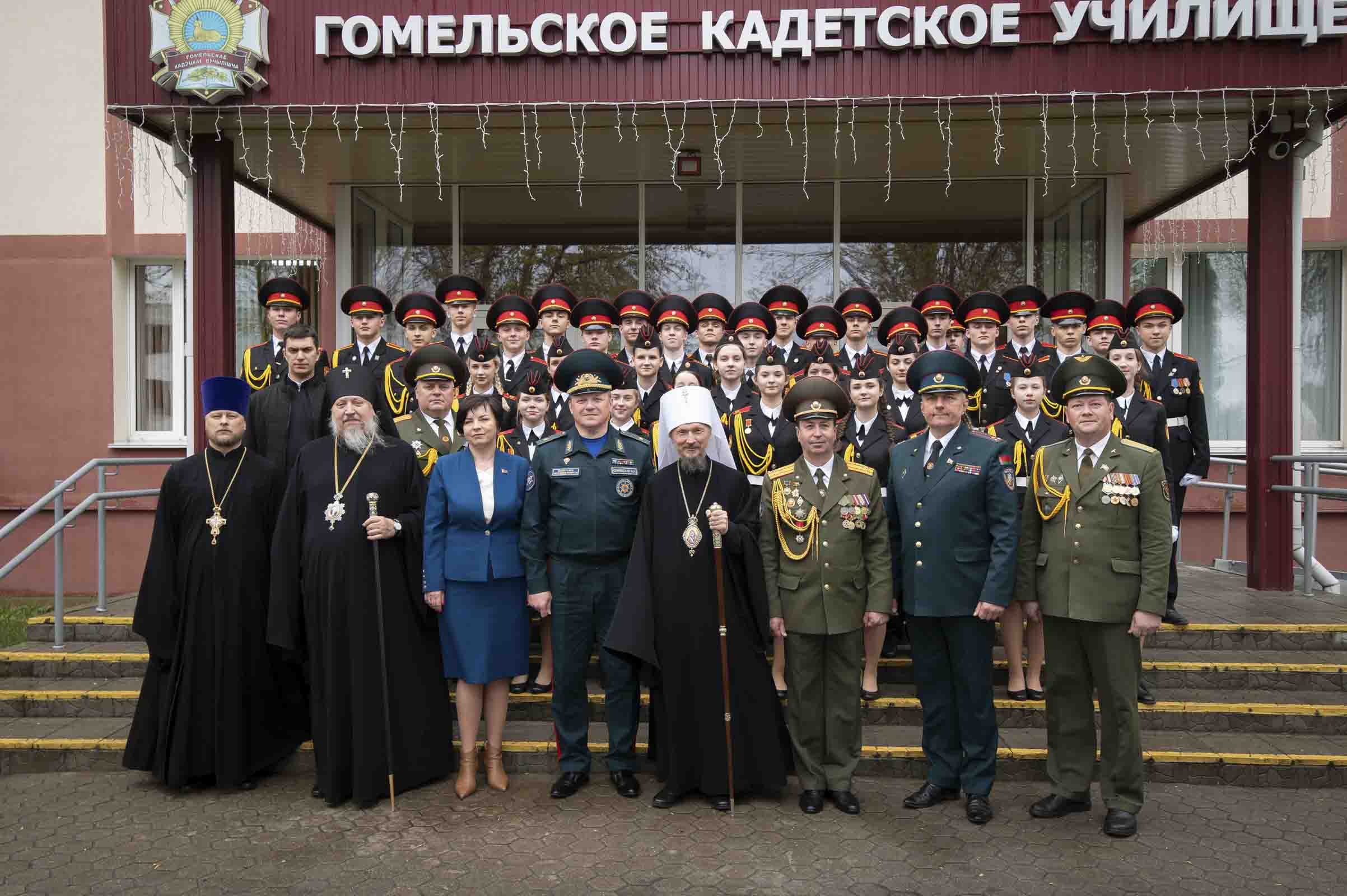 В рамках мероприятий, приуроченных к 40-летней годовщине аварии на Чернобыльской АЭС, Гомельское кадетское училище посетили почетные гости: Митрополит Минский и Заславский Вениамин, Патриарший Экзарх всея Беларуси, и архиепископ Гомельский и Жлобинский Стефан, Министр по чрезвычайным ситуациям Республики Беларусь генерал-майор внутренней службы Вадим Иванович Синявский и представители органов государственной власти.
