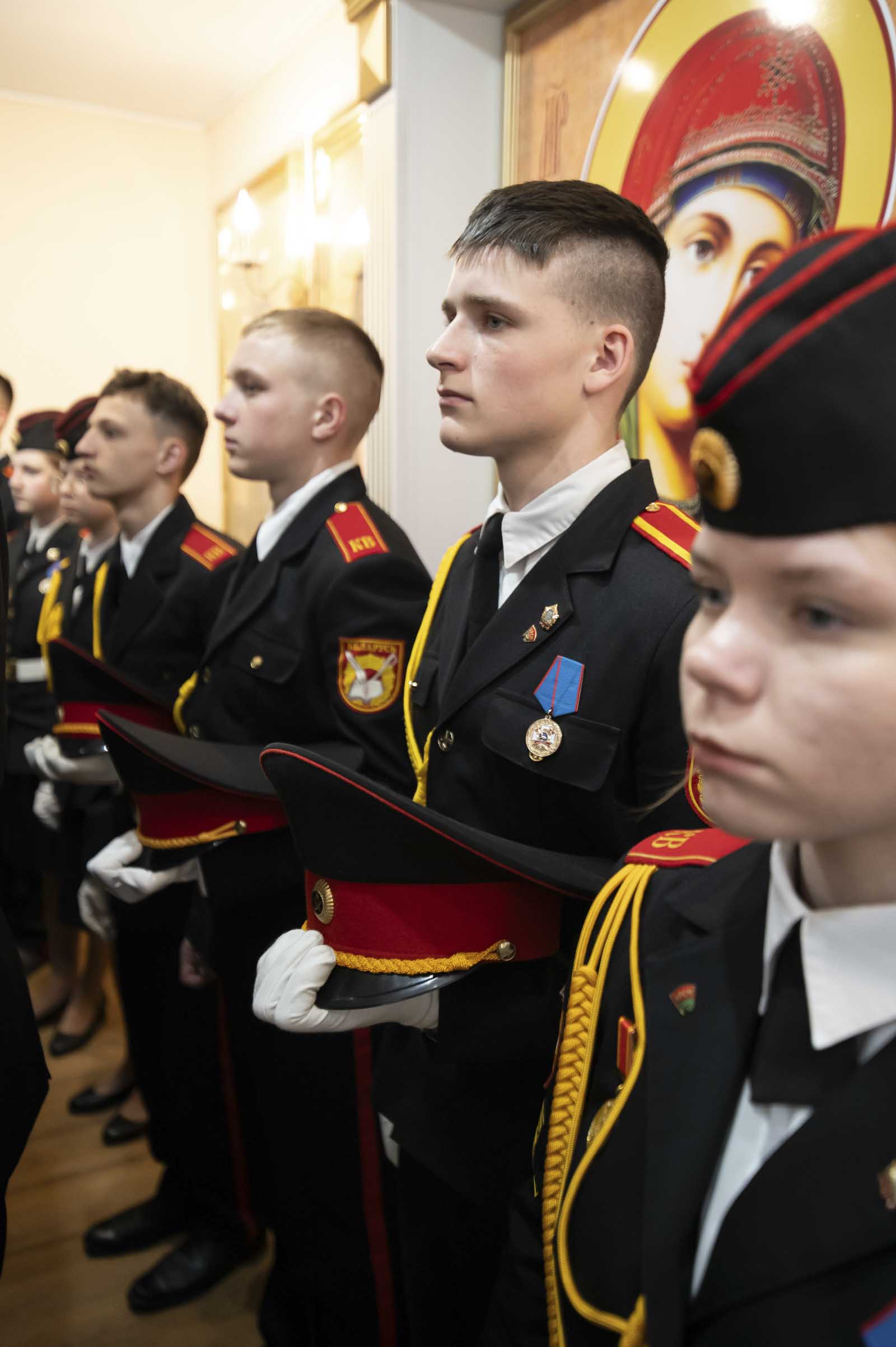 Директор училища полковник в запасе Дмитрий Николаевич Григоренко ознакомил гостей с учебным процессом и бытом кадет. По завершении чина освящения Патриарший Экзарх и гости оставили записи в Книге почетных гостей.
