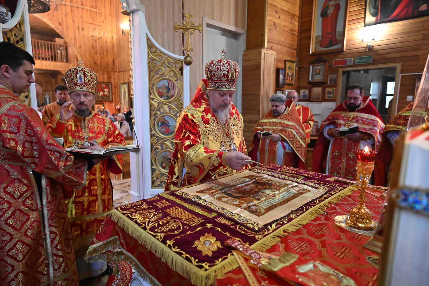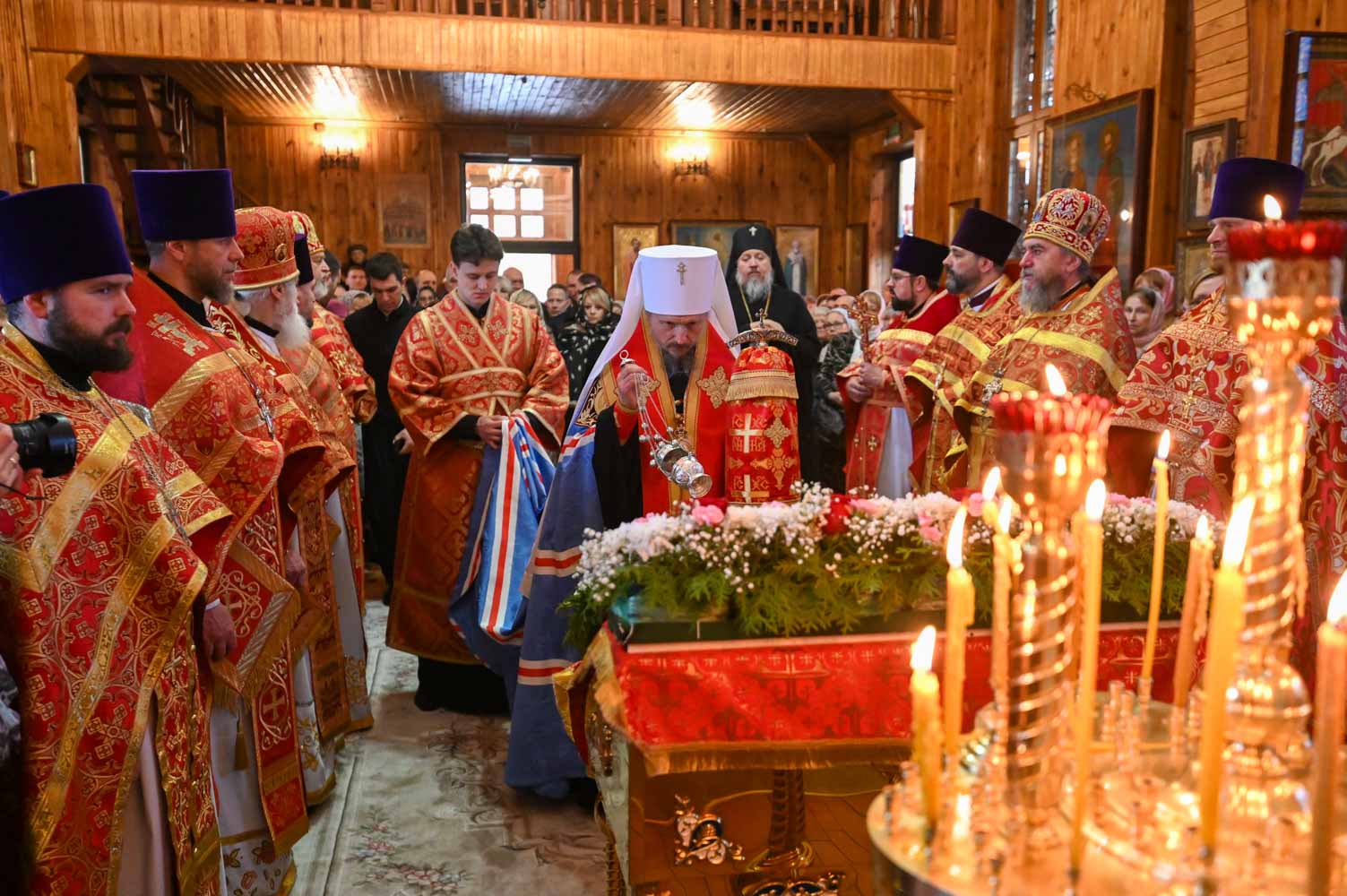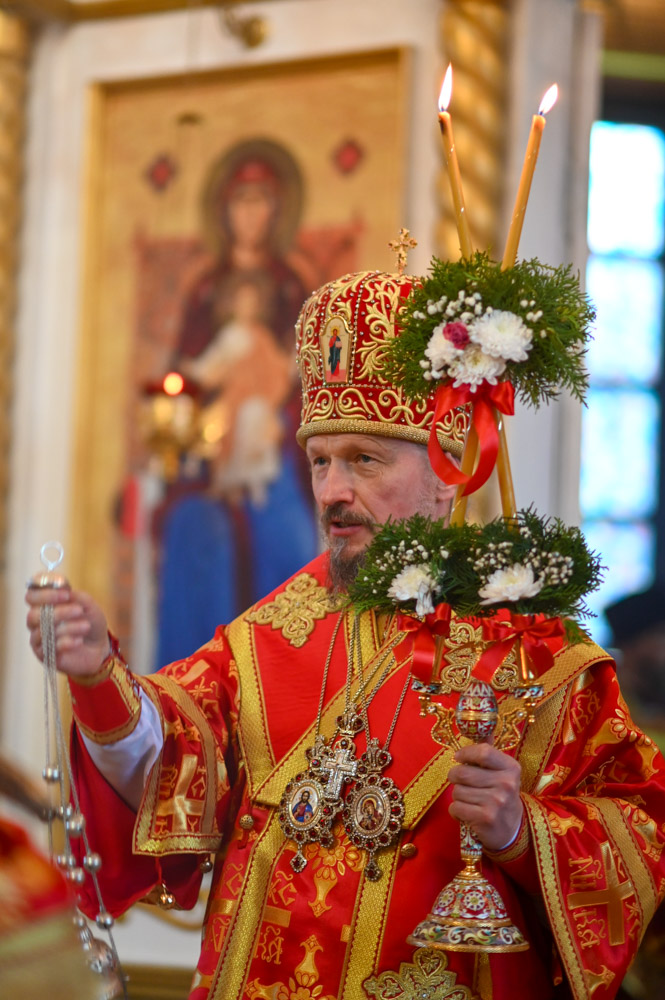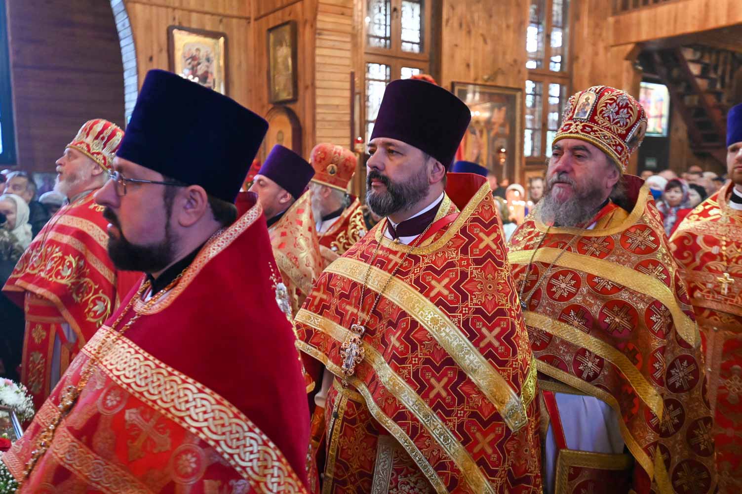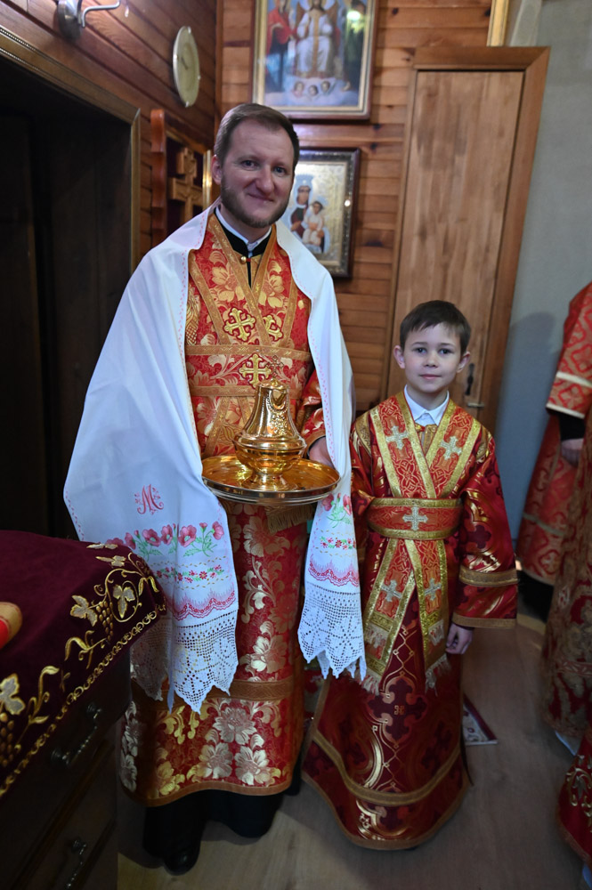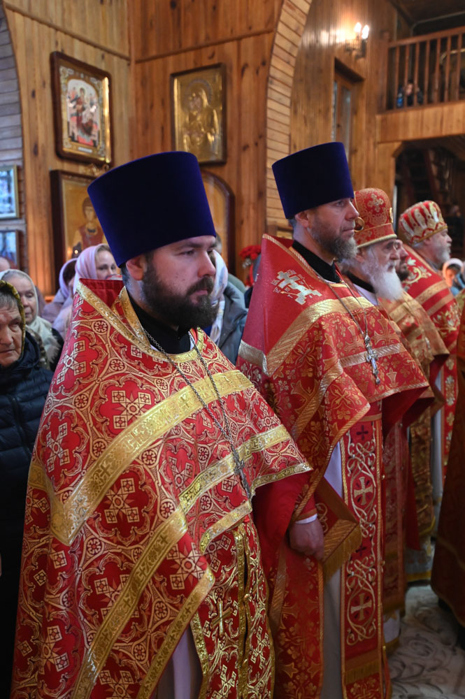 Архипастырям сослужили: секретарь Гомельской епархии протоиерей Георгий Алампиев; благочинный Гомельского городского округа, настоятель прихода протоиерей Игорь Ольшанов; благочинный Жлобинского округа протоиерей Алексей Смотрицкий; благочинный Гомельского районного округа протоиерей Артемий Кривицкий; благочинный Светлогорского округа протоиерей Александр Кисель; председатель отдела по социальному служению и церковной благотворительности Гомельской епархии, настоятель прихода храма святого благоверного князя Александра Невского в г. Гомеле протоиерей Владимир Силенко; настоятель прихода храма святого великомученика Георгия Победоносца в г. Гомеле протоиерей Дмитрий Гончаров; эконом Гомельской епархии протоиерей Владимир Масалитин; настоятель прихода храма святого праведного Иоанна Кормянского в г. Гомеле иерей Дмитрий Жданов, а также духовенство епархии.