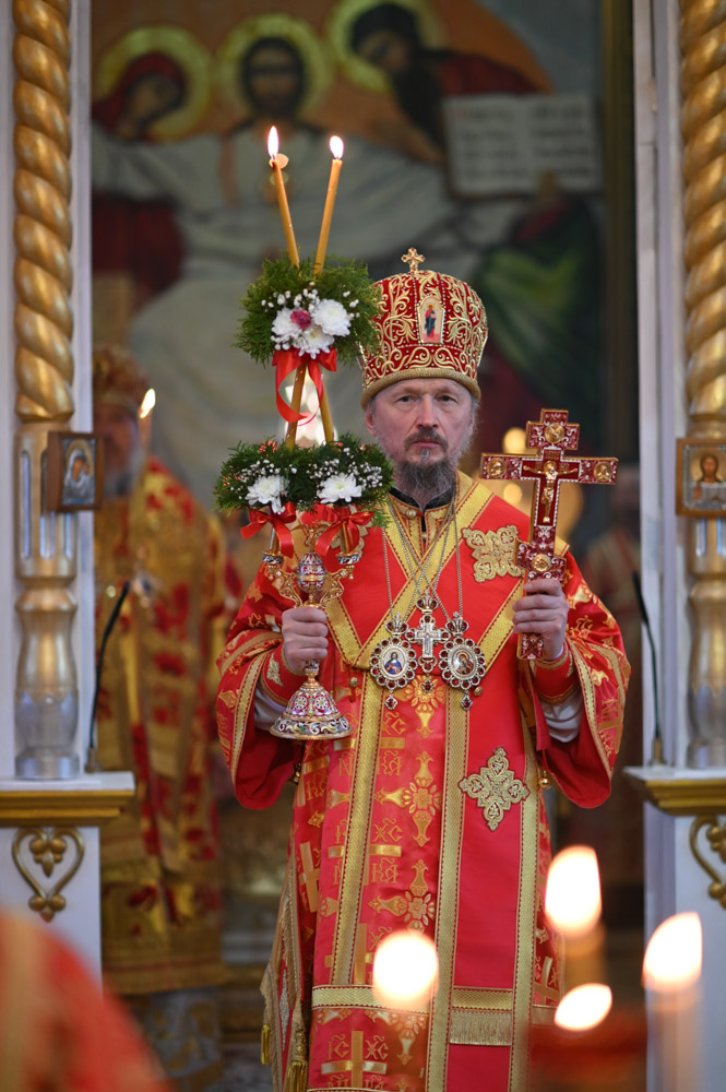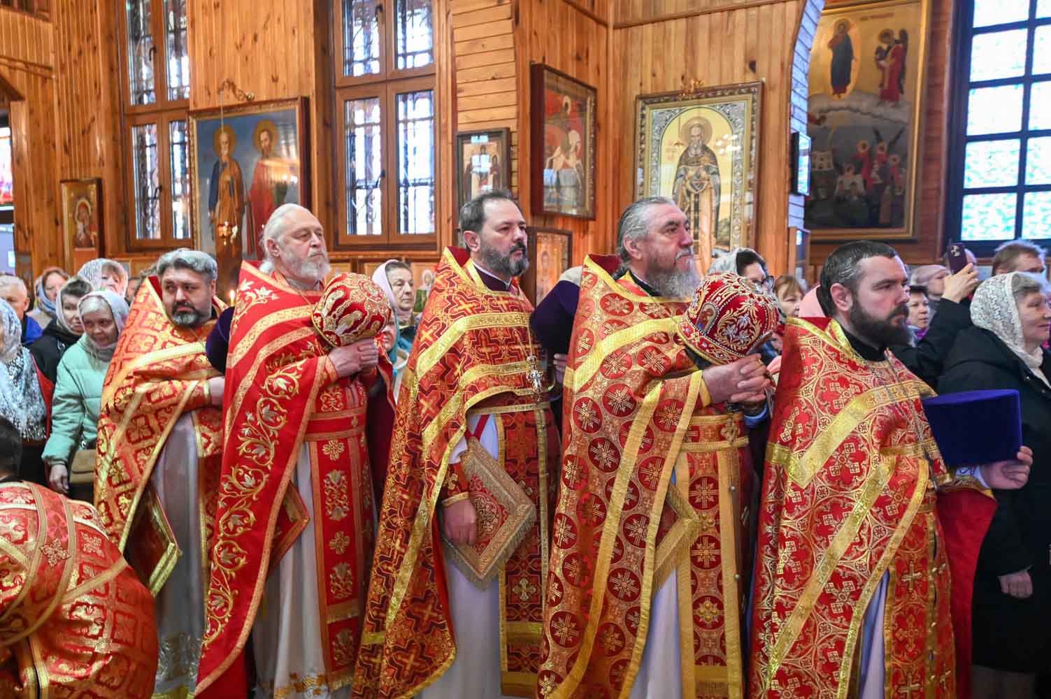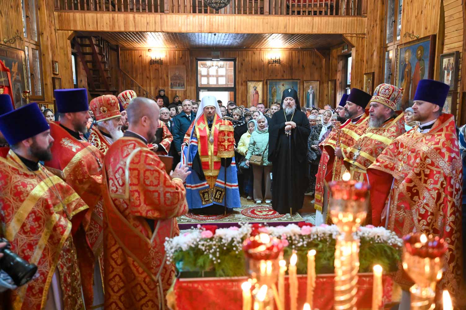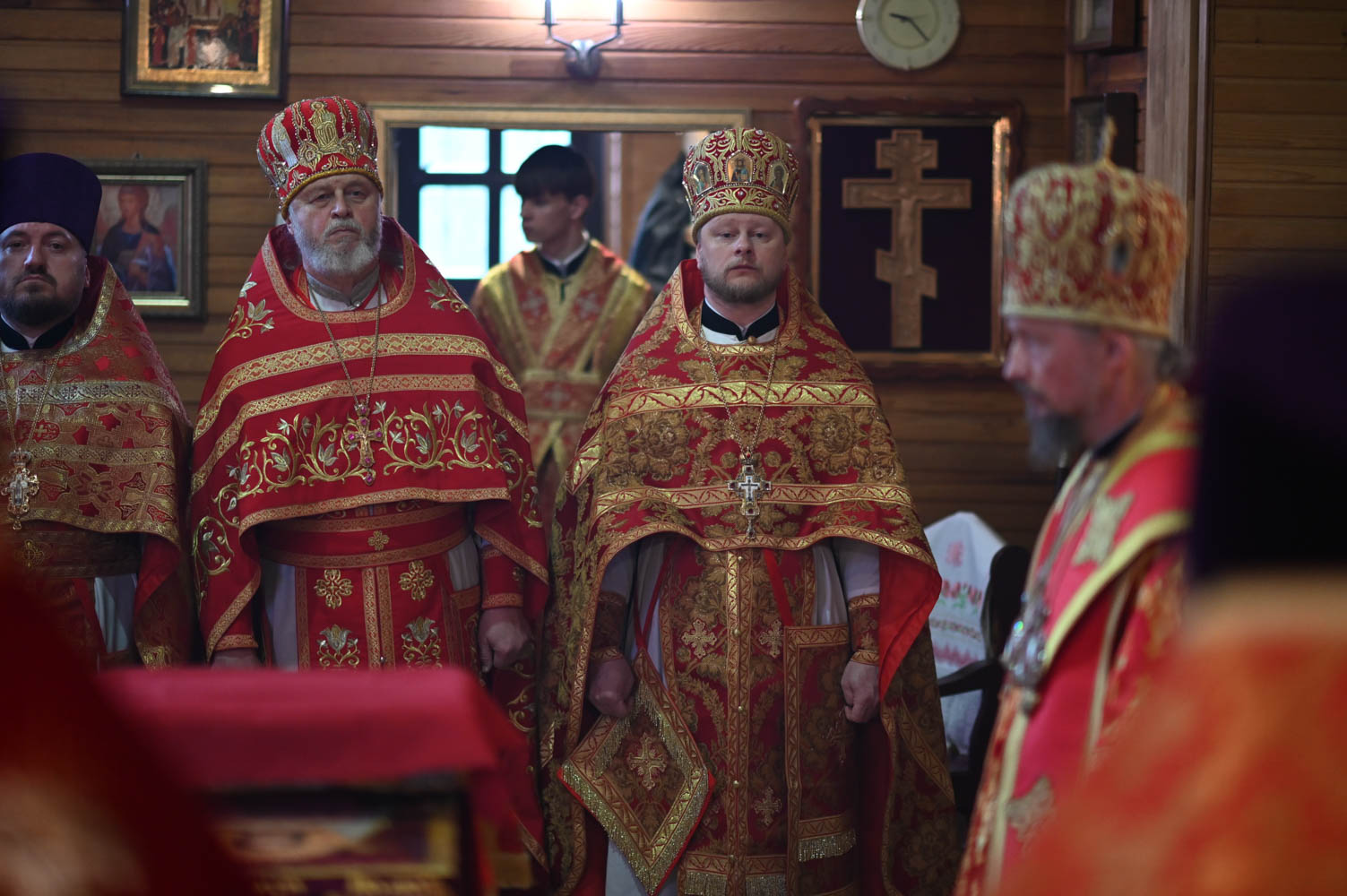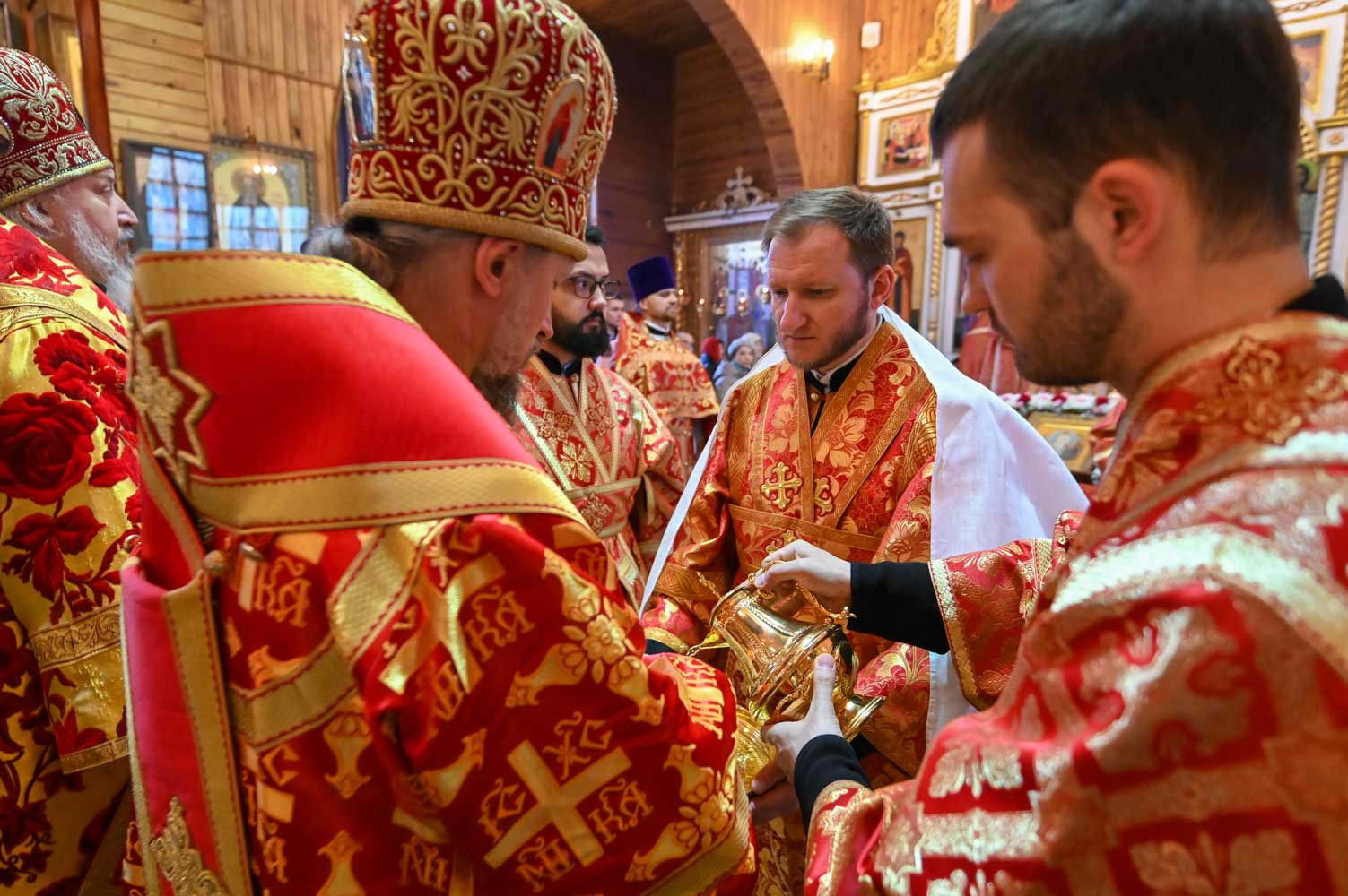 Архипастырям сослужили: секретарь Гомельской епархии протоиерей Георгий Алампиев; благочинный Гомельского городского округа, настоятель прихода протоиерей Игорь Ольшанов; благочинный Жлобинского округа протоиерей Алексей Смотрицкий; благочинный Гомельского районного округа протоиерей Артемий Кривицкий; благочинный Светлогорского округа протоиерей Александр Кисель; председатель отдела по социальному служению и церковной благотворительности Гомельской епархии, настоятель прихода храма святого благоверного князя Александра Невского в г. Гомеле протоиерей Владимир Силенко; настоятель прихода храма святого великомученика Георгия Победоносца в г. Гомеле протоиерей Дмитрий Гончаров; эконом Гомельской епархии протоиерей Владимир Масалитин; настоятель прихода храма святого праведного Иоанна Кормянского в г. Гомеле иерей Дмитрий Жданов, а также духовенство епархии.