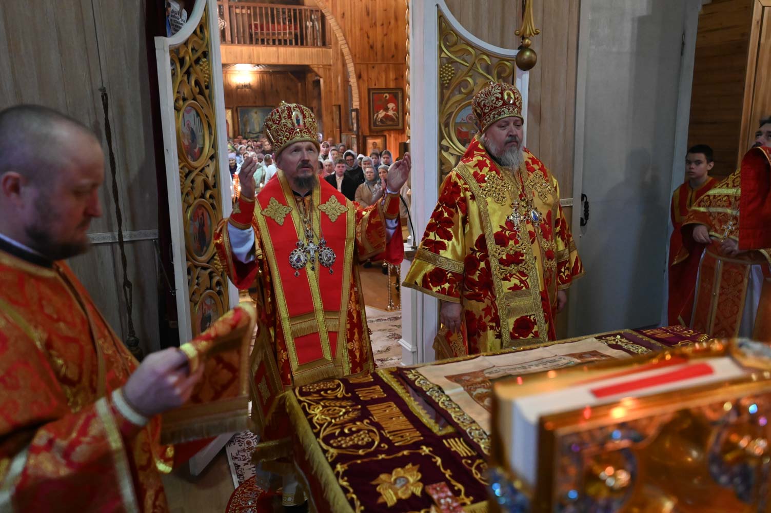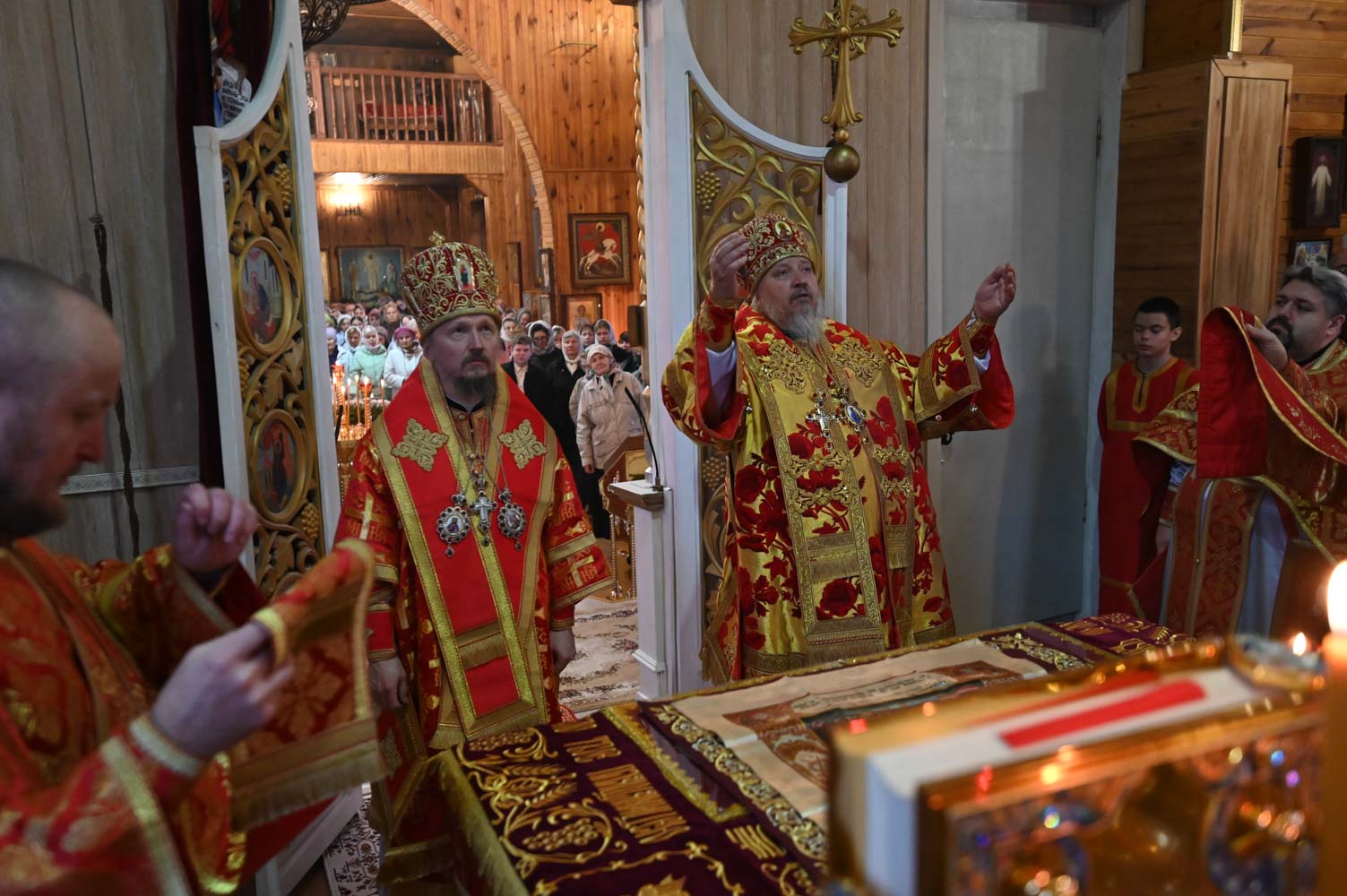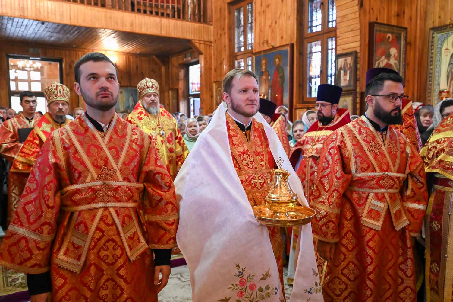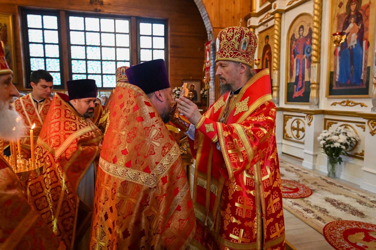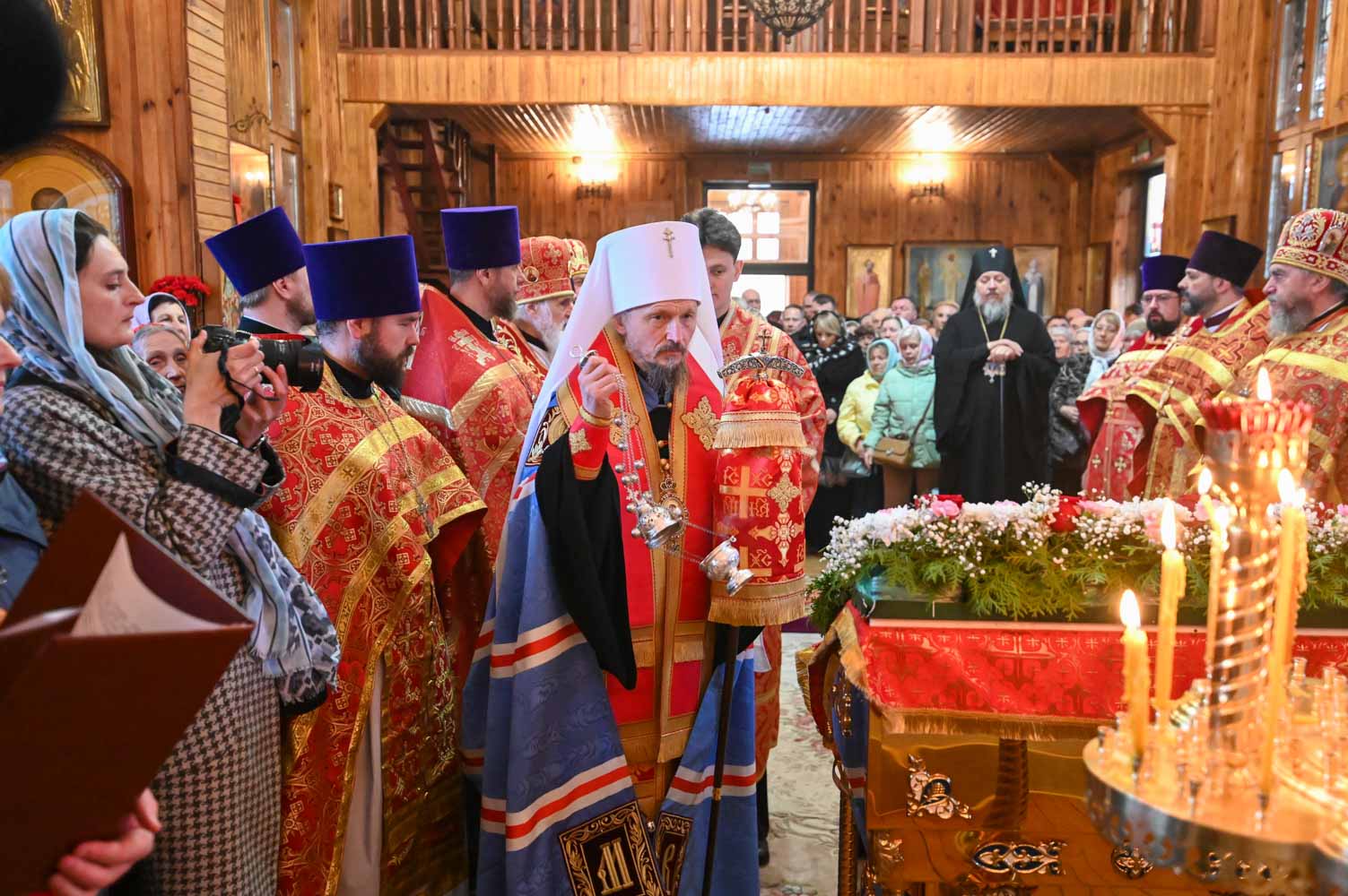 Архипастырям сослужили: секретарь Гомельской епархии протоиерей Георгий Алампиев; благочинный Гомельского городского округа, настоятель прихода протоиерей Игорь Ольшанов; благочинный Жлобинского округа протоиерей Алексей Смотрицкий; благочинный Гомельского районного округа протоиерей Артемий Кривицкий; благочинный Светлогорского округа протоиерей Александр Кисель; председатель отдела по социальному служению и церковной благотворительности Гомельской епархии, настоятель прихода храма святого благоверного князя Александра Невского в г. Гомеле протоиерей Владимир Силенко; настоятель прихода храма святого великомученика Георгия Победоносца в г. Гомеле протоиерей Дмитрий Гончаров; эконом Гомельской епархии протоиерей Владимир Масалитин; настоятель прихода храма святого праведного Иоанна Кормянского в г. Гомеле иерей Дмитрий Жданов, а также духовенство епархии.