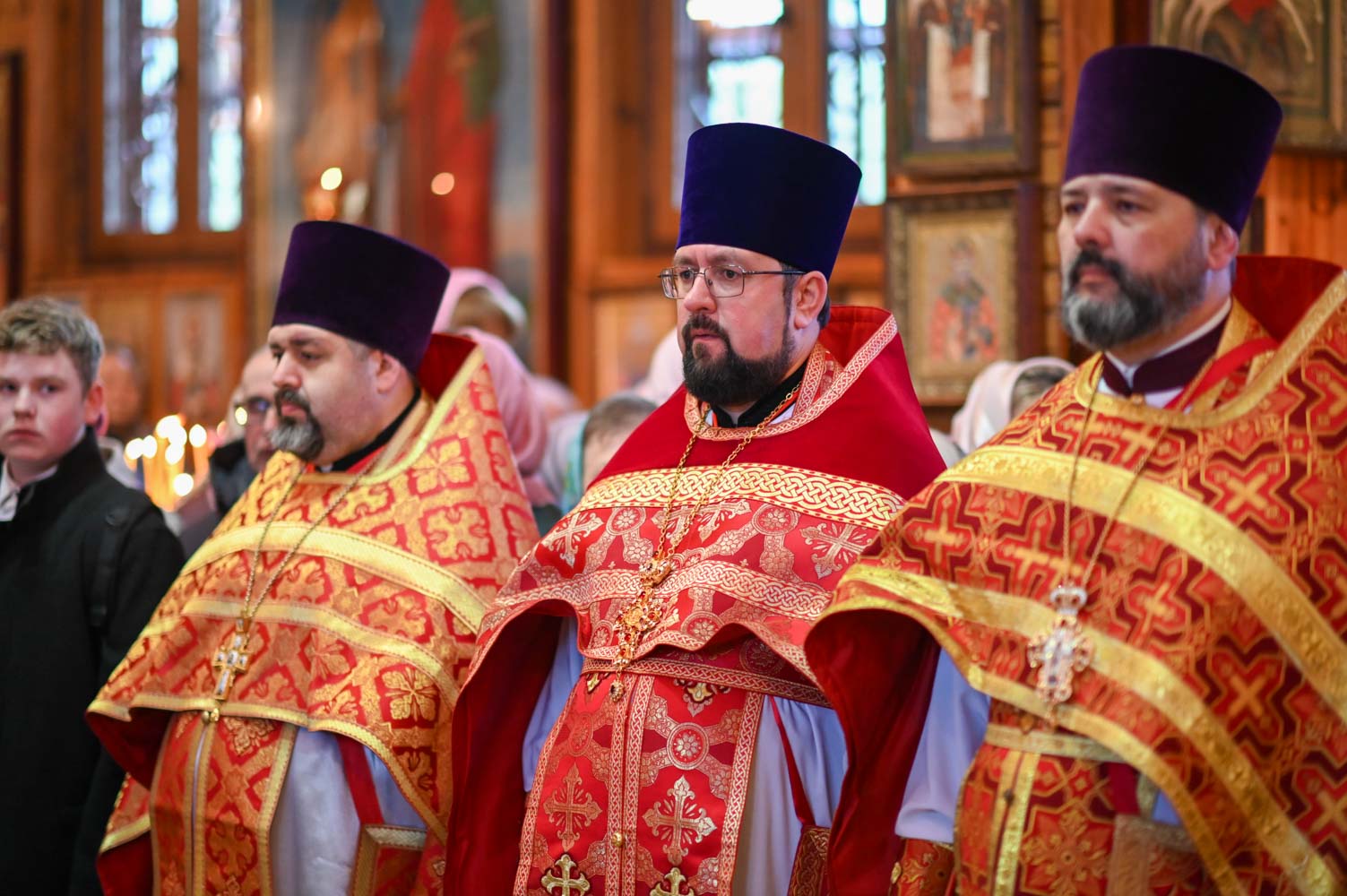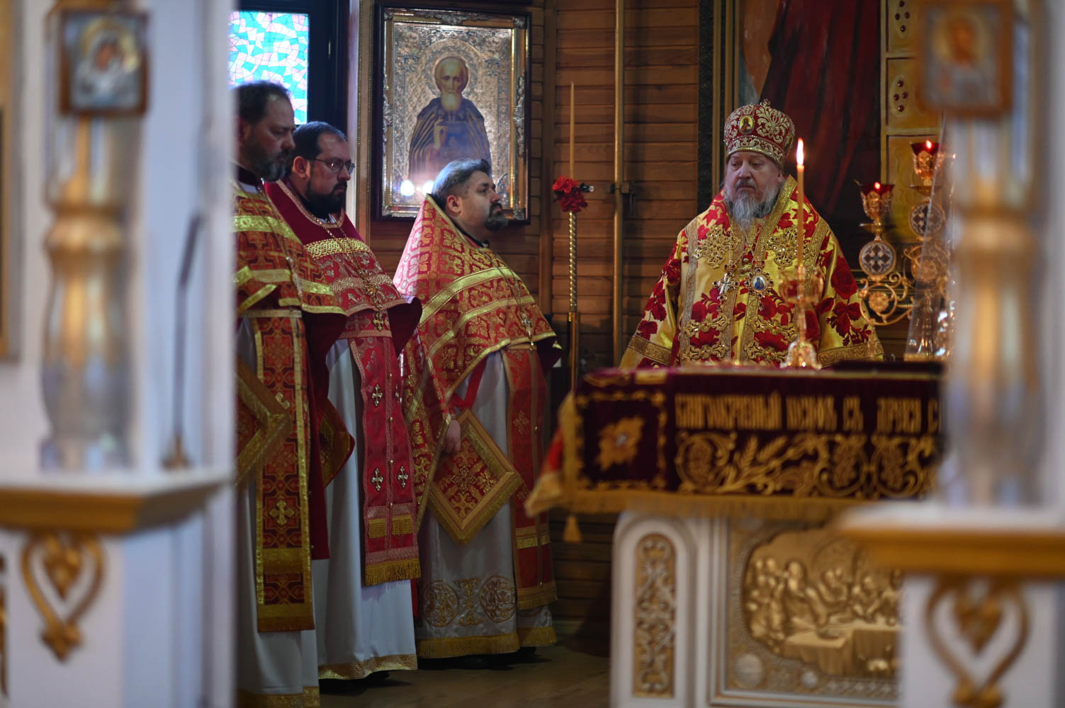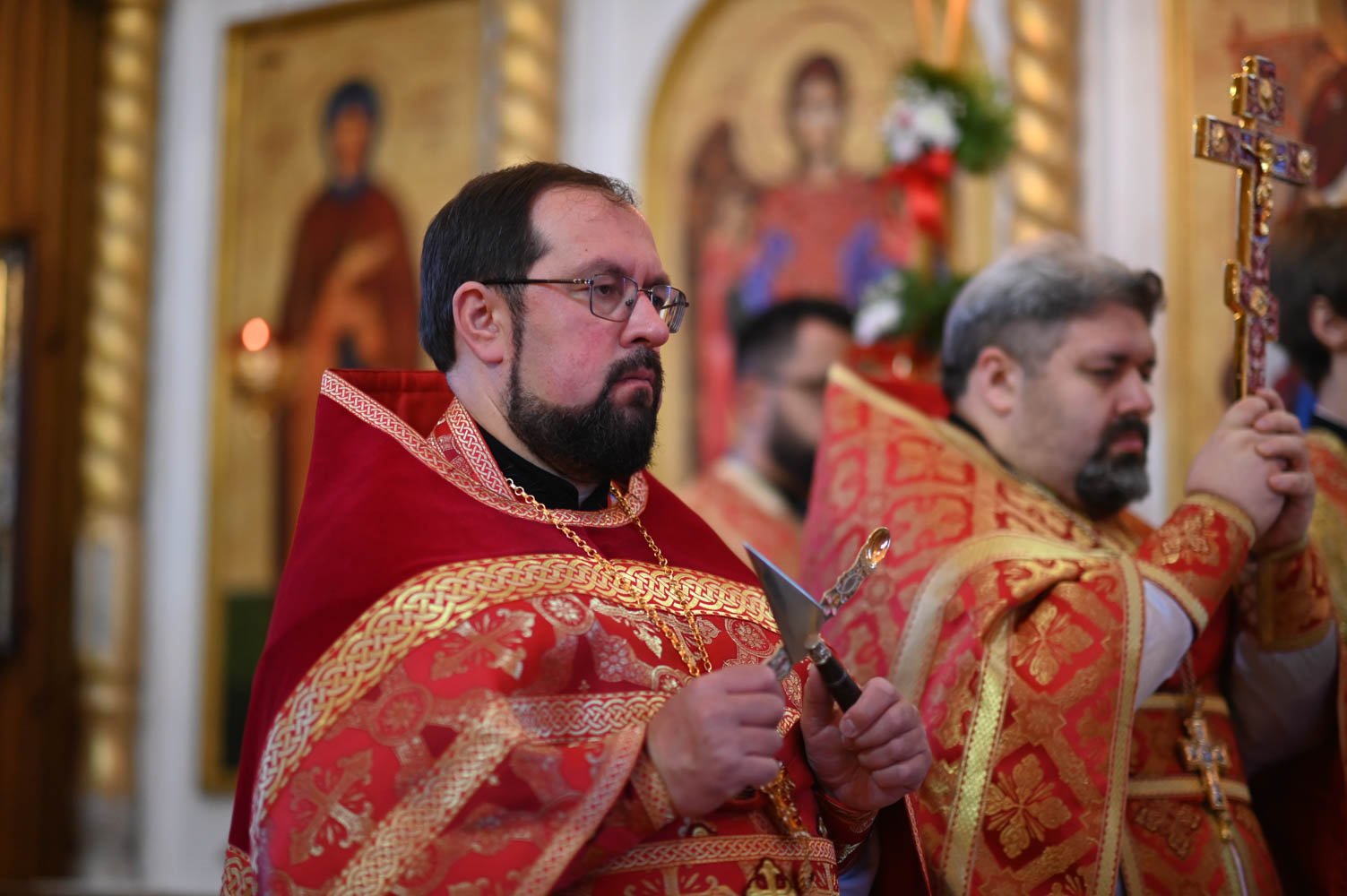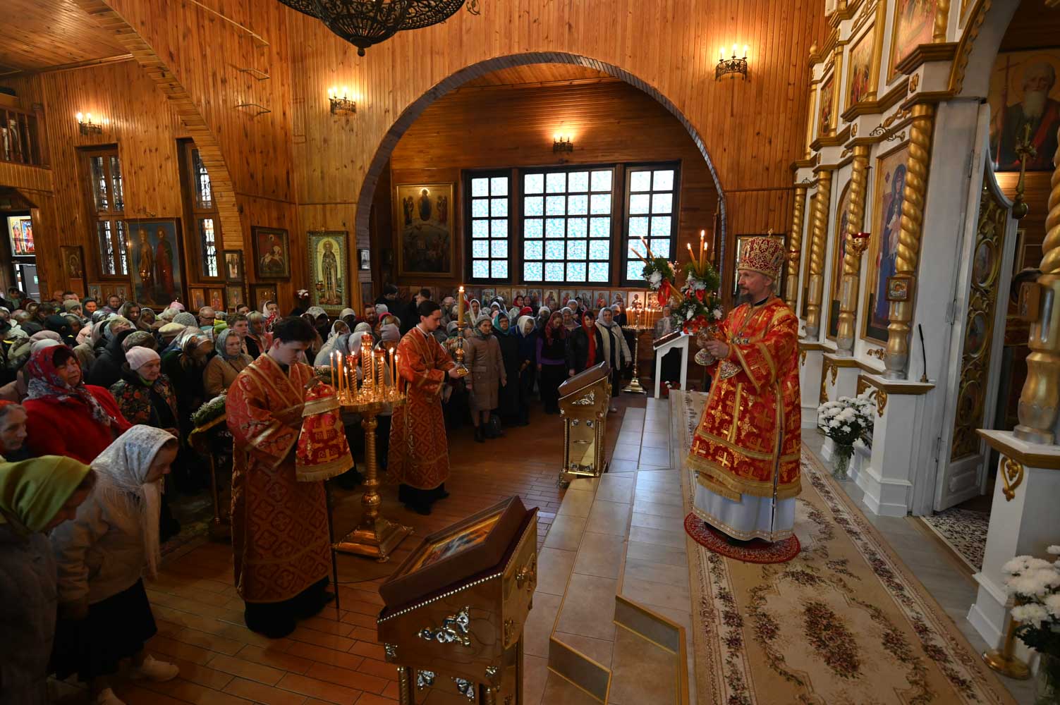 Архипастырям сослужили: секретарь Гомельской епархии протоиерей Георгий Алампиев; благочинный Гомельского городского округа, настоятель прихода протоиерей Игорь Ольшанов; благочинный Жлобинского округа протоиерей Алексей Смотрицкий; благочинный Гомельского районного округа протоиерей Артемий Кривицкий; благочинный Светлогорского округа протоиерей Александр Кисель; председатель отдела по социальному служению и церковной благотворительности Гомельской епархии, настоятель прихода храма святого благоверного князя Александра Невского в г. Гомеле протоиерей Владимир Силенко; настоятель прихода храма святого великомученика Георгия Победоносца в г. Гомеле протоиерей Дмитрий Гончаров; эконом Гомельской епархии протоиерей Владимир Масалитин; настоятель прихода храма святого праведного Иоанна Кормянского в г. Гомеле иерей Дмитрий Жданов, а также духовенство епархии.