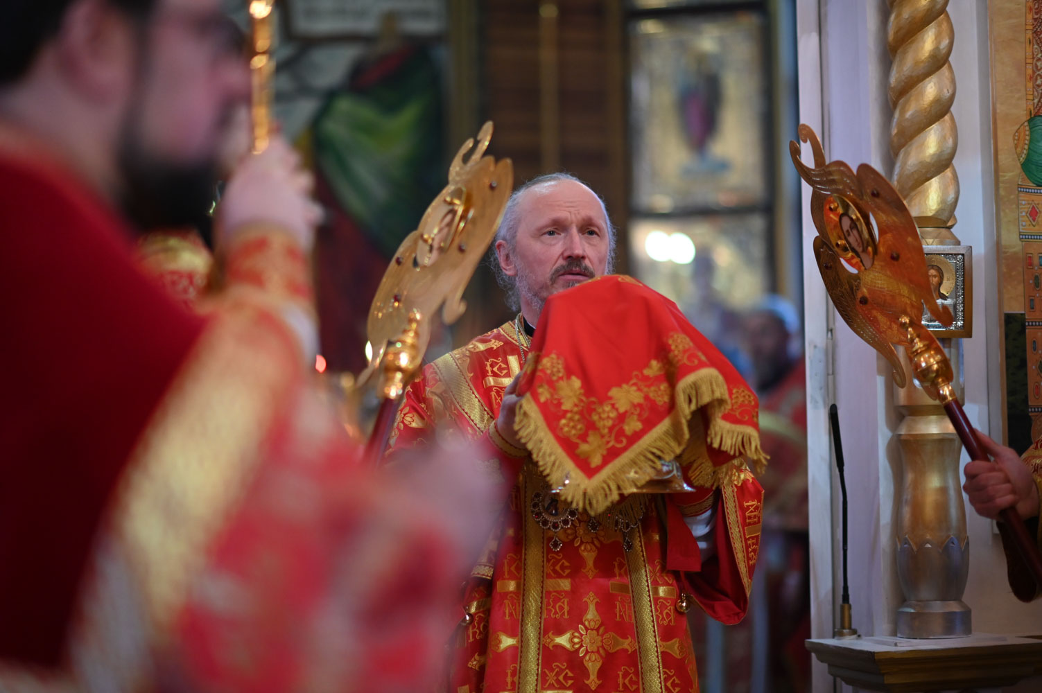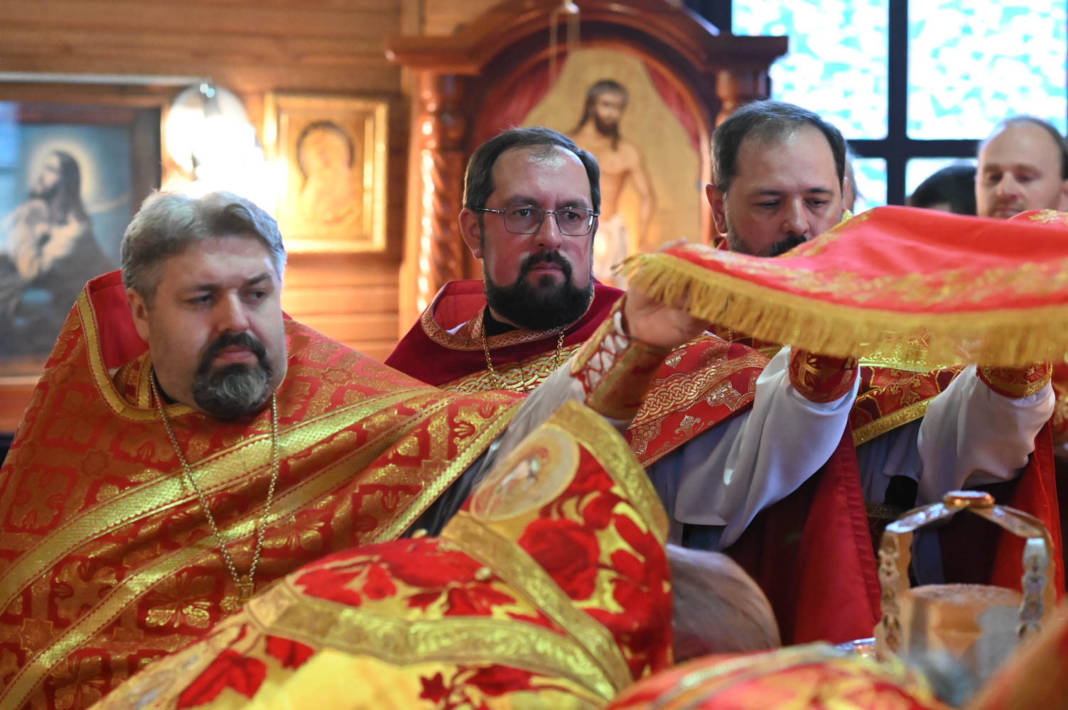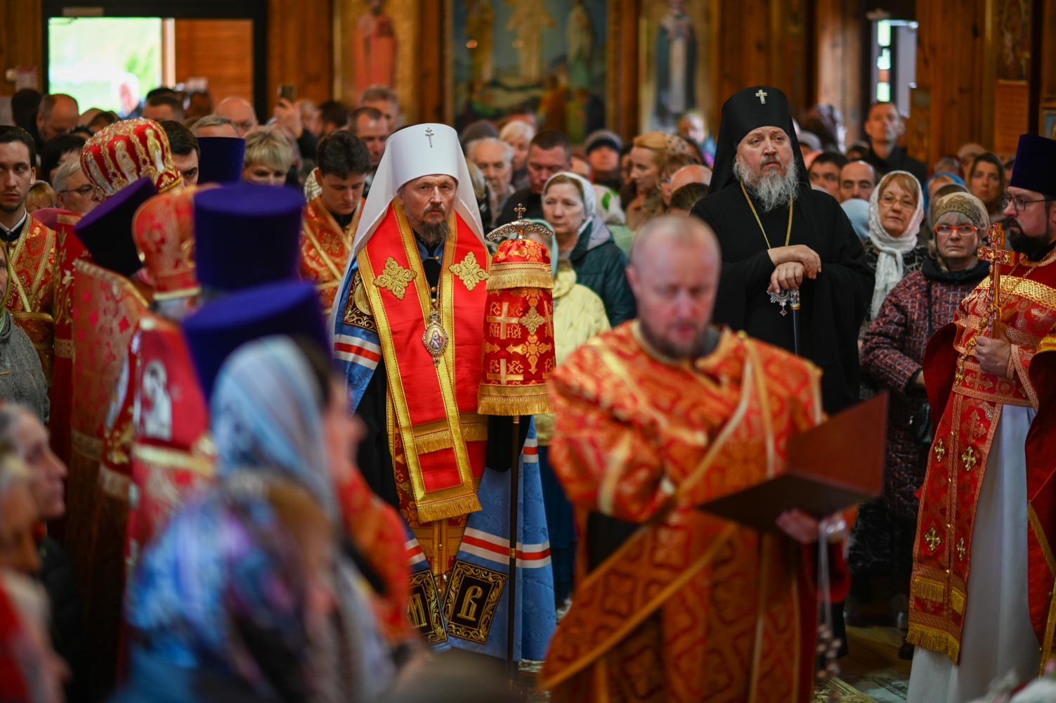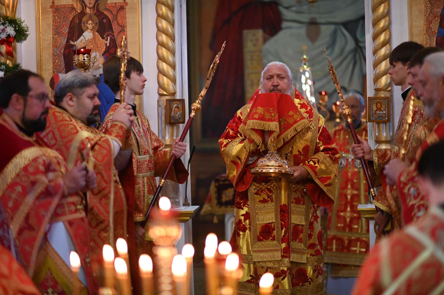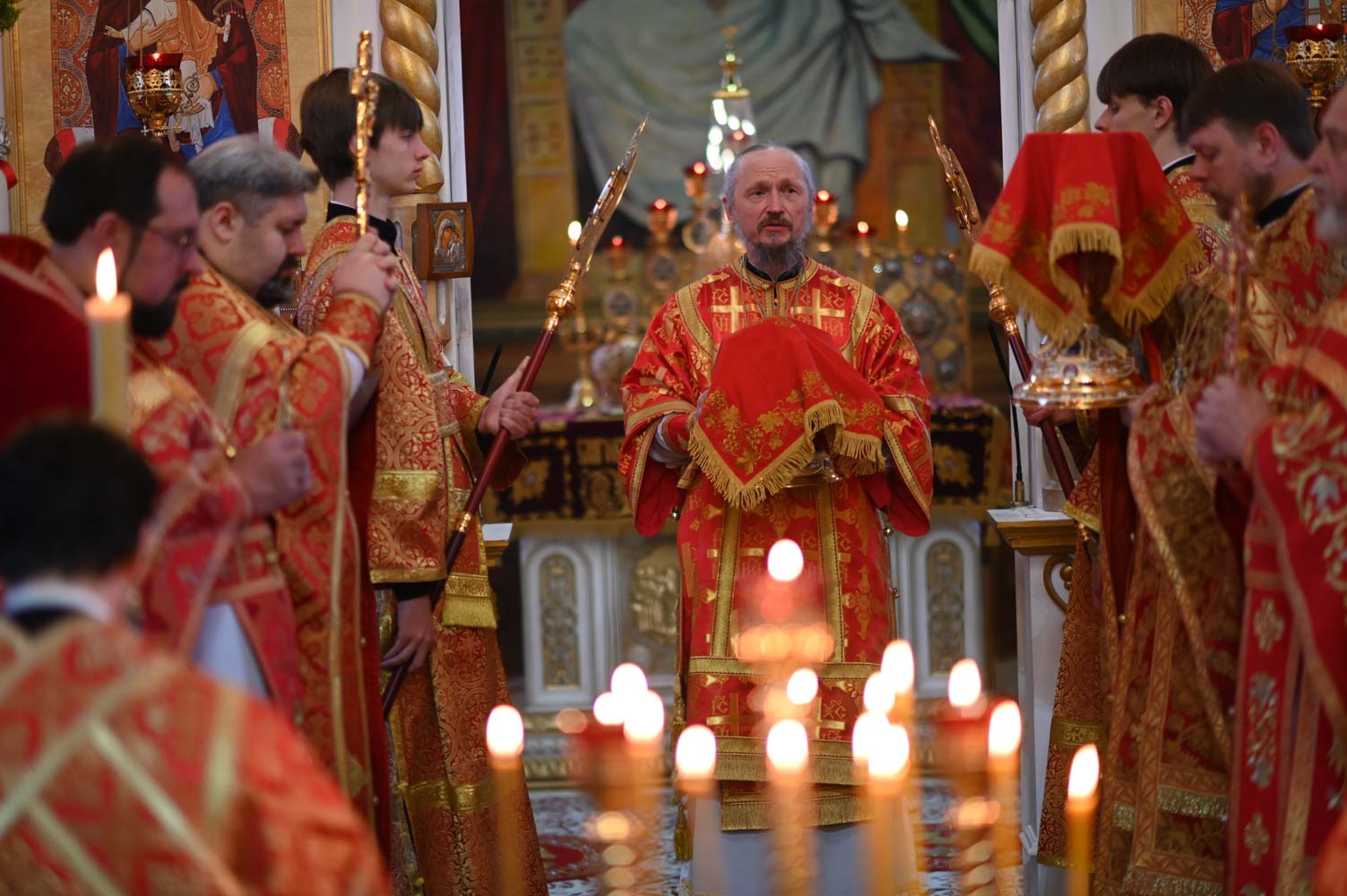 Архипастырям сослужили: секретарь Гомельской епархии протоиерей Георгий Алампиев; благочинный Гомельского городского округа, настоятель прихода протоиерей Игорь Ольшанов; благочинный Жлобинского округа протоиерей Алексей Смотрицкий; благочинный Гомельского районного округа протоиерей Артемий Кривицкий; благочинный Светлогорского округа протоиерей Александр Кисель; председатель отдела по социальному служению и церковной благотворительности Гомельской епархии, настоятель прихода храма святого благоверного князя Александра Невского в г. Гомеле протоиерей Владимир Силенко; настоятель прихода храма святого великомученика Георгия Победоносца в г. Гомеле протоиерей Дмитрий Гончаров; эконом Гомельской епархии протоиерей Владимир Масалитин; настоятель прихода храма святого праведного Иоанна Кормянского в г. Гомеле иерей Дмитрий Жданов, а также духовенство епархии.