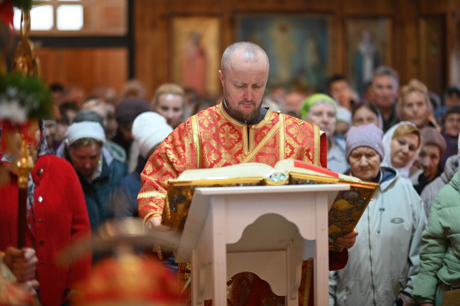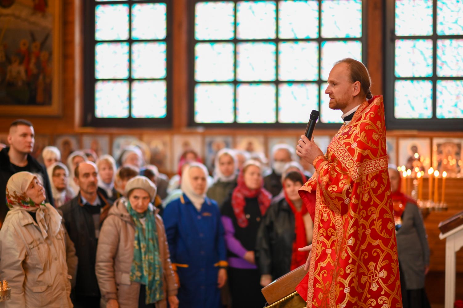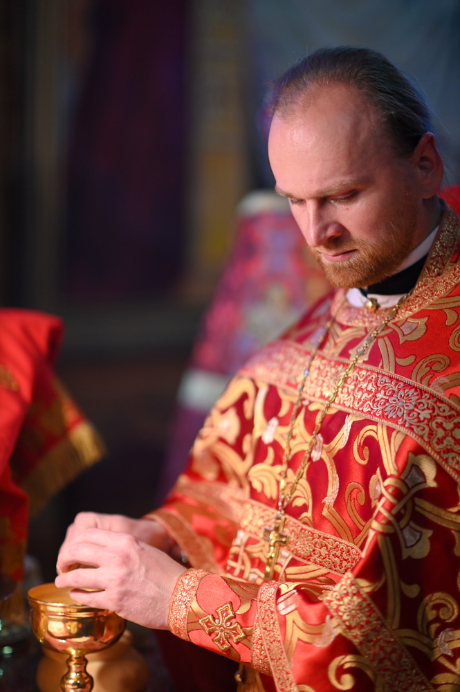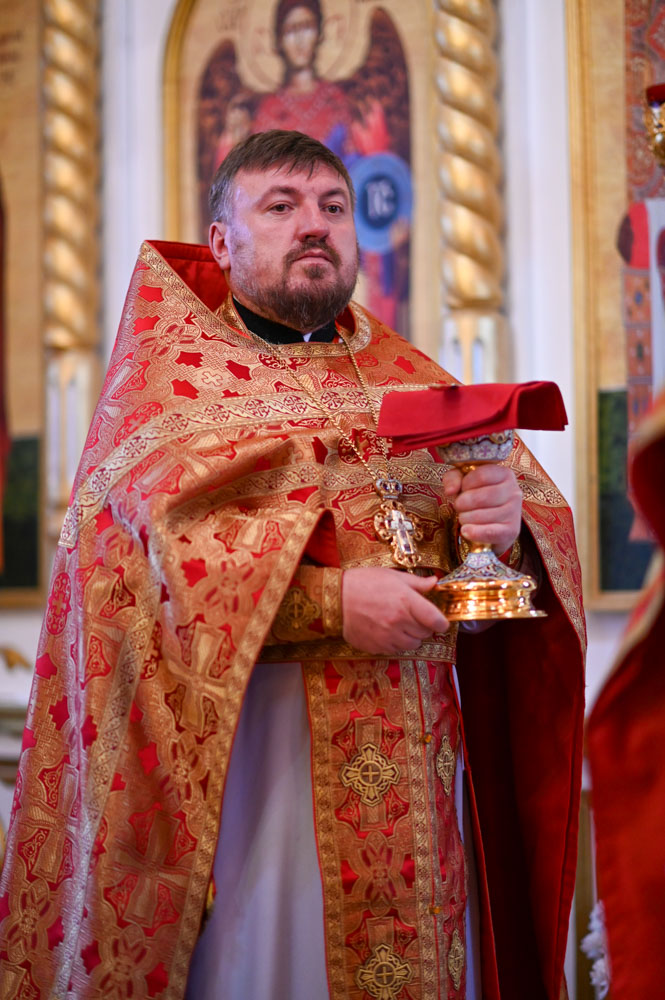 По запричастном стихе проповедь произнес настоятель прихода храма святого праведного Иоанна Кормянского в г. Гомеле иерей Дмитрий Жданов.