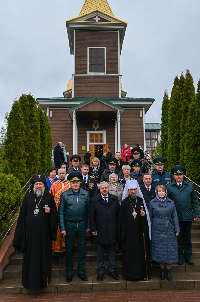 На богослужении присутствовали: Министр по чрезвычайным ситуациям Республики Беларусь генерал-майор внутренней службы Вадим Иванович Синявский, заместитель председателя Гомельского облисполкома Дмитрий Алейников, председатель Гомельского городского исполнительного комитета Привалов Владимир Александрович, начальник Гомельского областного управления Министерства по чрезвычайным ситуациям (МЧС) Республики Беларусь полковник внутренней службы Дичковский Сергей Анатольевич.