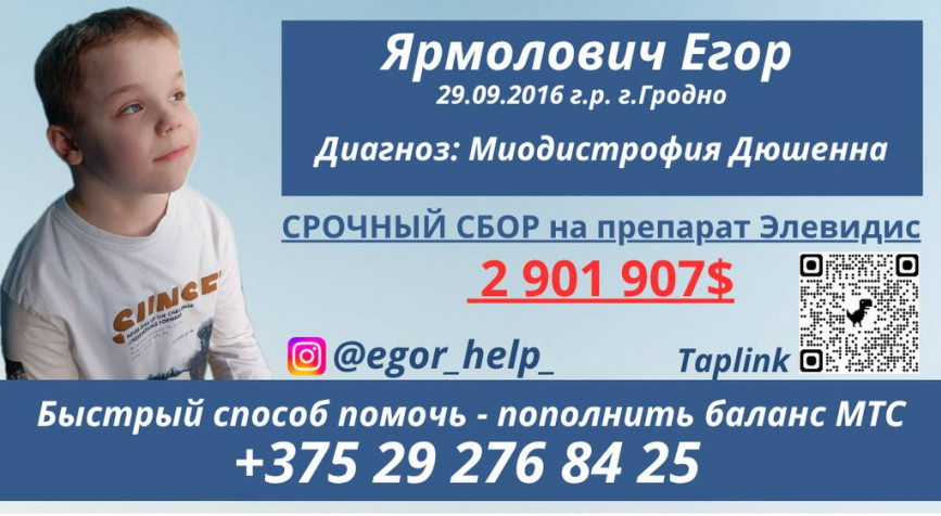У Егора диагностировано редкое генетическое заболевание — Миодистрофия Дюшенна. Единственный препарат, который может спасти его