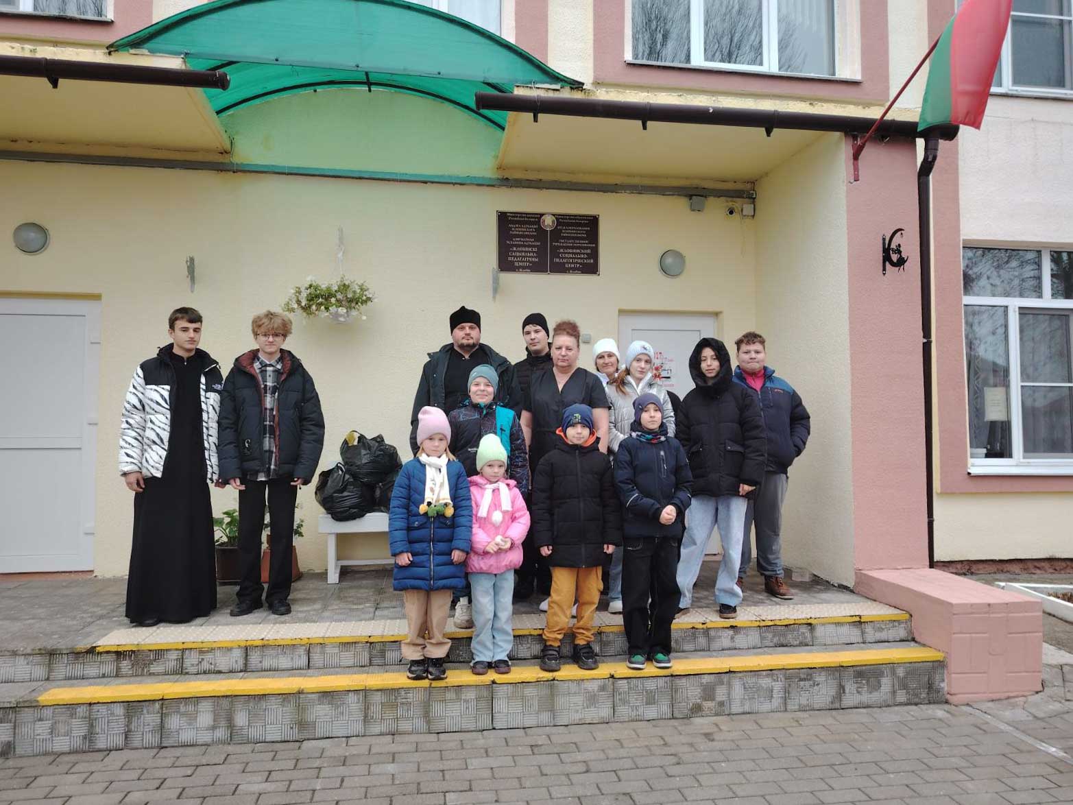Клирик храма святого мученика Иоанна Воина в г.Жлобине диакон Михаил Шмидов и молодёжь прихода 16